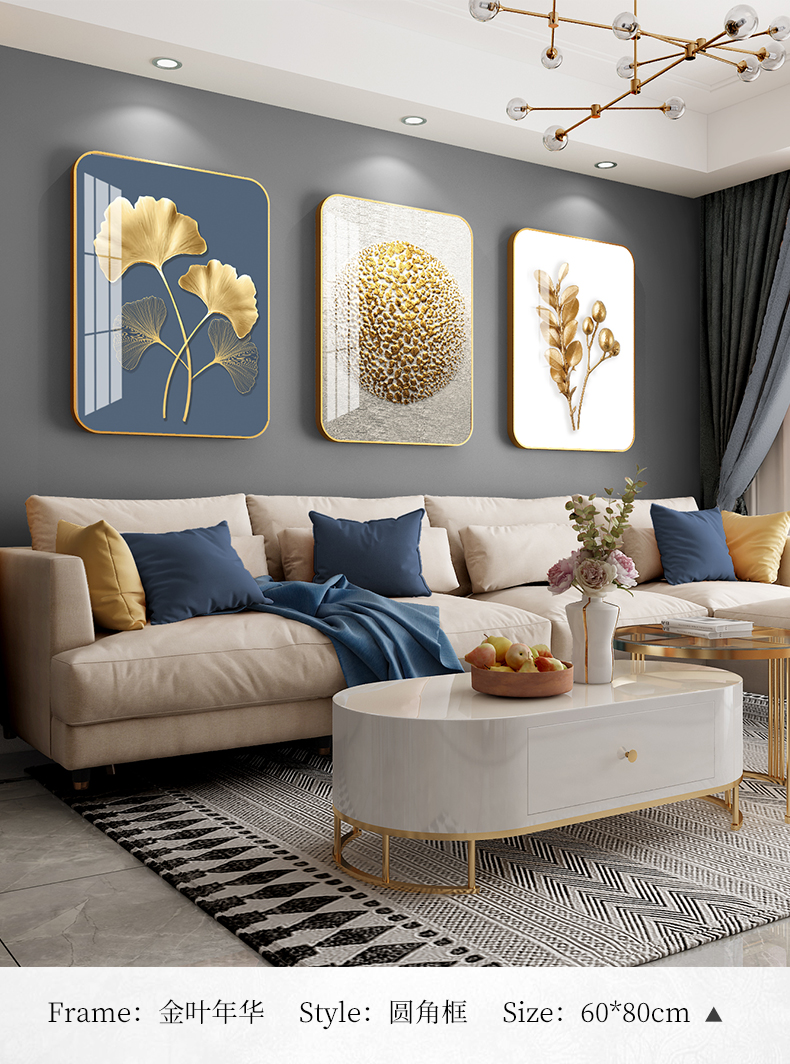 紀恒軟らかい客間装飾画ソファの背景壁壁画高級軽奢大気三聯画現代中国式家庭壁面掛画北欧簡単晶磁画レストラン歺庁ホール壁画B 42-杏福安康-黒い枠60*80 cm(3.5メートルぐらいのソファーに適しています)