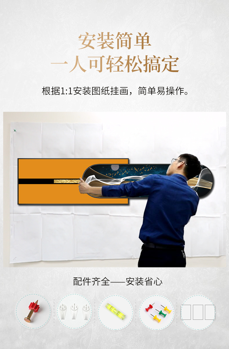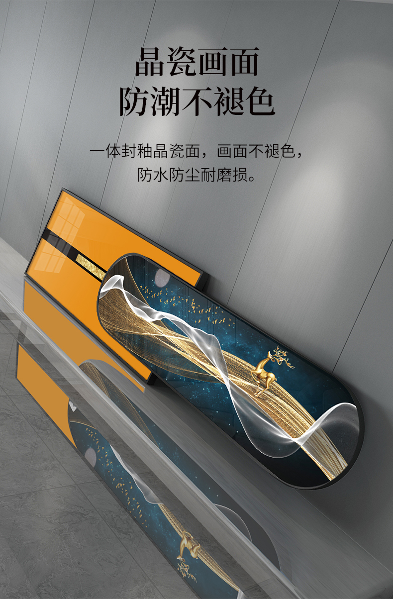 | 商品名称 | 紀恒軟らかい新中国式客間ソファの後ろの壁の装飾画の家掛画は背景壁に適した高級軽量で豪華な組み合わせの壁画が簡単で現代のファッション的な個性的な家装壁画の一鹿の財産になります。金色枠のサイズは210*50 cmで、2.5-4.5メートルぐらいのソファーに適しています。 |