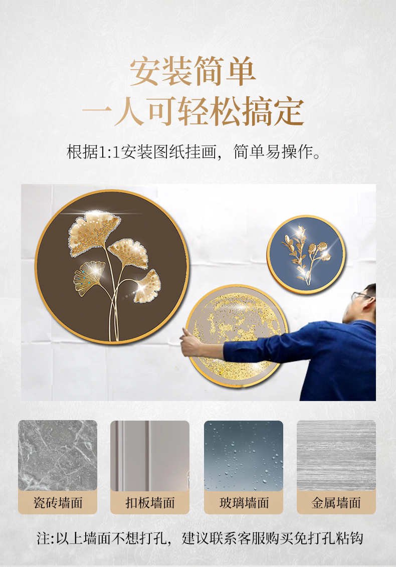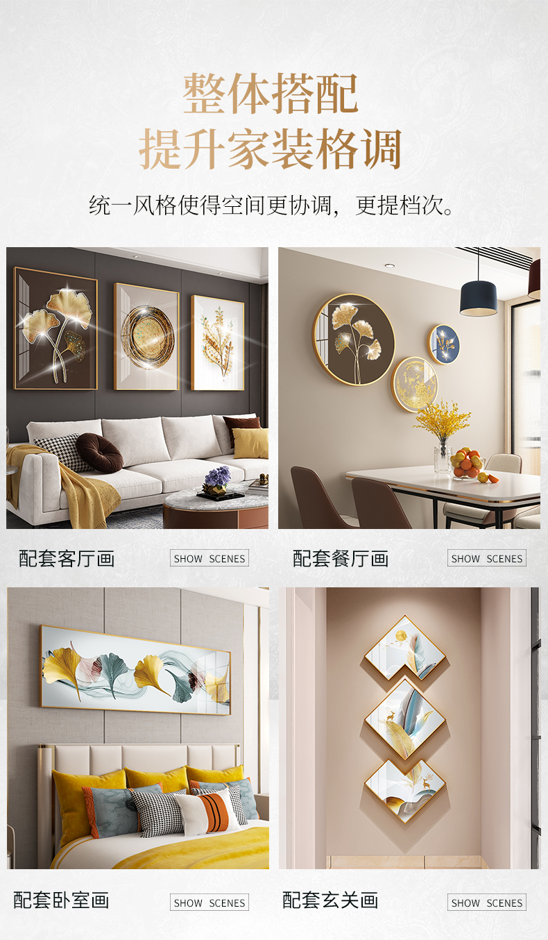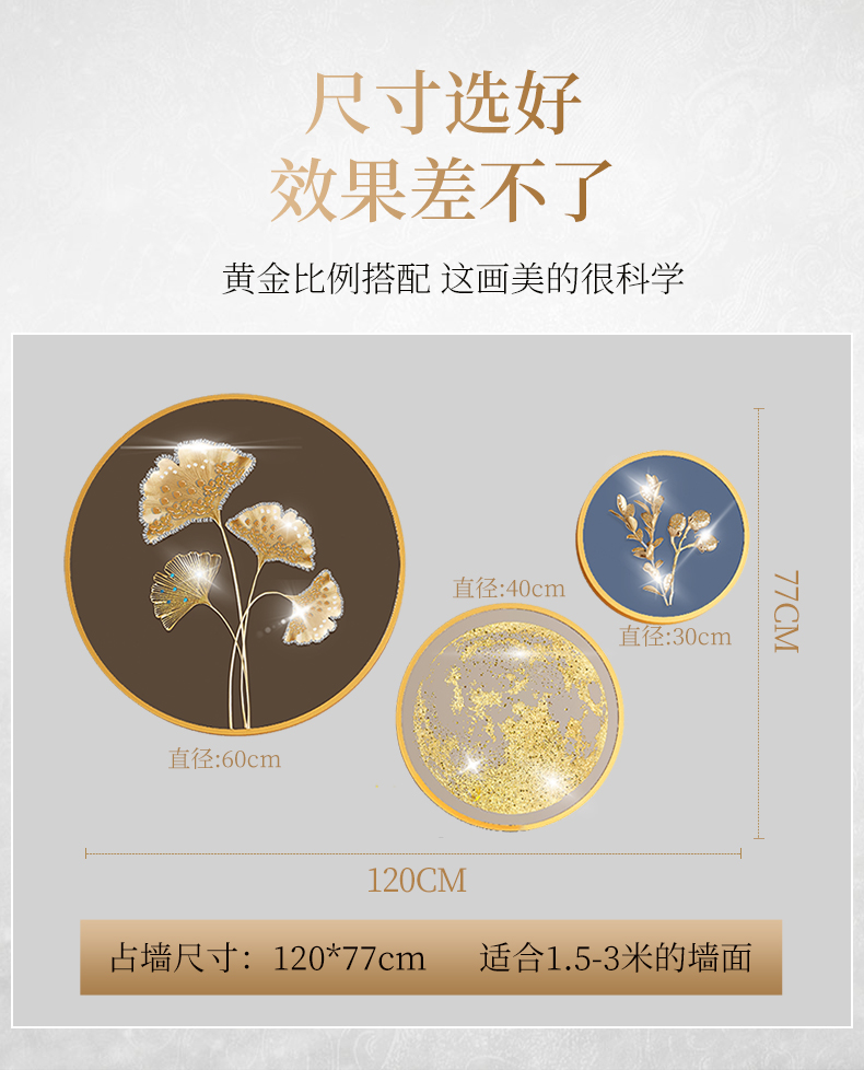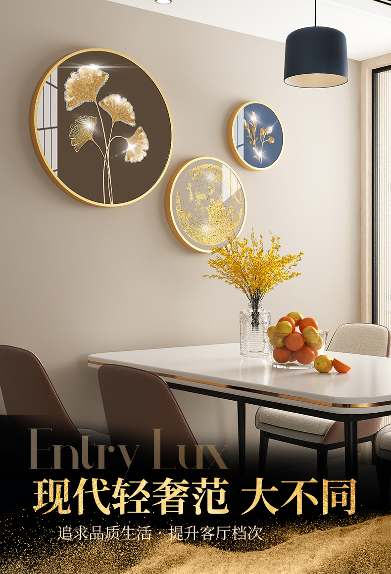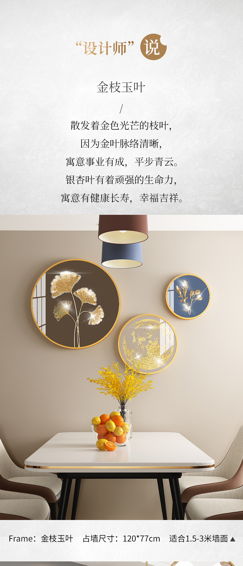 | 商品名称 | 紀恒軟らかい円形レストラン装飾画現代簡単で贅沢な風が吹いています。庁の壁面には高級な大気晶磁のパネルが掛けられています。レストランの食卓に似合う壁には北欧金色の葉が描かれています。 |