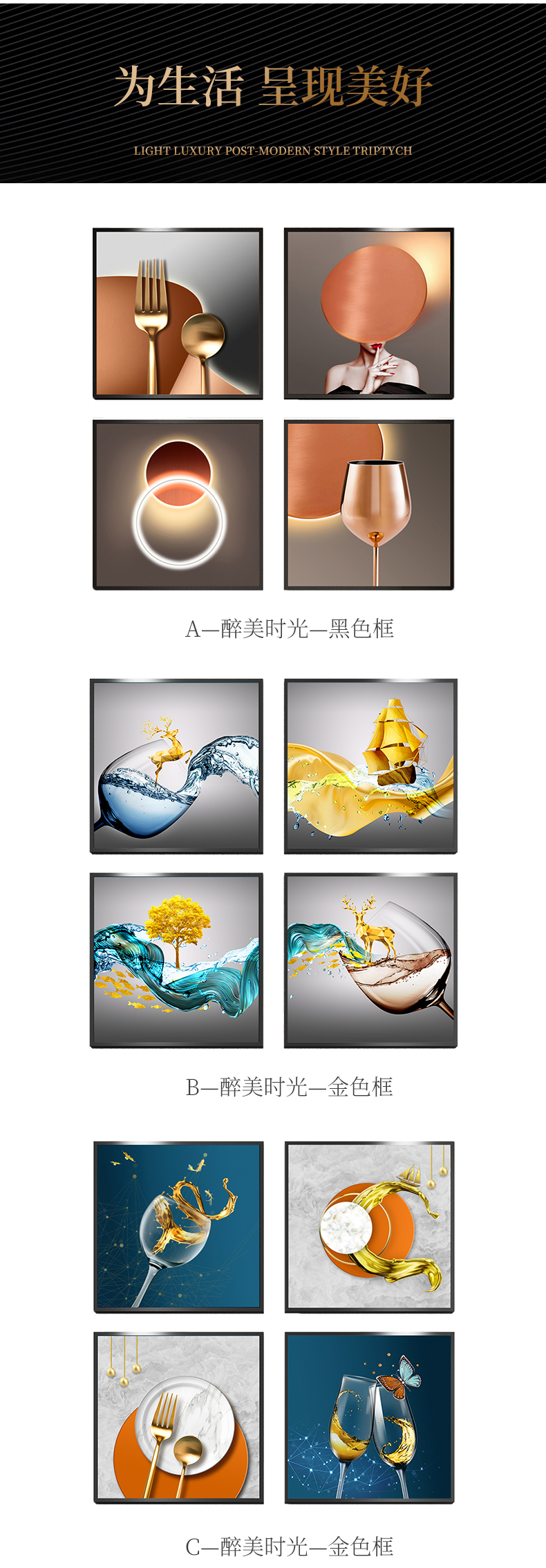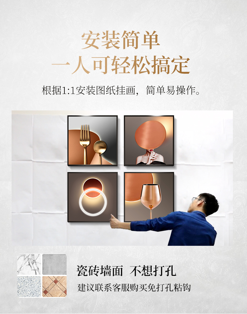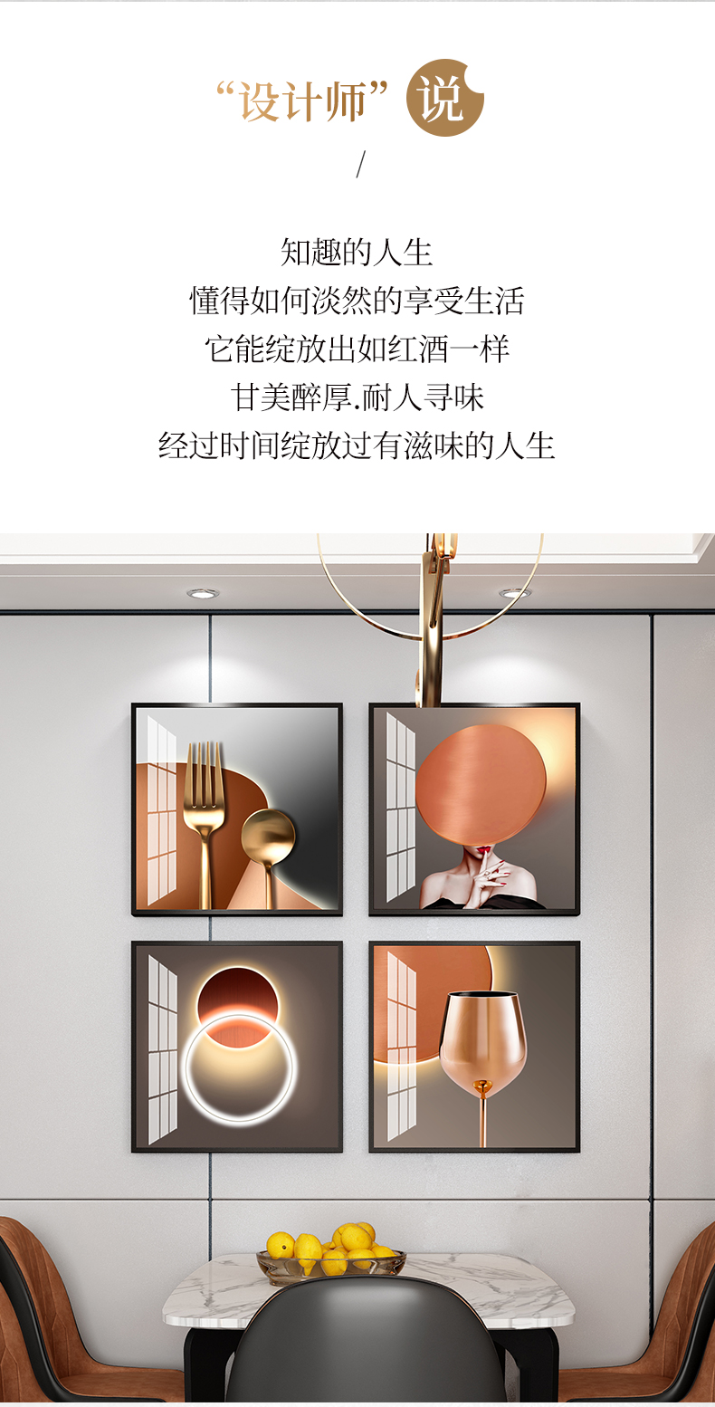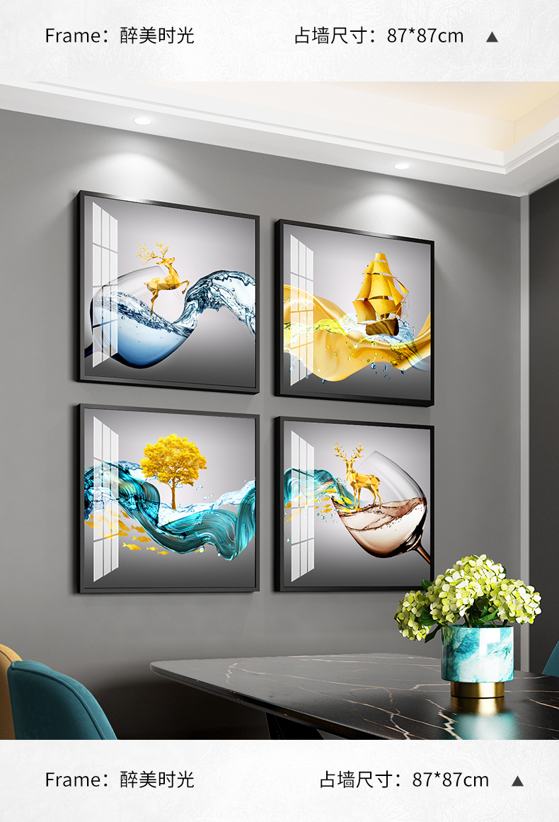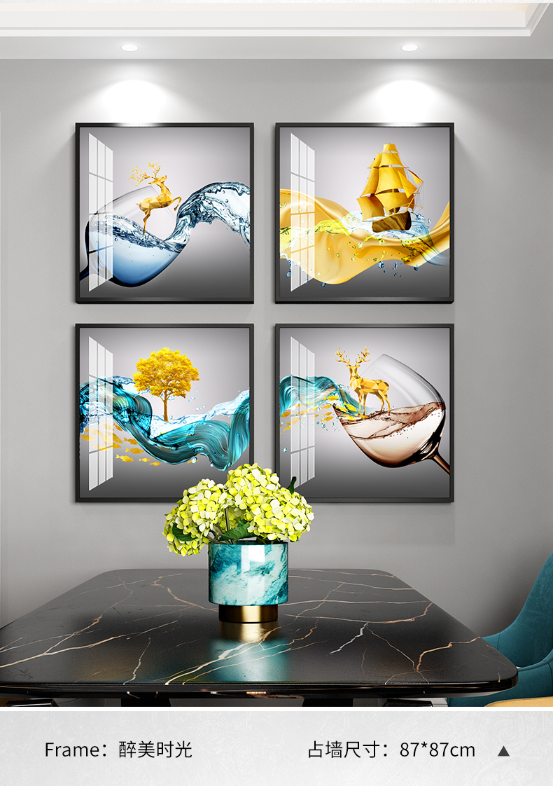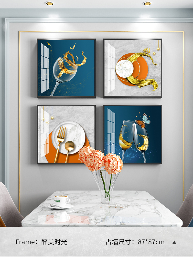 紀恒ふわふわレストラン画は、現代の絵画テーブルの壁面装飾画を簡単に描いています。ロビーの杯の人物晶磁画高級大気小衆の壁画ご飯高級家庭用の穴付き壁画A-酔美時間-黒い枠40*40 cm*4(図面全体のサイズ:83*83 cm)