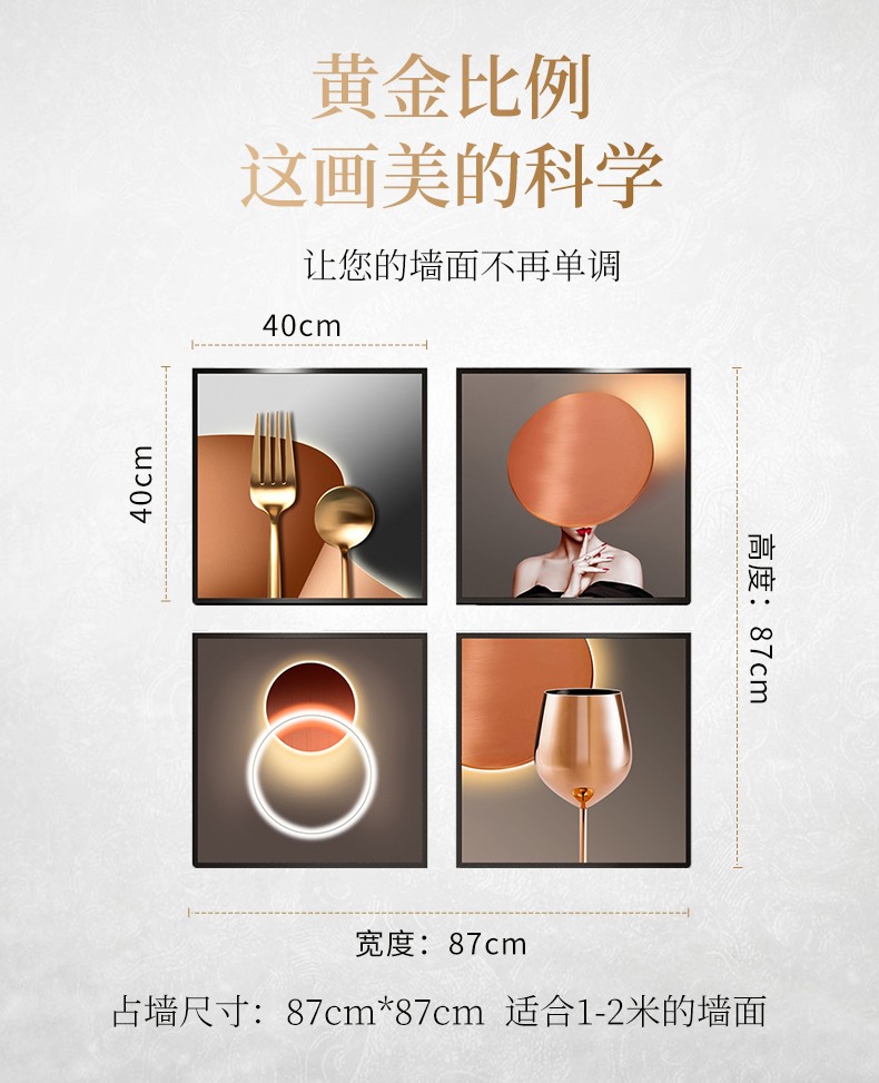 | 商品名称 | 紀恒軟レストラン画軽い贅沢な現代掛画テーブル壁面装飾画歺庁杯人物晶磁画高級大気小衆壁画飯高級家庭用穴付き壁画A-酔美時間-黒枠40*40 cm*4(図面全体サイズ:83*83 cm) |