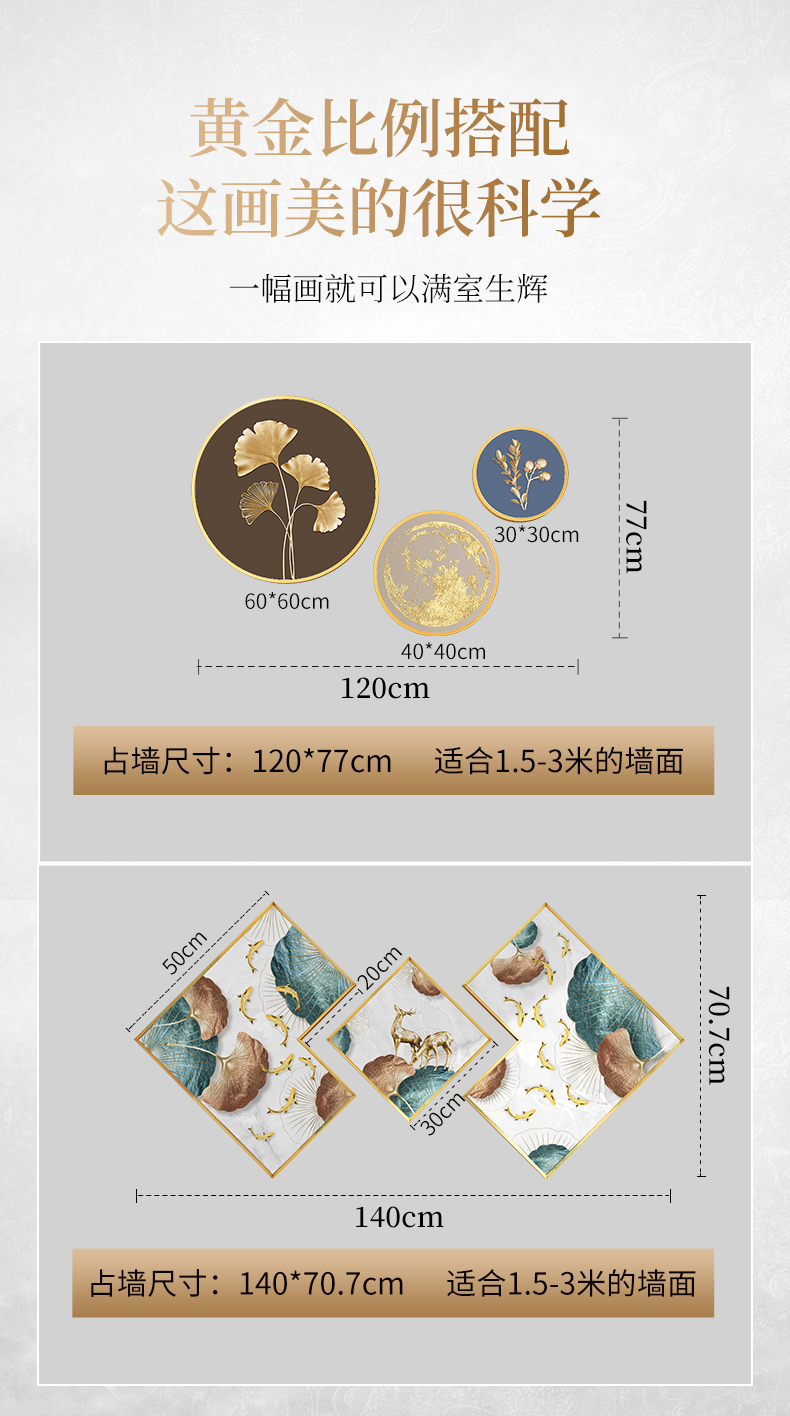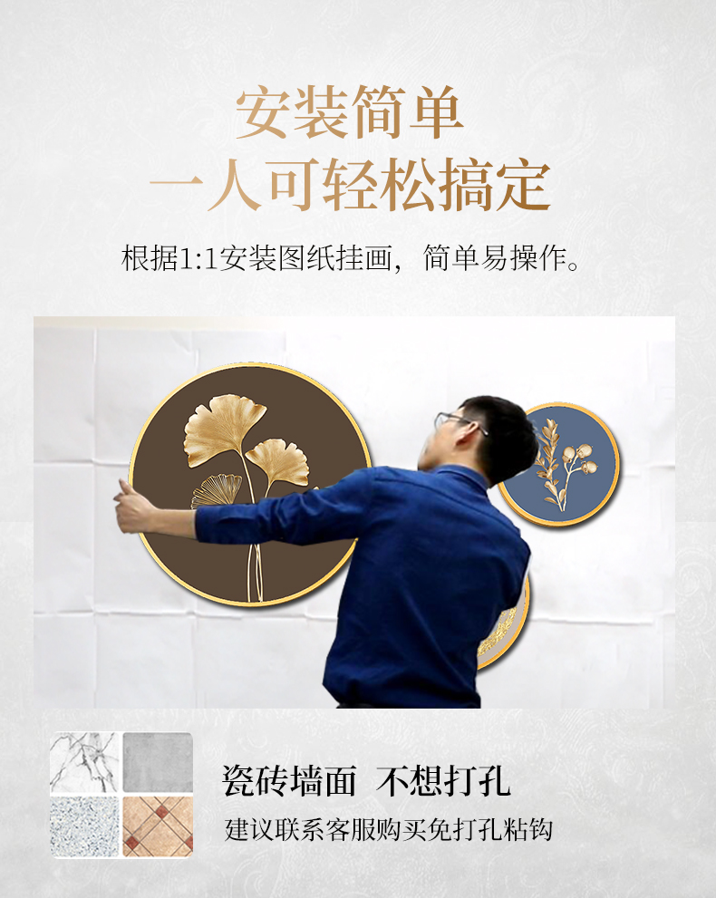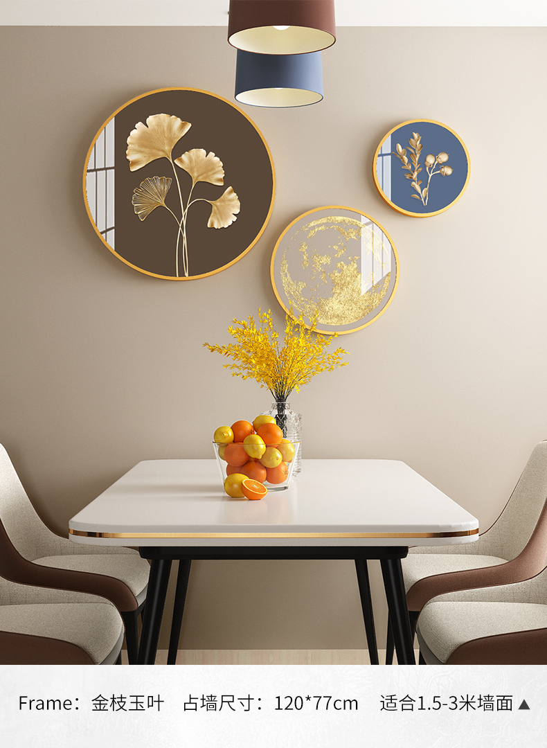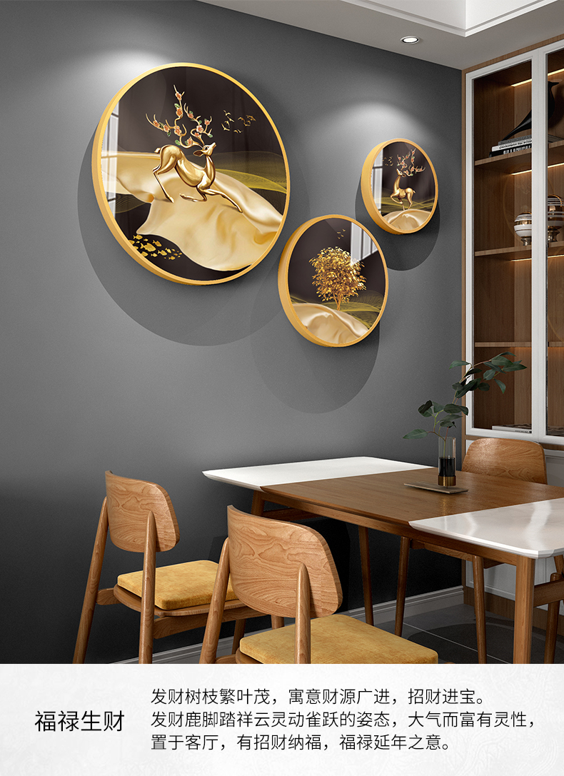 | 商品名称 | 紀恒軟らかいレストランの壁に装飾された現代の軽奢なレストランの壁に掛けられた装飾品は大気庁の食卓の壁の壁に飾ってあります。部屋の壁に飾って、招财鹿が穴を開けずにストラップの福禄生財(直径30 cm+40 cm+60 cm)を遮ります。 |