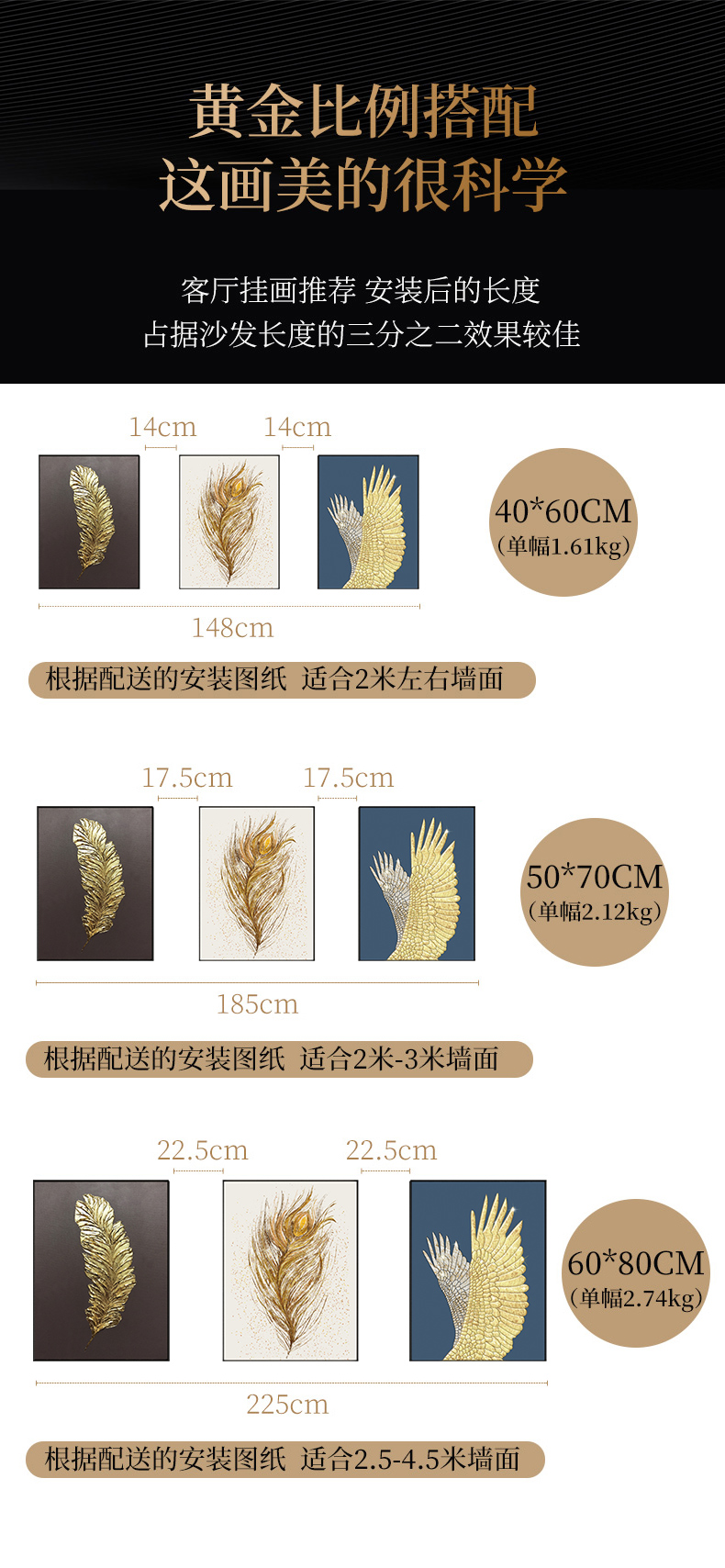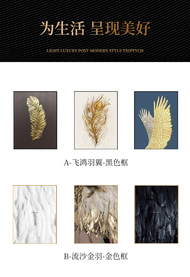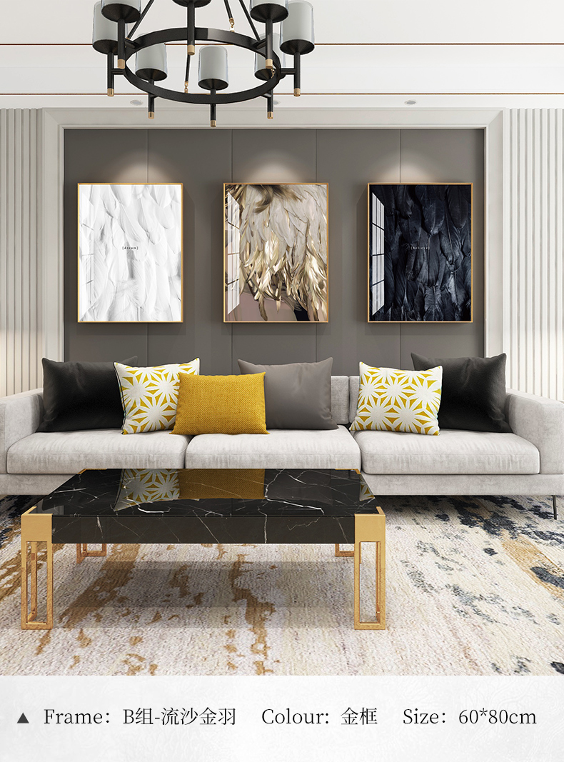 紀恒ふわふわリビングのソファーの背景壁の装飾画現代簡単な金色の羽画の抽象的な白黒の風の家庭の壁画芸術の晶磁画の別荘の豪華な壁壁の掛け絵A-飛鴻の羽-黒い枠の40*60 cm(2メートルぐらいのソファーに適しています)