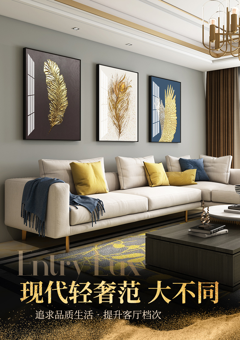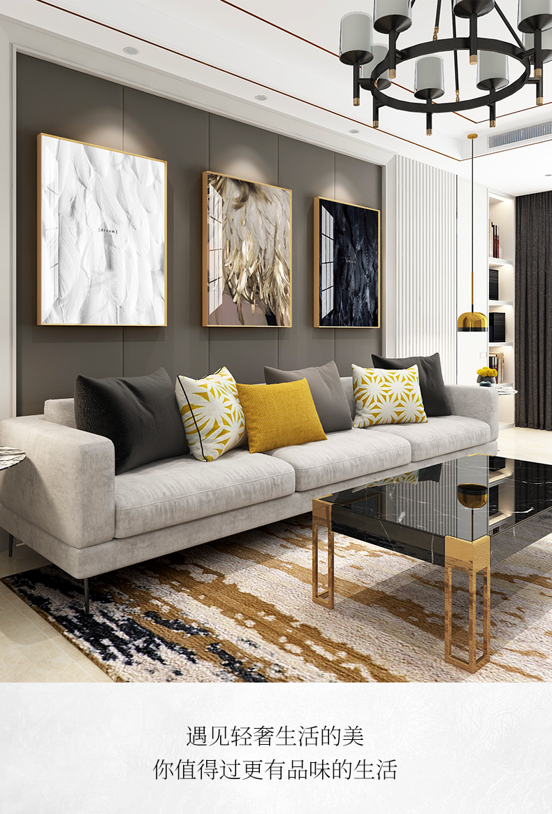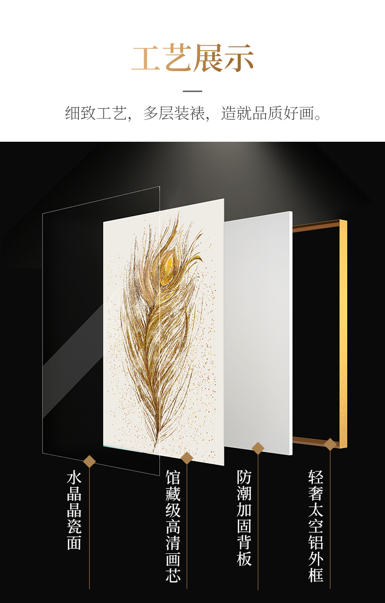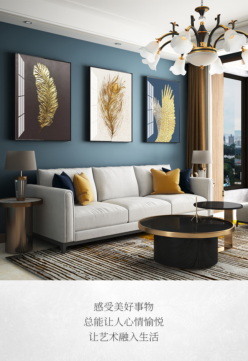 紀恒ふわふわリビングのソファーの背景壁の装飾画現代簡単な金色の羽画の抽象的な白黒の風の家庭の壁画芸術の晶磁画の別荘の豪華な壁壁の掛け絵A-飛鴻の羽-黒い枠の40*60 cm(2メートルぐらいのソファーに適しています)