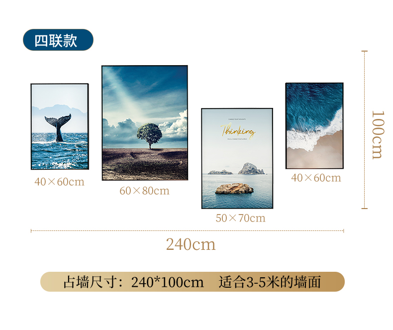 紀恒ふんわりとした新しい中国式のリビングソファの後に壁の装飾画の家が壁に適した装飾画を描いています。背景壁に適した高級な軽贅沢な組み合わせの壁画が簡単で現代のファッション的な個性的な家装の壁画が鹿の財産を生みます。金色のフレームのサイズは210*50 cmで、2.5-4.5メートルぐらいのソファーに適しています。
