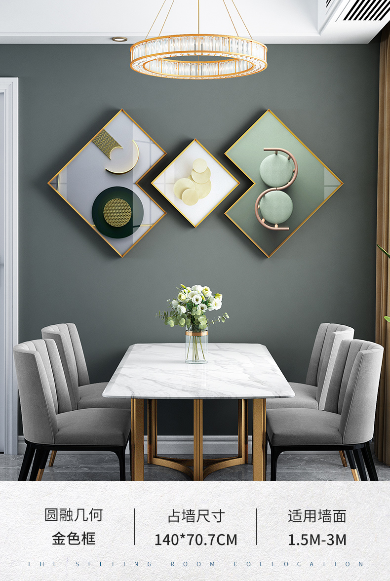 紀恒ふんわりとした高級レストランの装飾画が創意的で、円形の家庭の個性的なファッションを描いています。庁の玄関に掛けた不規則な壁画が現代の簡単な食卓の壁に描かれています。
