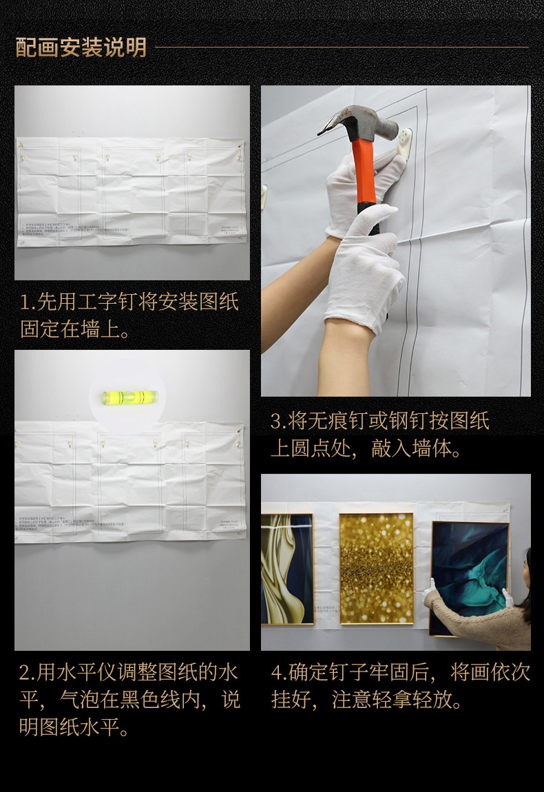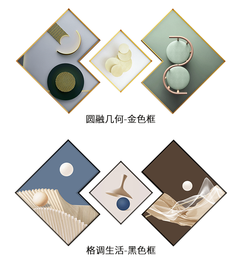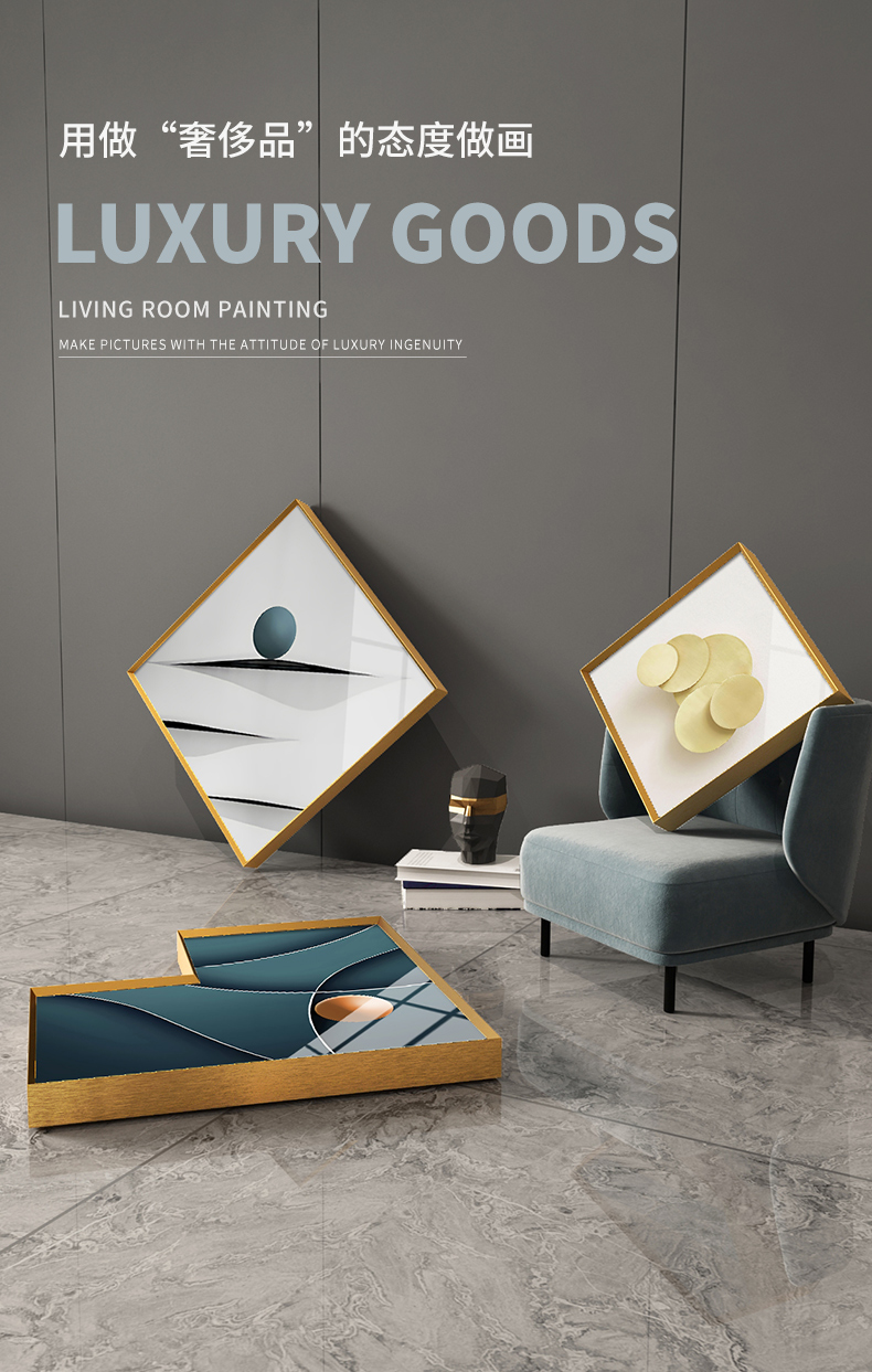 紀恒軟らかいソファーの背景壁装飾画客間壁のムーブメント現代簡単で豪華な三連晶磁器画の高級な大気抽象的な家庭装飾ソフト別荘の壁画の穴あけなし壁画A-黒い枠-錦鹿福運ぐらい40*60+中60*80(2.5ぐらいのソファーに適しています)