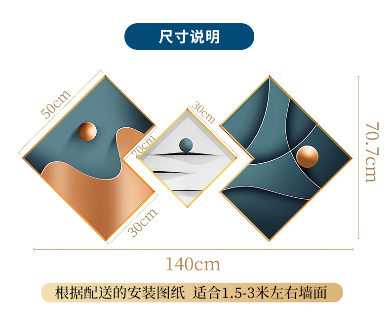 紀恒ふわふわ象装飾画客間のソファーの背景壁壁画現代軽奢晶磁器三連画は簡単な大気抽象画を描いて、家庭用ソフトアクセサリーの無料打孔テレビの壁に掛けた壁画は吉祥如意A-金色枠(晶磁画面)の左右40*60+中60*80(2.5ぐらいのソファーに適しています。)