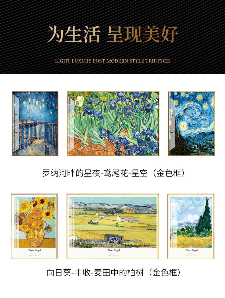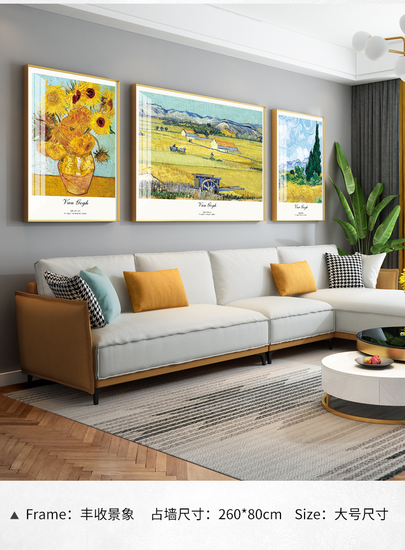 紀恒軟らかいゴッホの装飾画世界の名画家の居間のソファーの壁に、軽くて豪華な磁器画の高級な大気三連画の現代簡単な壁画の抽象芸術の壁画の豊作シリーズぐらい50*70+中70*100(3.5メートルぐらいのソファー)を掛けました。