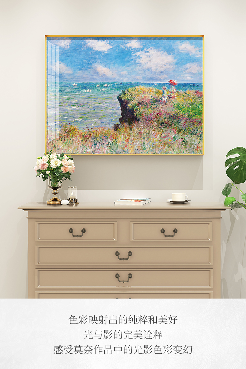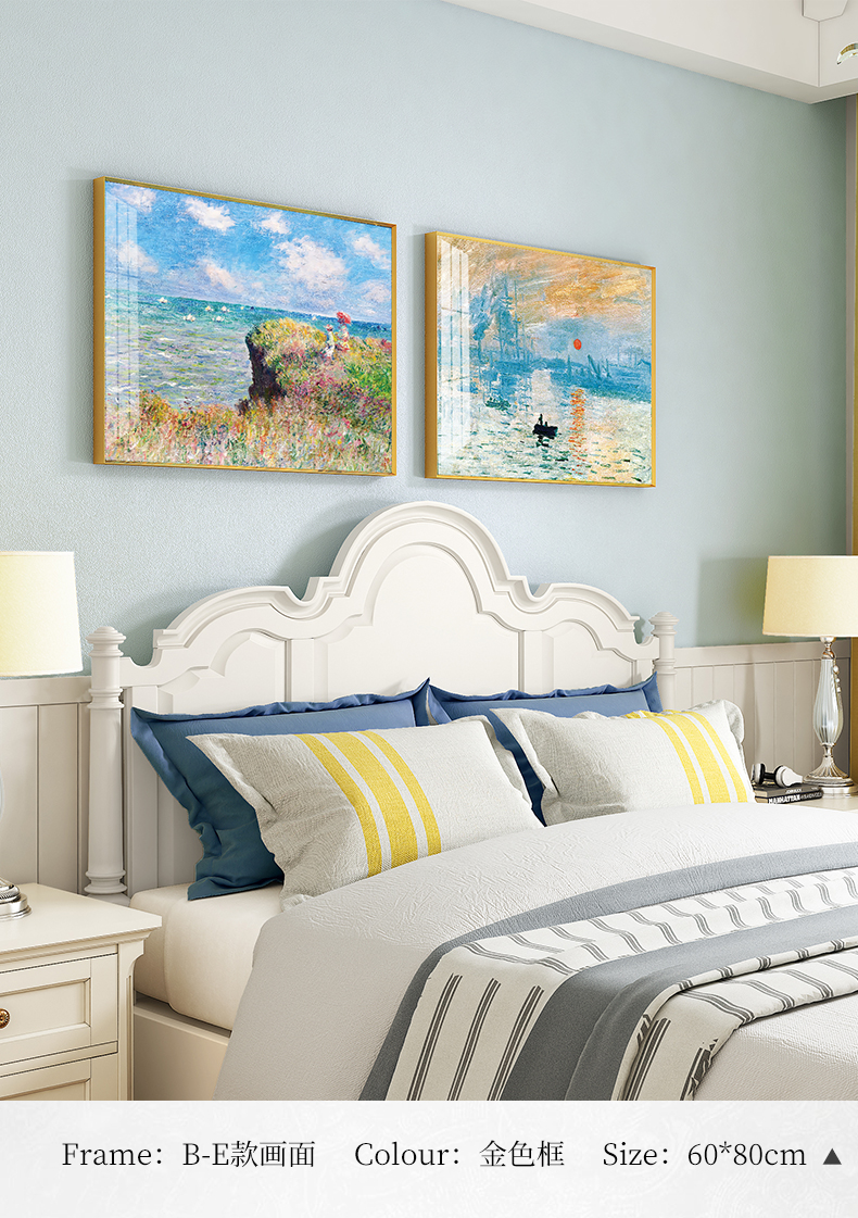 紀恒ふわふわレストランの装飾画の一幅の横柄な絵の世界の名画ゴッホの作品北欧現代晶磁画免除打孔壁画の軽い豪華な高級レストランのテーブルの上の壁画モネ-B日の出-金色の枠の高さ50*幅70 cm