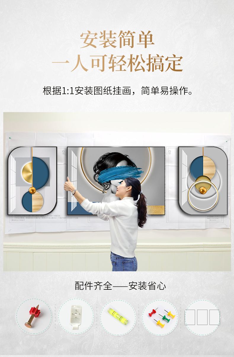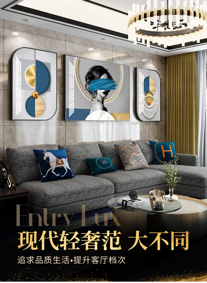 紀恒軟らかい客間の背景壁の装飾画は現代ソファの後ろの壁に掛けられています。軽くて贅沢な高級なダイヤモンドを描いて、磁器の絵を描いて、壁画の三連を動かします。中国式のフリーホールの壁を描いて、福を運びます。黒い枠(晶磁の手作業用のドリル)は50*70+中70*100ぐらいです。(3.5メートルぐらいのソファー)