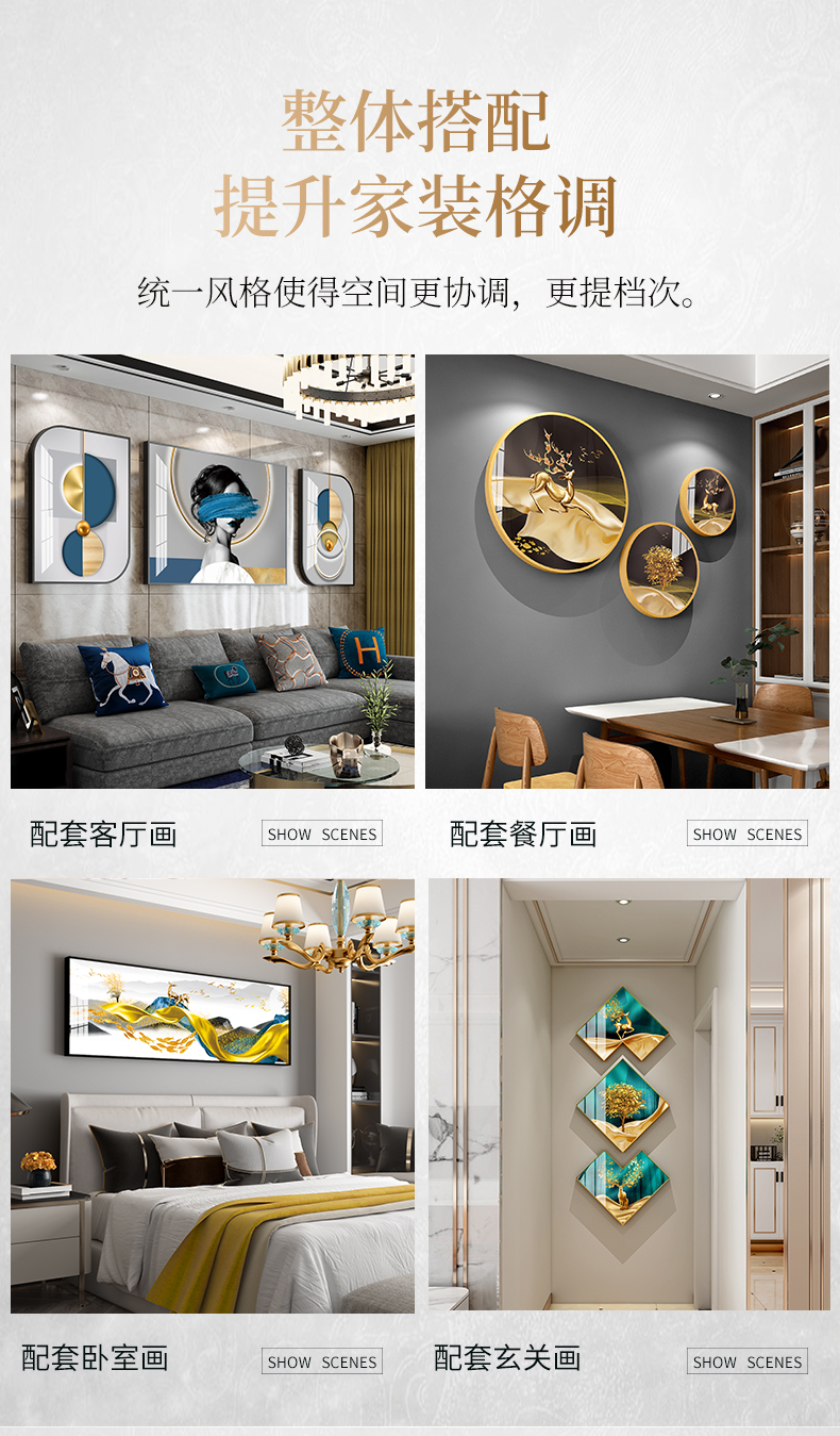 紀恒軟らかく玄関に飾って縦書きの抽象的な現代客間廊下の簡単な芸術掛画アイデアレストラン北欧風壁画免除ホールホテルの背景壁画金鹿送福-D 80*160 cmゴールドフレーム