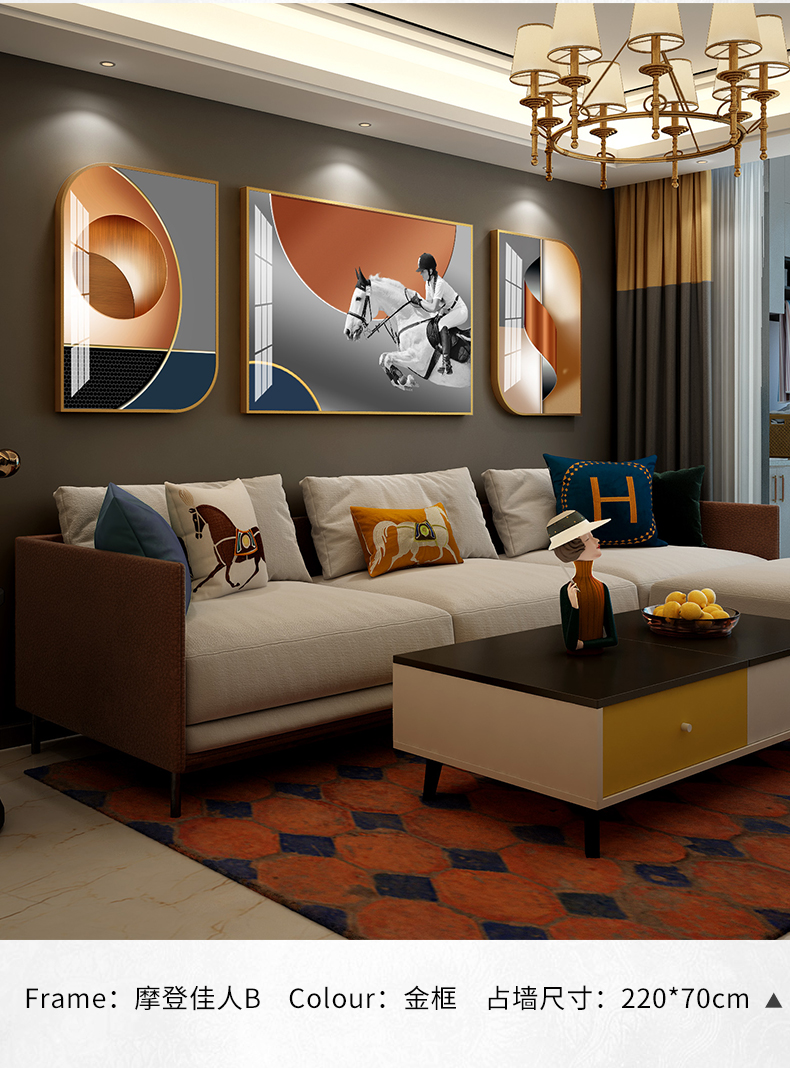 紀恒ふわふわリビングルームのソファーの背景壁の装飾画現代簡約ハイエンドの大気北欧掛画の軽豪華な風と高級な磁器画のアイデアを抽象的な人物馬三連の壁画は穴壁画A-黒い枠-モダンな佳人Aぐらい40*60+中60*80(2.5ぐらいのソファーに適しています)