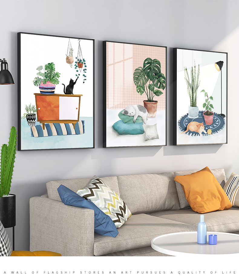 紀恒ふわふわ北欧風アニメ装飾画客間ソファの背景壁壁画子供部屋小動物可愛い枕元掛画レストラン歺庁寝室散歩創意ファッション壁画三連A-黒い枠で泡を吹く動物40*60 cm(2メートルぐらいのソファーに適しています)