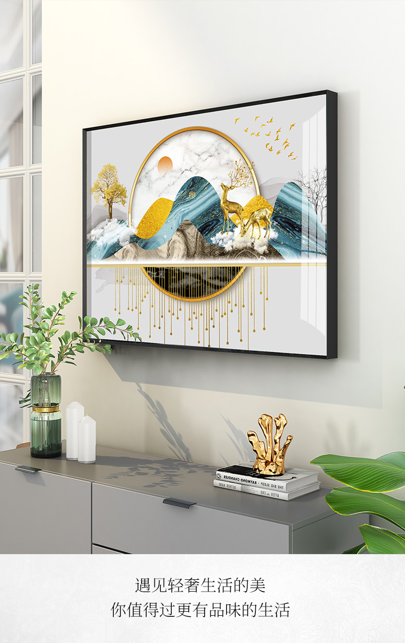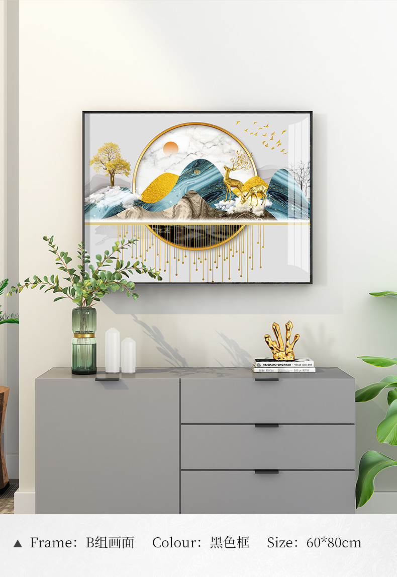 | 紀恒ふわふわレストラン装飾画北欧風食堂歺庁掛画現代簡単で高級な食卓の壁の壁画招财風水家居客間玄関通路晶磁画B-招财福鹿-黒い枠高60*幅80 cm | 紀恒ふわふわレストラン装飾画北欧風食堂歺庁掛画現代簡単で高級な食卓の壁の壁画招财風水家居客間玄関通路晶磁画B-招财福鹿-黒い枠高60*幅80 cm |