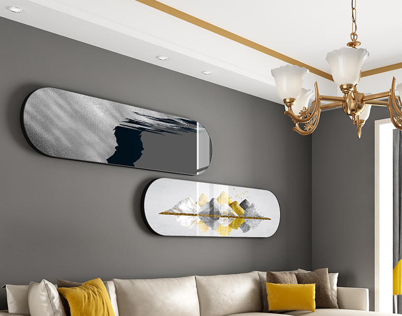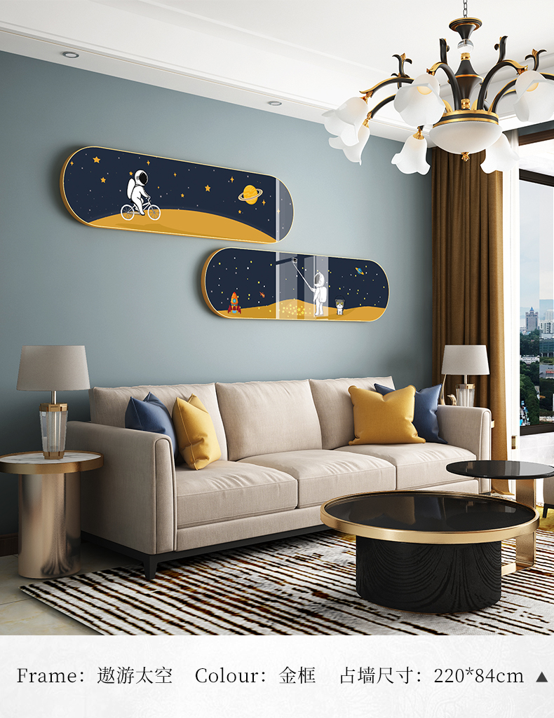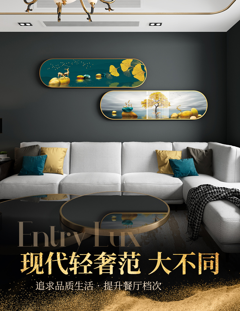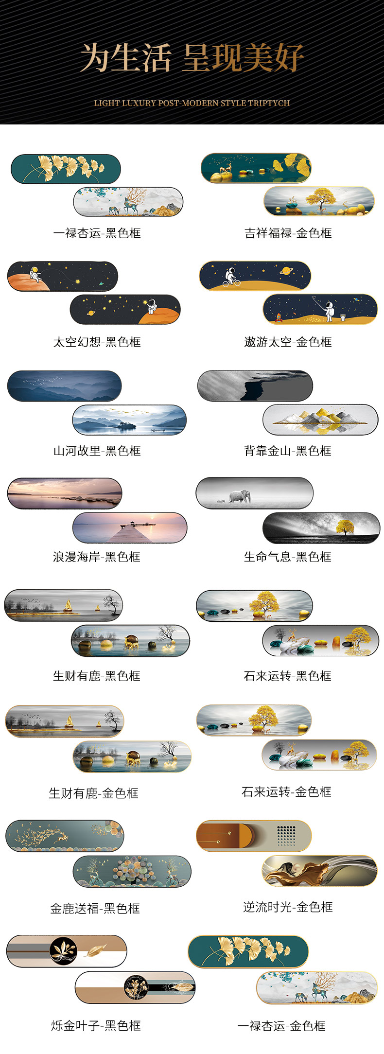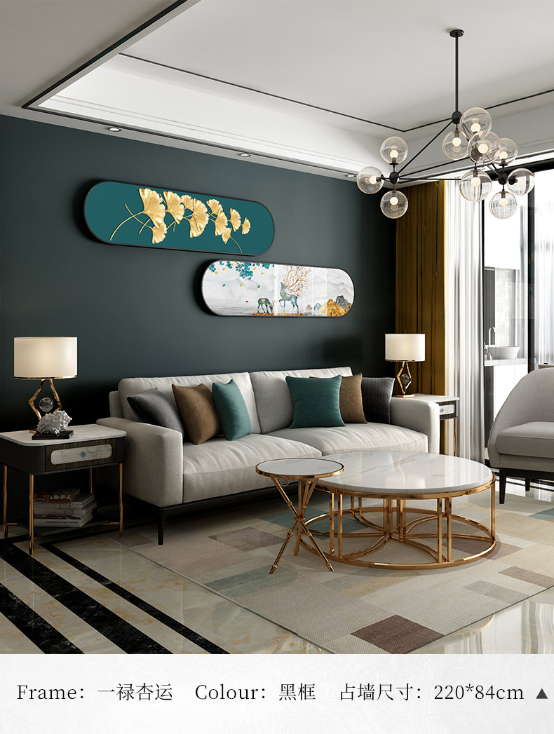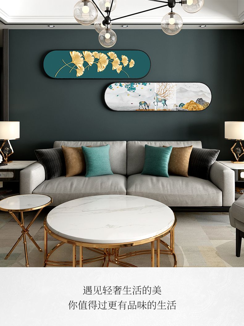 紀恒ふんわりとした高品位なリビング装飾画ソファの後ろの背景壁の壁画の水晶磁器の掛け絵横断幕中国風長条現代の鹿の風景の葉大気簡約壁掛図P 01-B-吉祥福禄-金色枠の2つの組み合わせ(全体サイズ:220*84 cm)