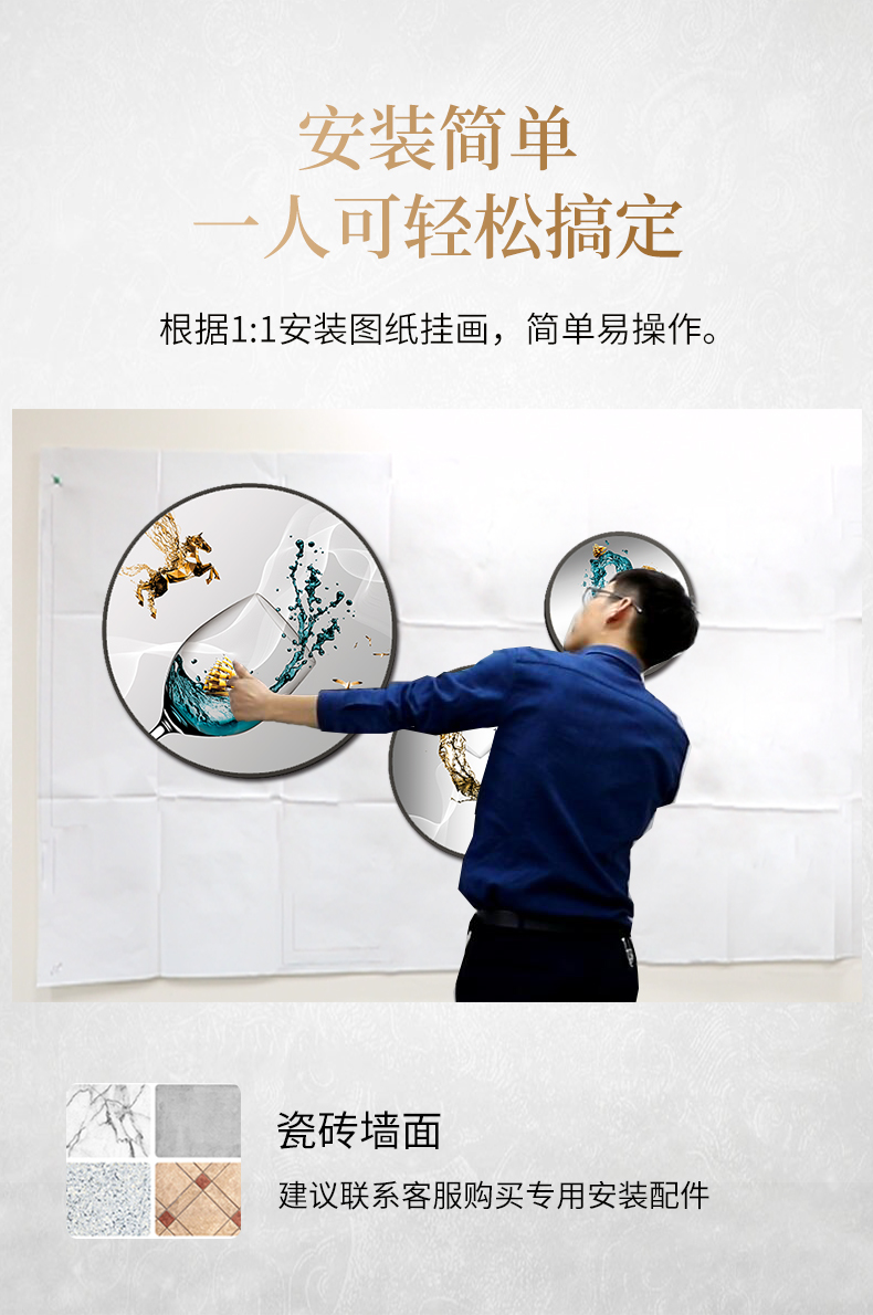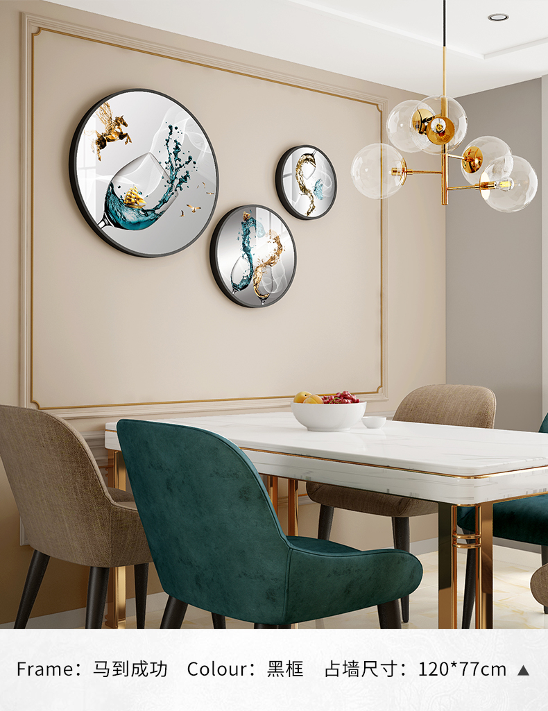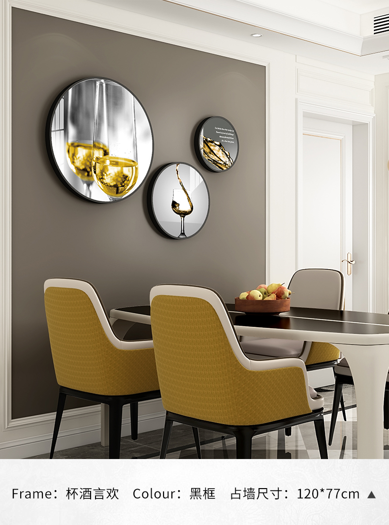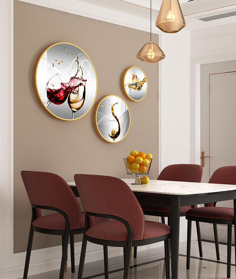 紀恒軟らかいレストランの壁面に、円形の杯を組み合わせて描いたリビングルームの壁の駿馬掛画画歺庁のレストランのテーブルの壁の上にある晶磁画は、軽奢で高級な寓意のある壁に描かれています。C-杯酒濃情-金色の枠は壁のサイズを占めています。120 cm*77 cm