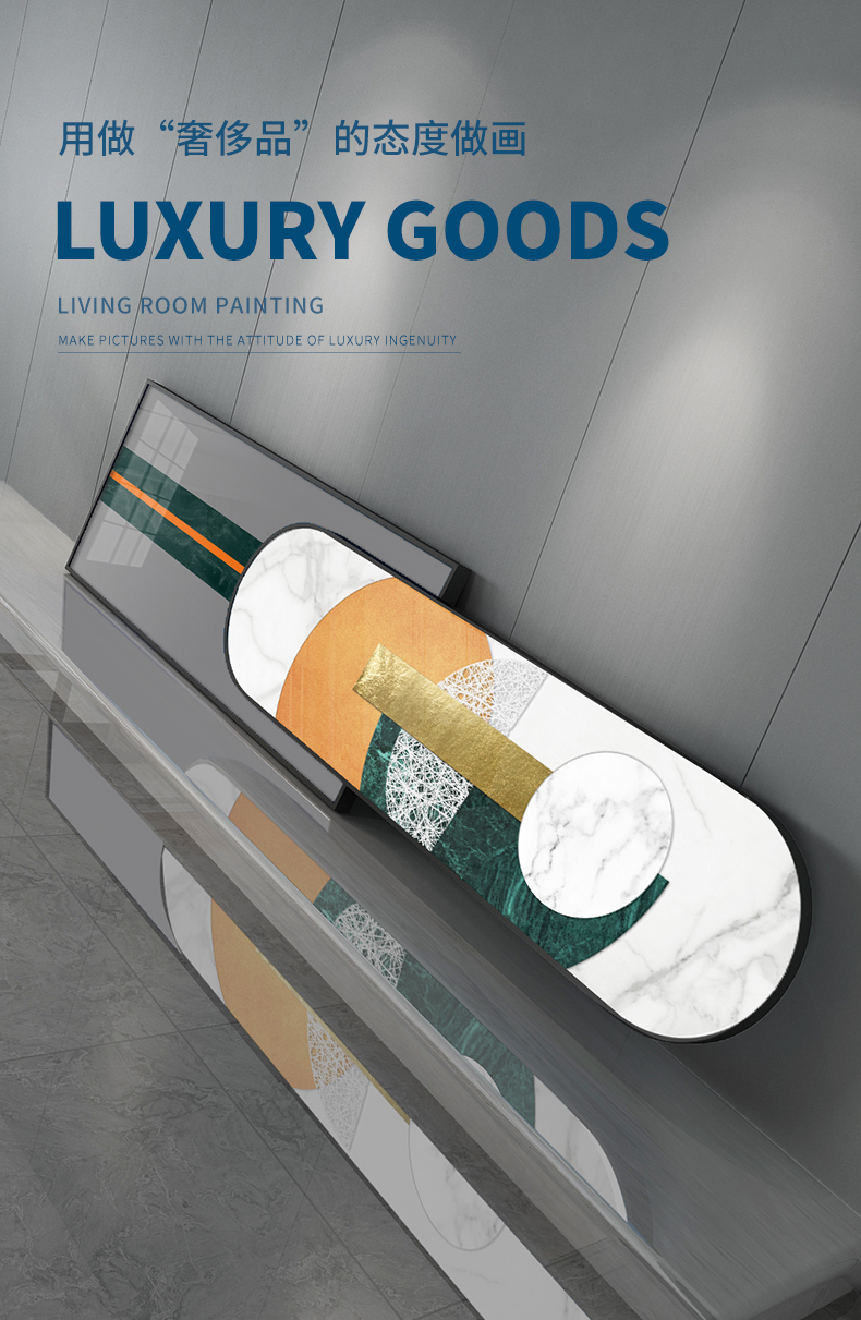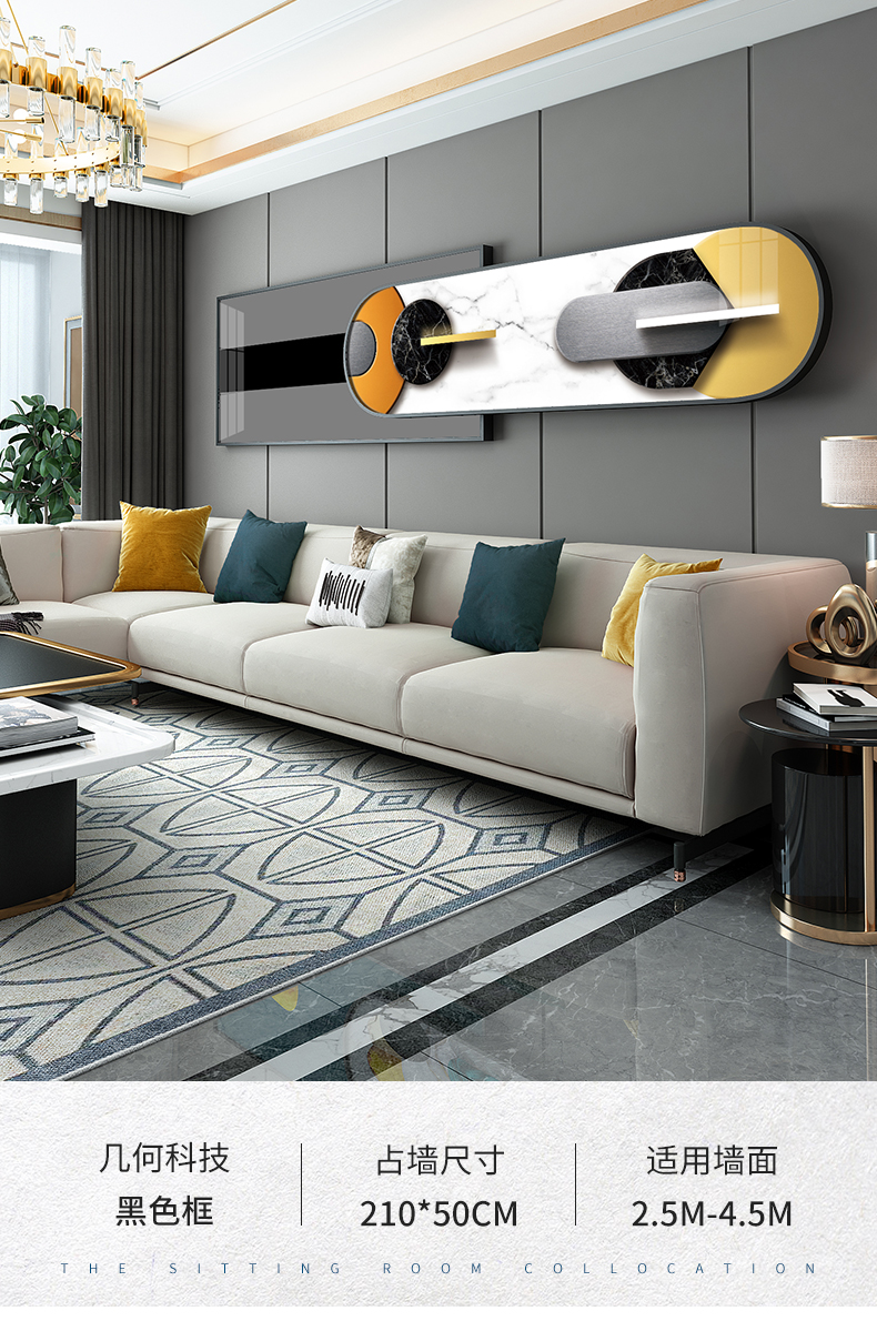 紀恒軟らかい現代抽象的なリビングの背景壁にソファを飾った後、壁に掛けた簡単な絵スタイルの横断幕が水晶の磁器の壁絵のハイエンドの個性的な個性的な壁に重畳されています。D-金属の光感-黒いアルミニウム合金のフレーム210*50 cm(2.5-4.5メートルぐらいのソファーに適しています。)