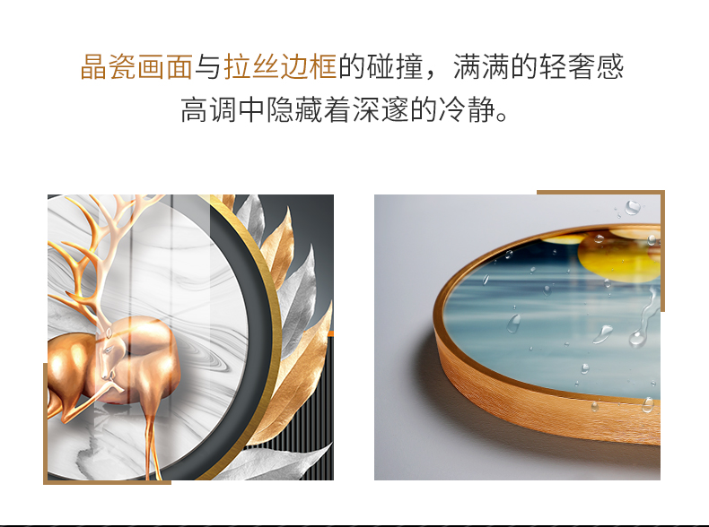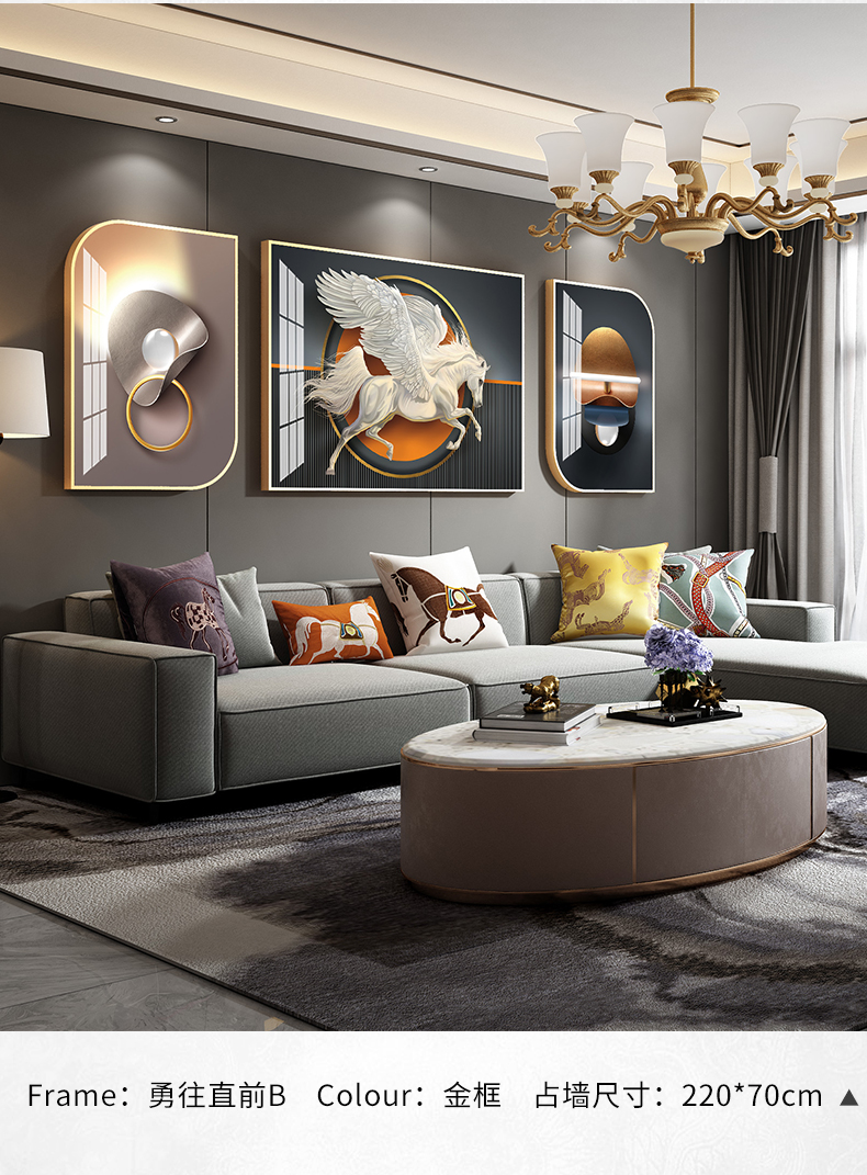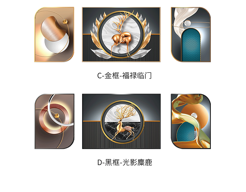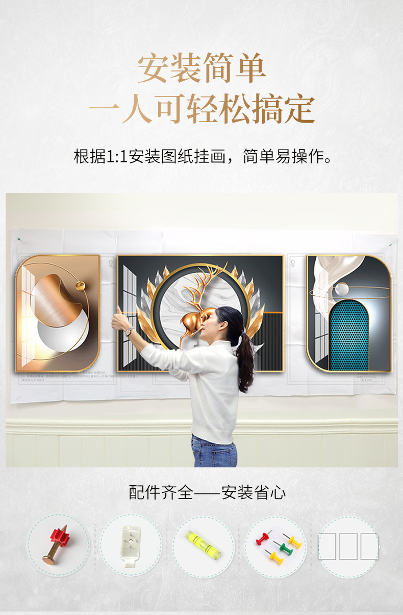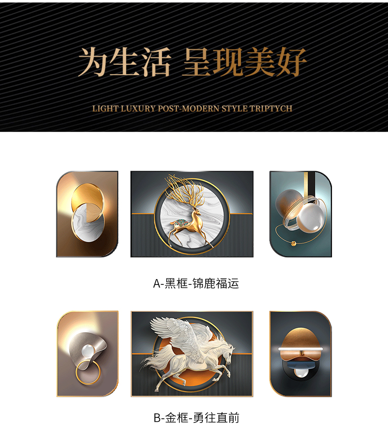 紀恒軟らかいソファーの背景壁装飾画客間壁のムーブメント現代簡単で豪華な三連晶磁器画の高級な大気抽象的な家庭装飾ソフト別荘の壁画の穴あけなし壁画A-黒い枠-錦鹿福運ぐらい40*60+中60*80(2.5ぐらいのソファーに適しています)