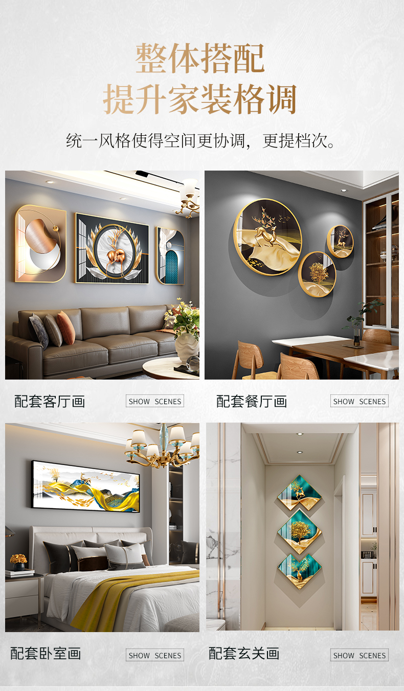 | 商品名称 | 紀恒軟らかいソファーの背景壁装飾画客間壁のムーブメント現代簡素で豪華な三連晶磁器画の高級な大気抽象的な家庭用ソフトアクセサリー別荘の壁画の穴あけなし壁画A-黒い枠-錦鹿福運ぐらい40*60+中60*80(2.5ぐらいのソファーに適しています) |