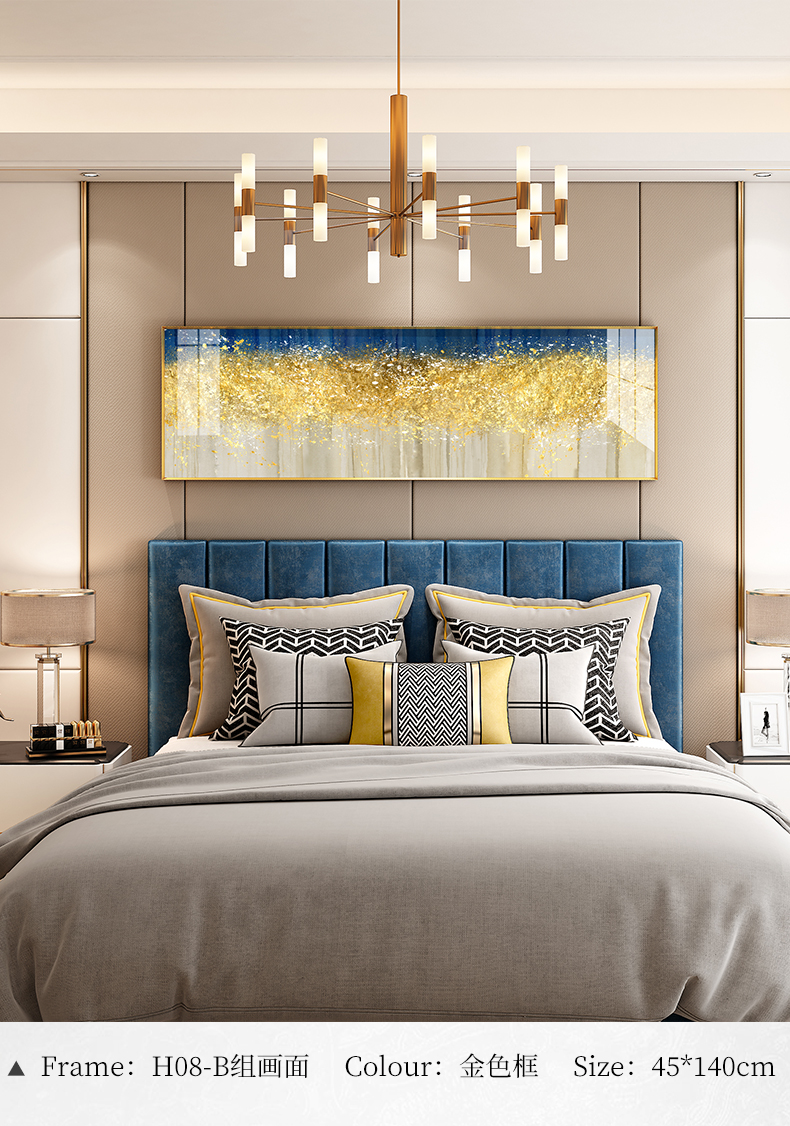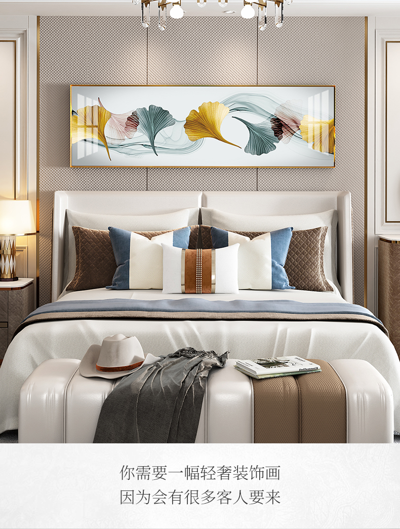 紀恒ふんわりとした新しい中国式寝室のベッドの装飾画の主な寝室の部屋の高級な現代簡単な掛け軸の絵は、風水の山の水晶の磁器が描く軽やかで豪華な大気ソファの背景壁の壁画の一幅の壁の絵H 10-A-銀杏の芳華-金色の枠の45*140 cmを招きます。