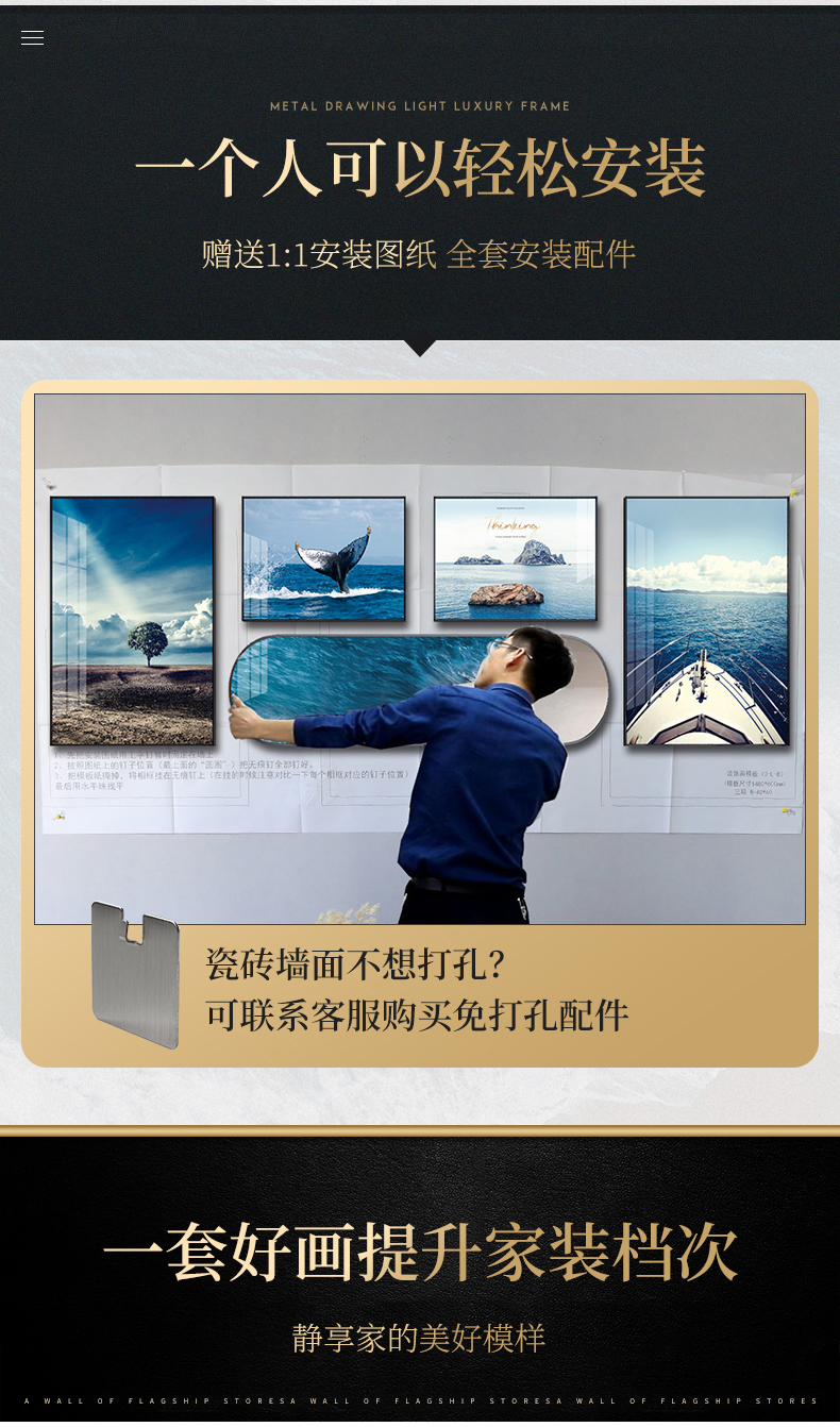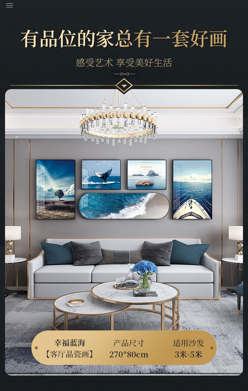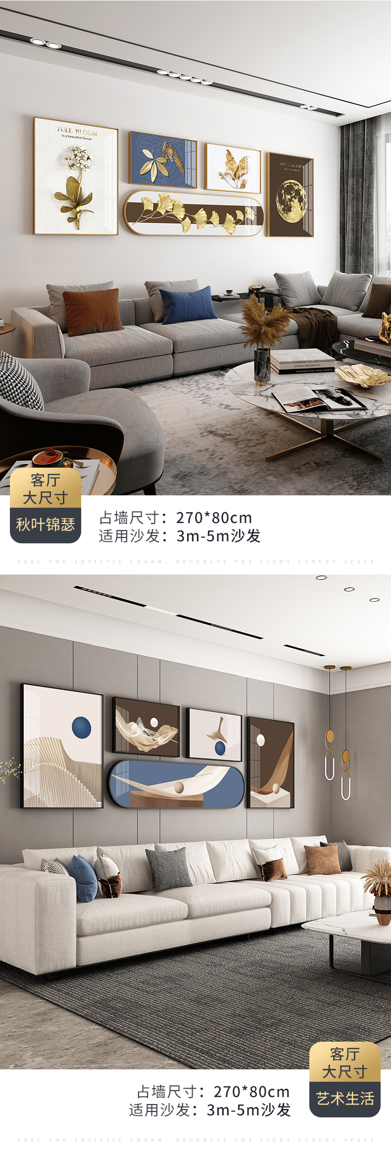 | 商品名称 | 紀恒軟らか客間の背景壁の装飾画の超大型高級セット掛画ホームホールの軽豪華な大気創意円角壁画別荘金色葉莫蘭迪浪漫壁画芸術生活全体の幅は2.7メートルで、高0.8メートル(アルミニウム合金フレームの晶磁画) |