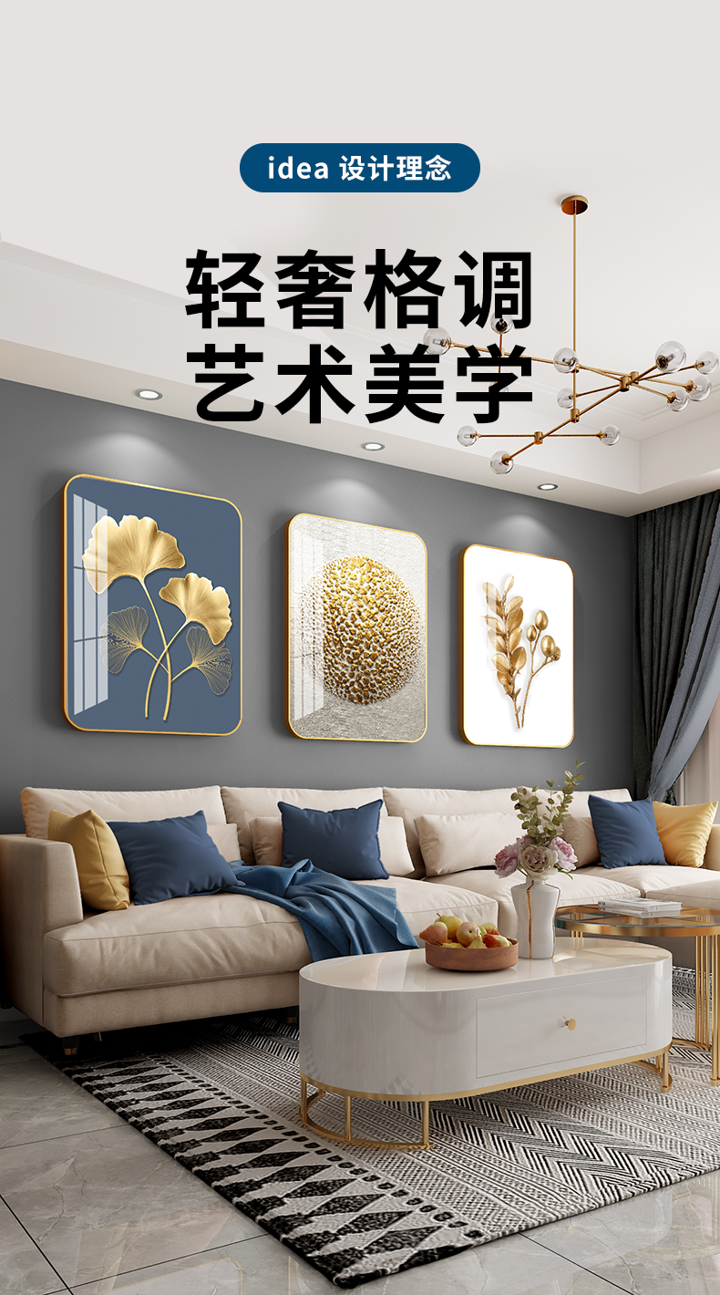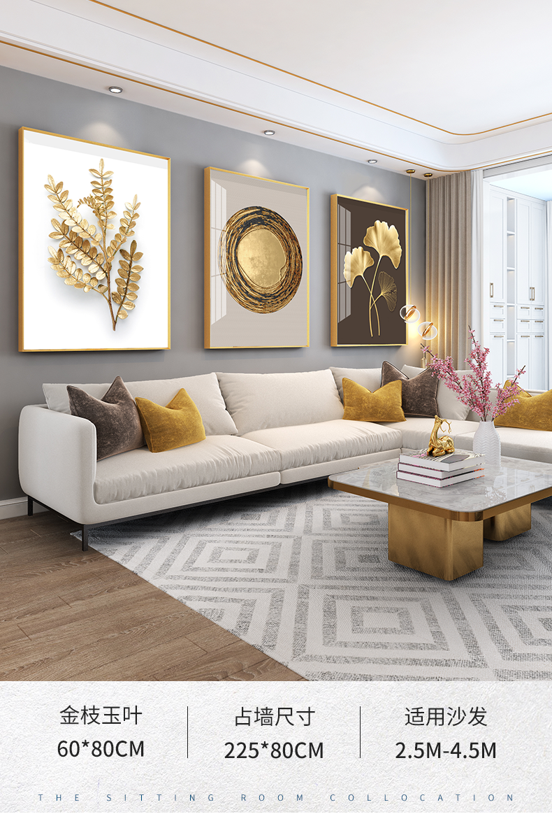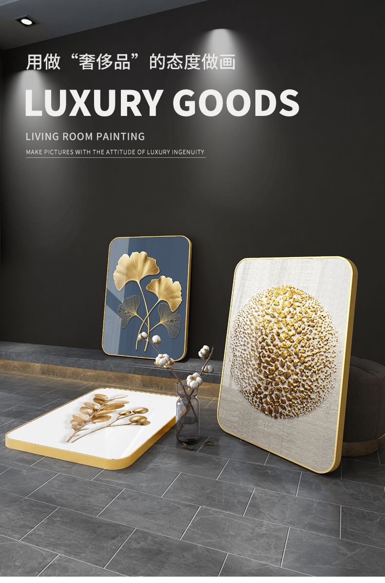 紀恒ふんわりとした高品位装飾画リビングソファの背景壁掛画現代シンプルなスタイルの家軟装別荘水晶焼磁壁画晶磁画北欧壁画金葉年華--金枠-新型円角組40*60 cm(2 mぐらいのソファーに適しています)