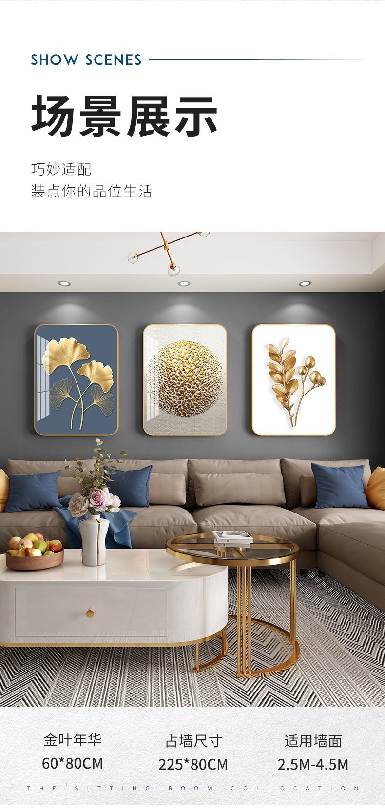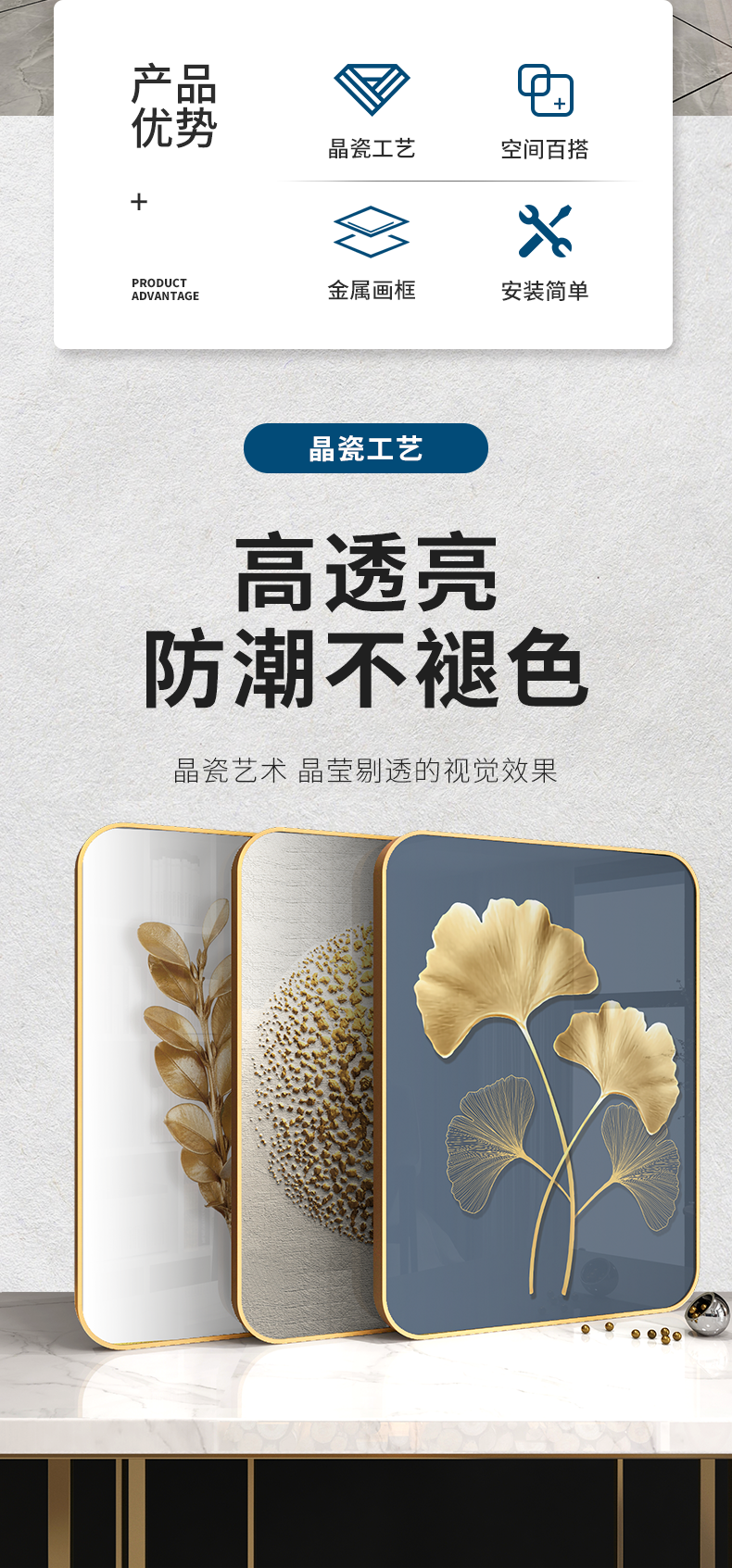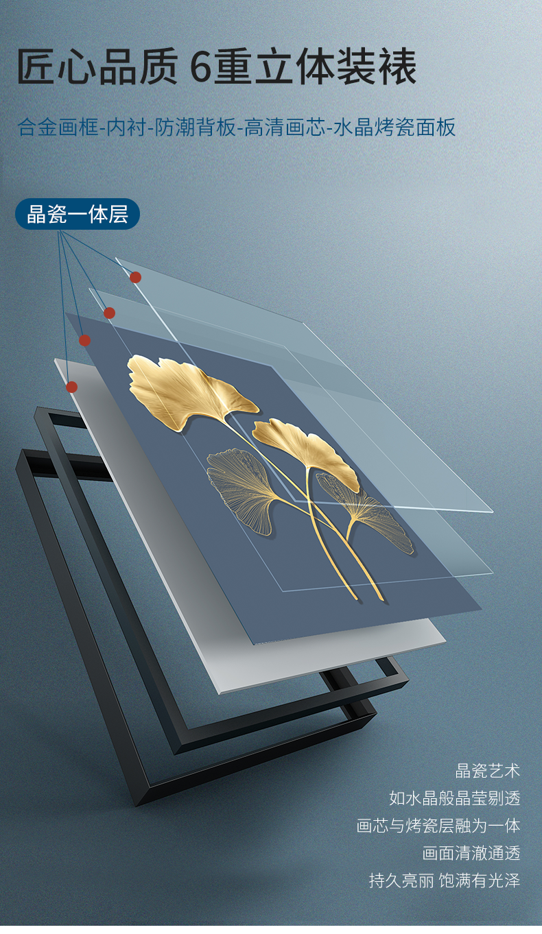 紀恒ふんわりとした高品位装飾画リビングソファの背景壁掛画現代シンプルなスタイルの家軟装別荘水晶焼磁壁画晶磁画北欧壁画金葉年華--金枠-新型円角組40*60 cm(2 mぐらいのソファーに適しています)