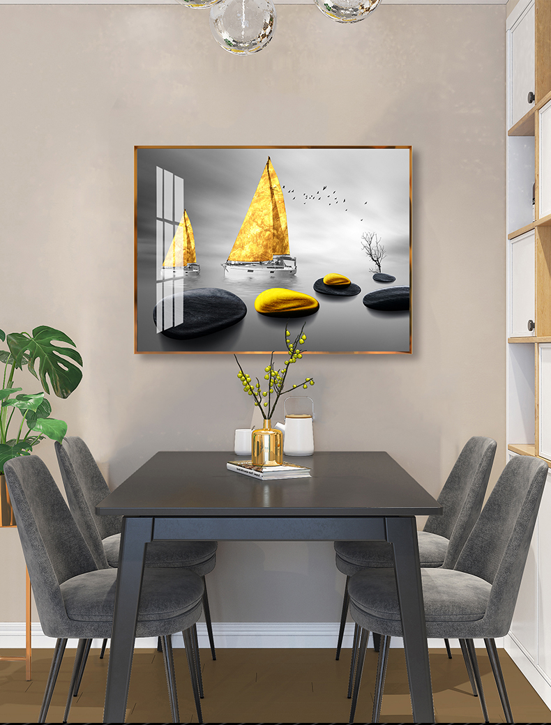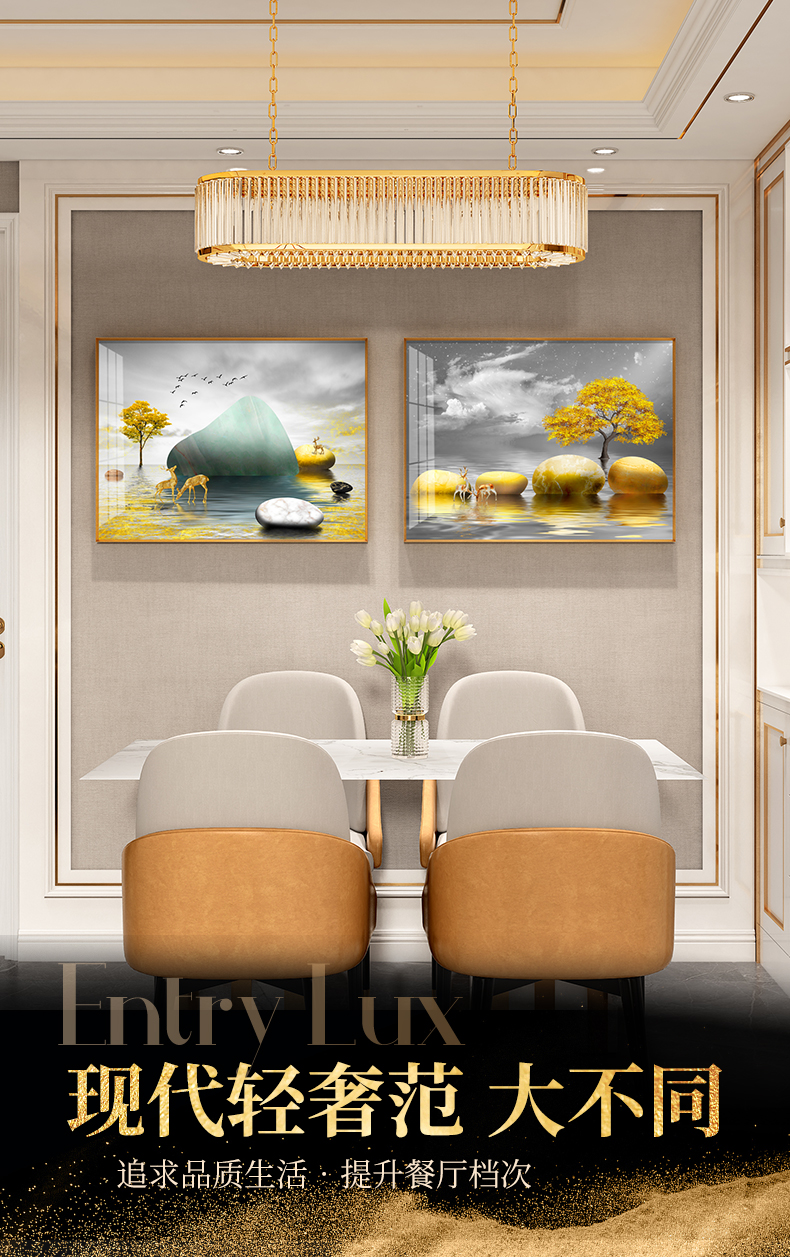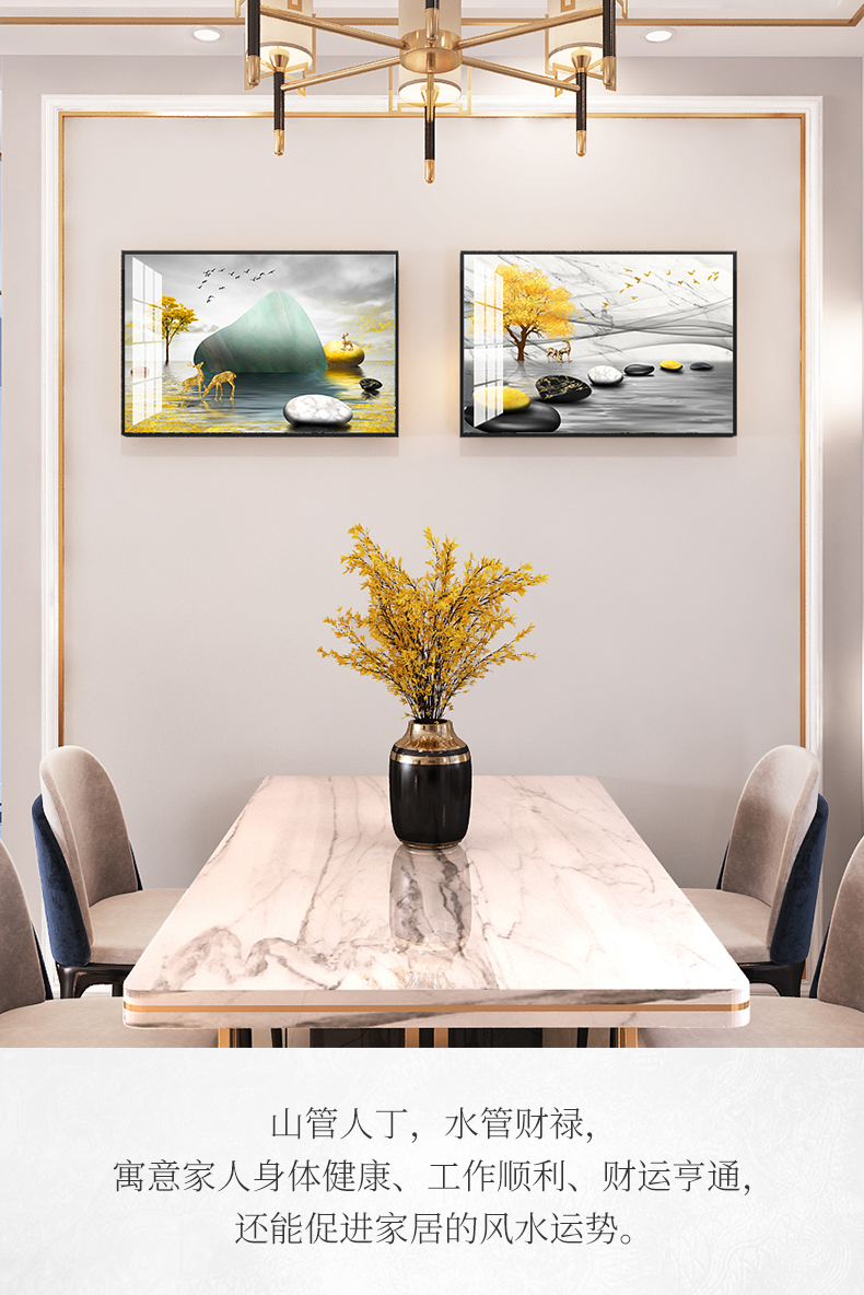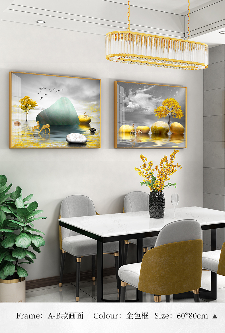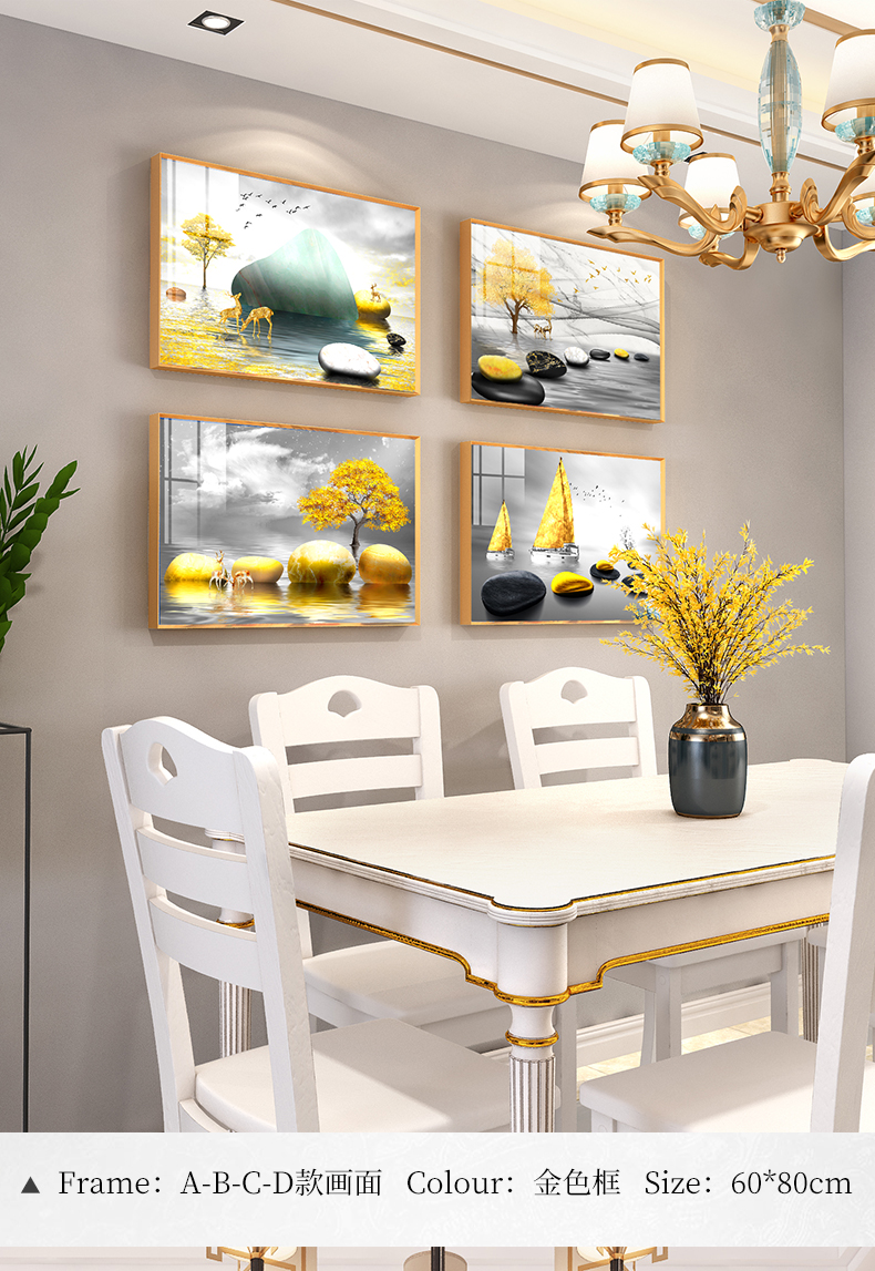 紀恒軟らかい現代簡約庁は軽奢高級レストランの装飾画の一幅の石を掛けて回転します。水晶磁器の絵は穴を開けないでください。廊下は現代中国式の食卓の上の横の壁画を描いています。C-運旺石盛-金色の枠60*80 cm