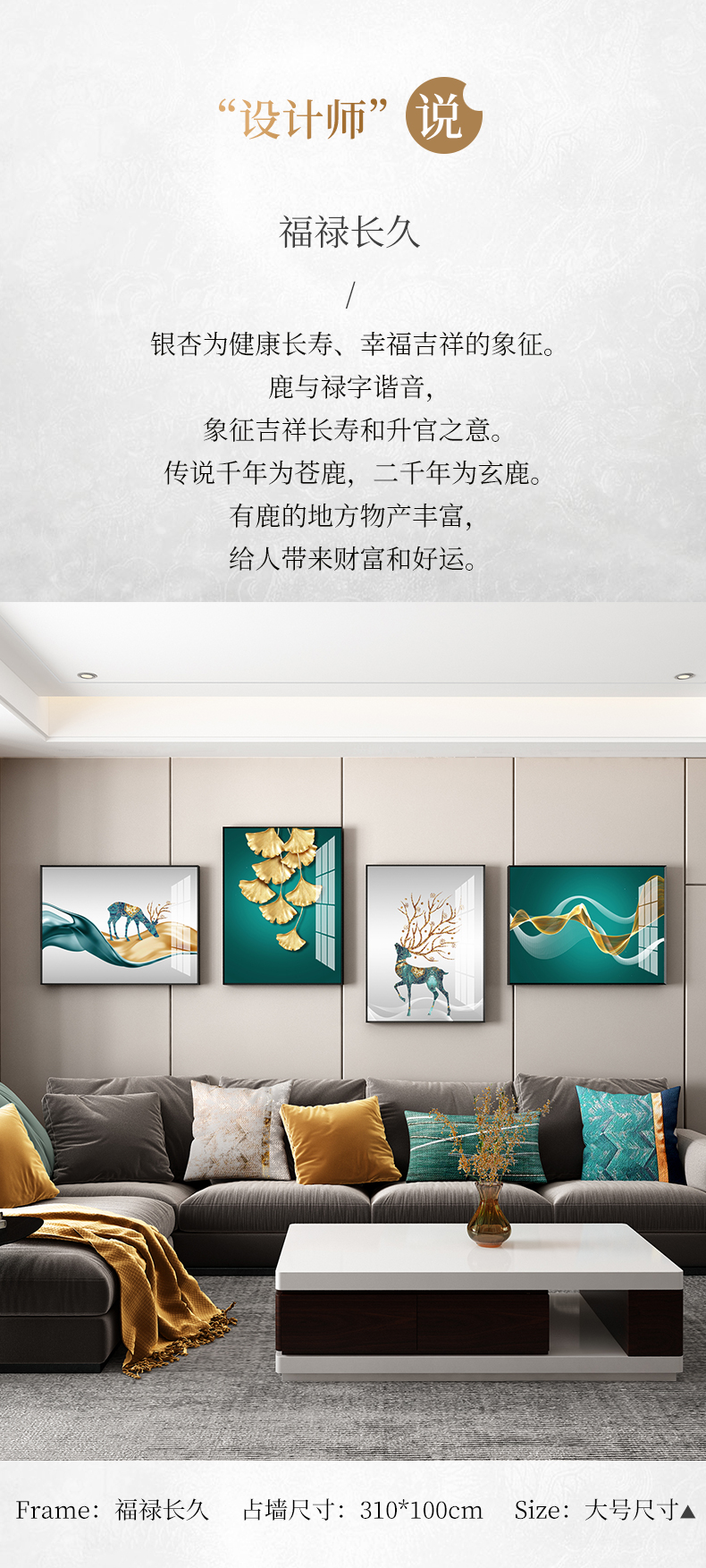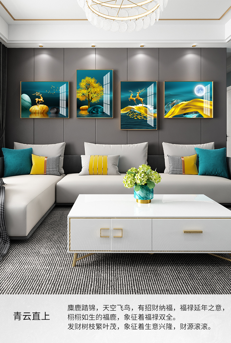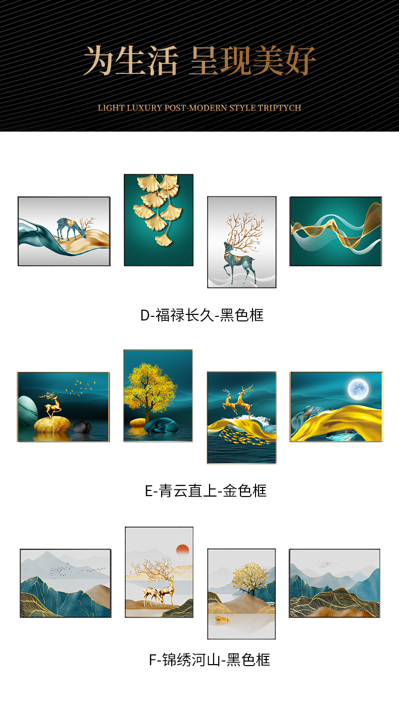 | 商品名称 | 紀恒ふわふわリビングルームのソファーの壁の装飾画が軽奢な現代テレビの壁に掛けられています。簡単な大気結合晶磁の寓意であるトナカイの壁画の抽象的な北欧風の壁画は穴を開けません。F-錦紫河山-黒い枠は270 cm*90 cmです。(3 m-3.5 mぐらいのソファーに適しています。) |