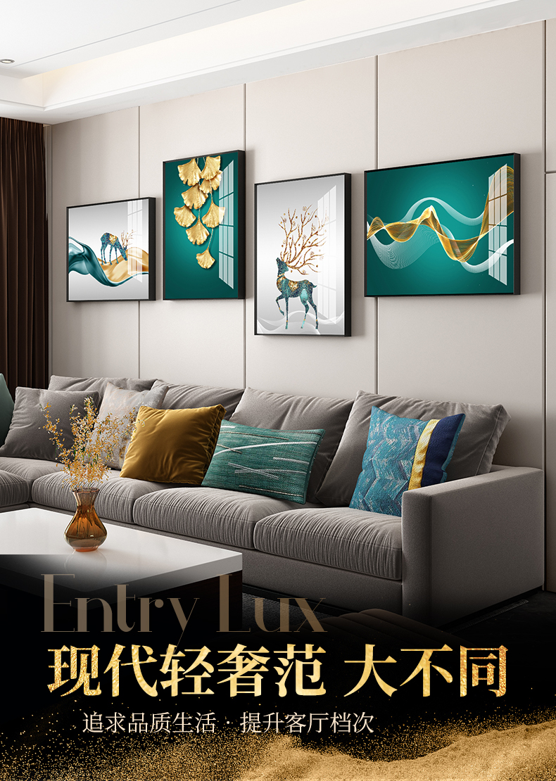紀恒軟らかいリビングルームのソファーの背景壁の装飾画は、軽奢な現代テレビの壁に掛けられています。簡単な大気結合晶磁の寓意であるトナカイの壁画の抽象的な北欧風の壁画は穴が開けられません。