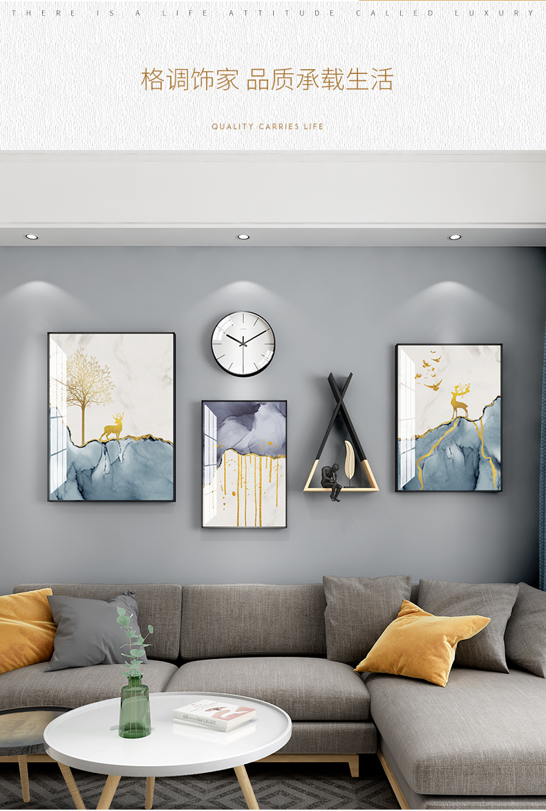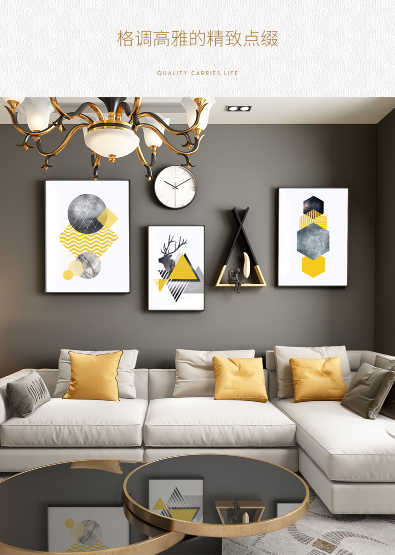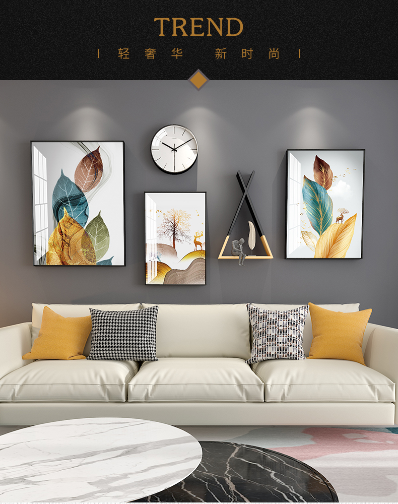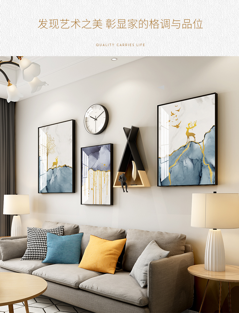 | 商品名称 | 紀恒軟北欧風客間ソファの壁の装飾画現代簡単で豪華な装飾画ファミリーレストラン歺庁壁面の大気新中国風招财風水壁画福禄吉祥-黒い枠の幅は215*高さ103 cmで、2.5-4.5メートルのソファーの壁に適しています。 |
