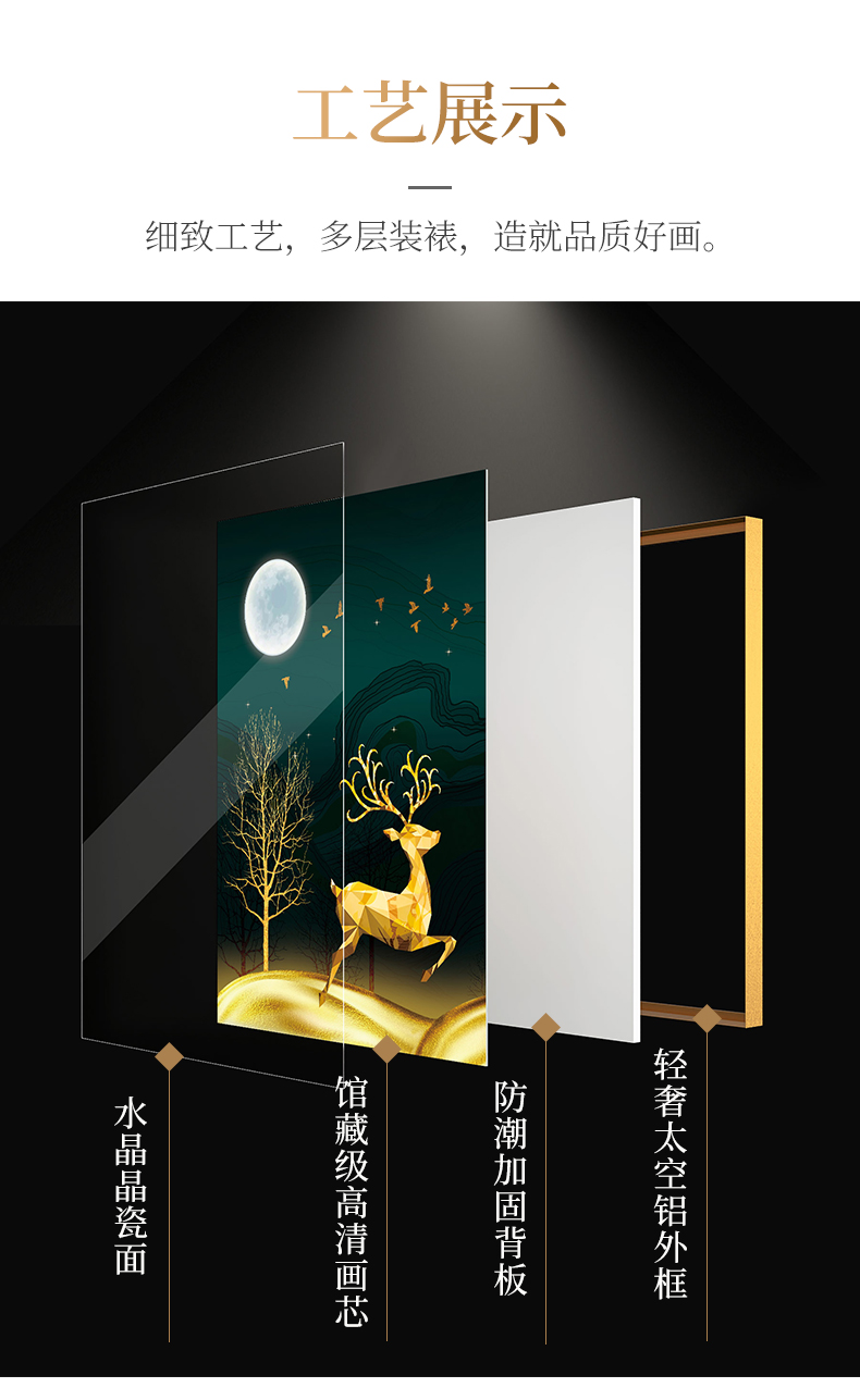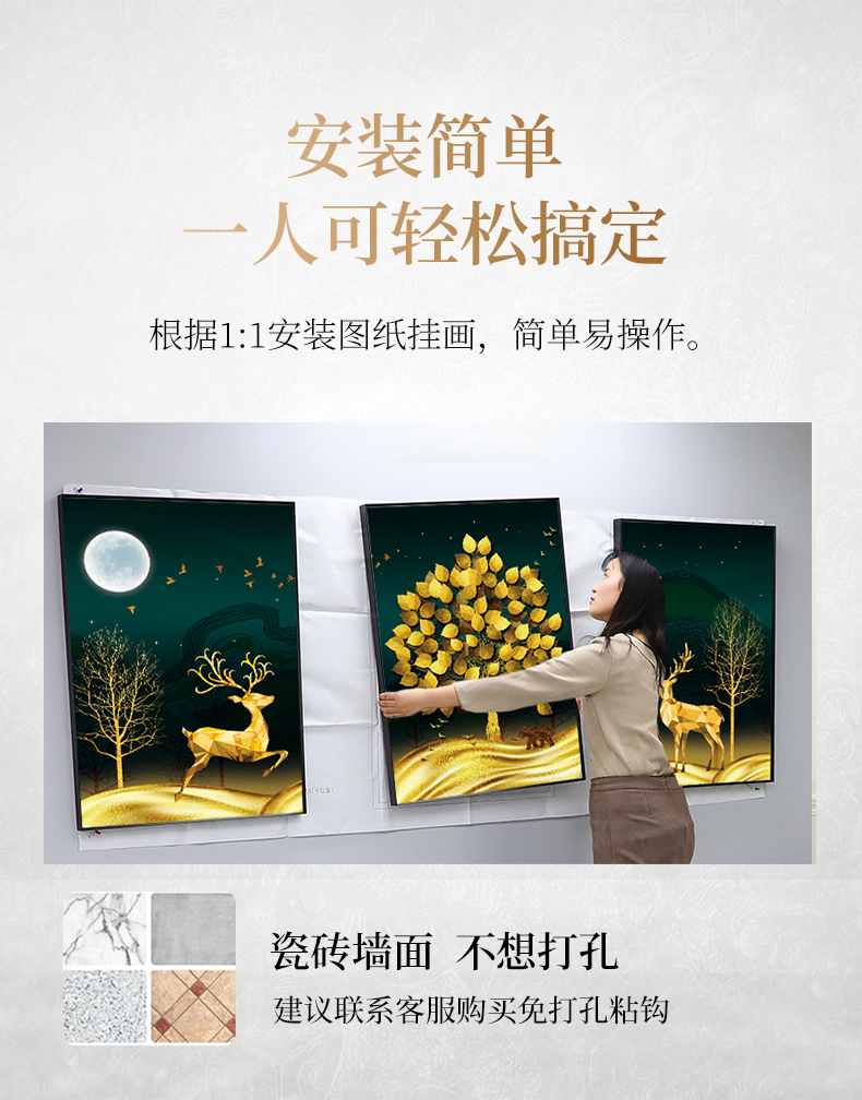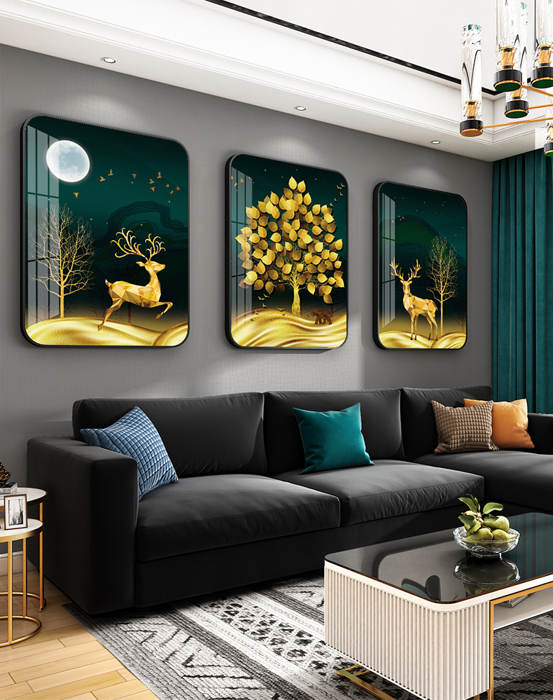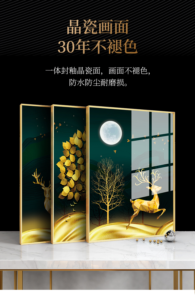 | 商品名称 | 紀恒軟客間装飾画ソファーの背景壁壁画新中国式招財のための鹿三連掛画家の別荘ソフト装飾壁画創意簡単現代晶磁器画壁画直角画-福鹿生財-金色枠60*80 cm(3.5メートルぐらいのソファーに適しています) |
