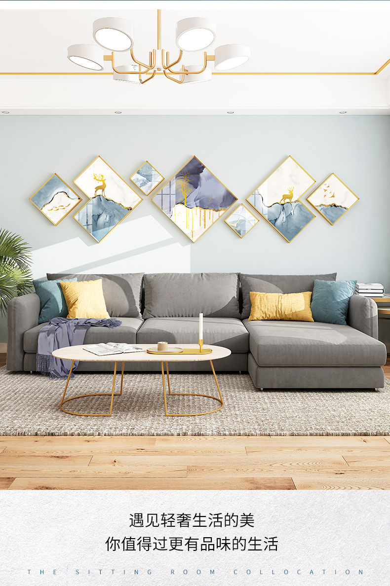 | 商品名称 | 紀恒軟らかい現代の軽奢な装飾画客間のソファーの背景の壁画北欧の風格不規則な掛け絵の高級な大規模な組み合わせが別荘の壁の新版のホールの豪華壁画を描いています。 |