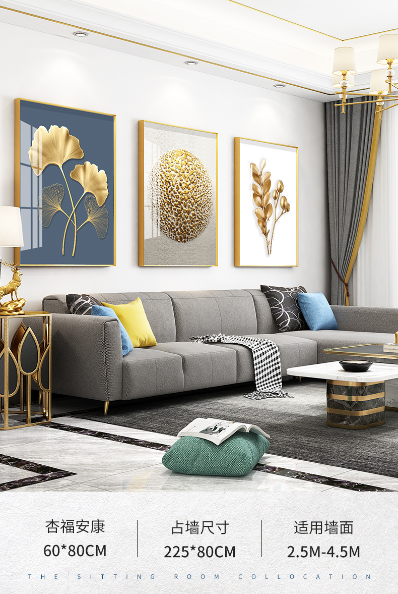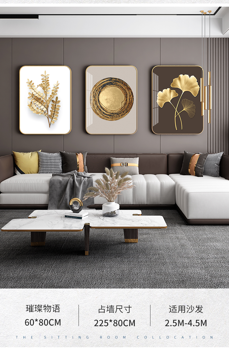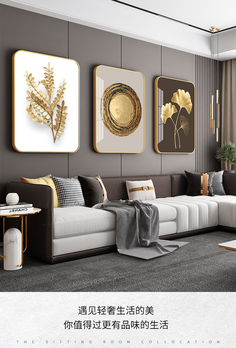 紀恒ふんわりとした高品位装飾画リビングソファの背景壁掛画現代シンプルなスタイルの家軟装別荘水晶焼磁壁画晶磁画北欧壁画金葉年華--金枠-新型円角組40*60 cm(2 mぐらいのソファーに適しています)