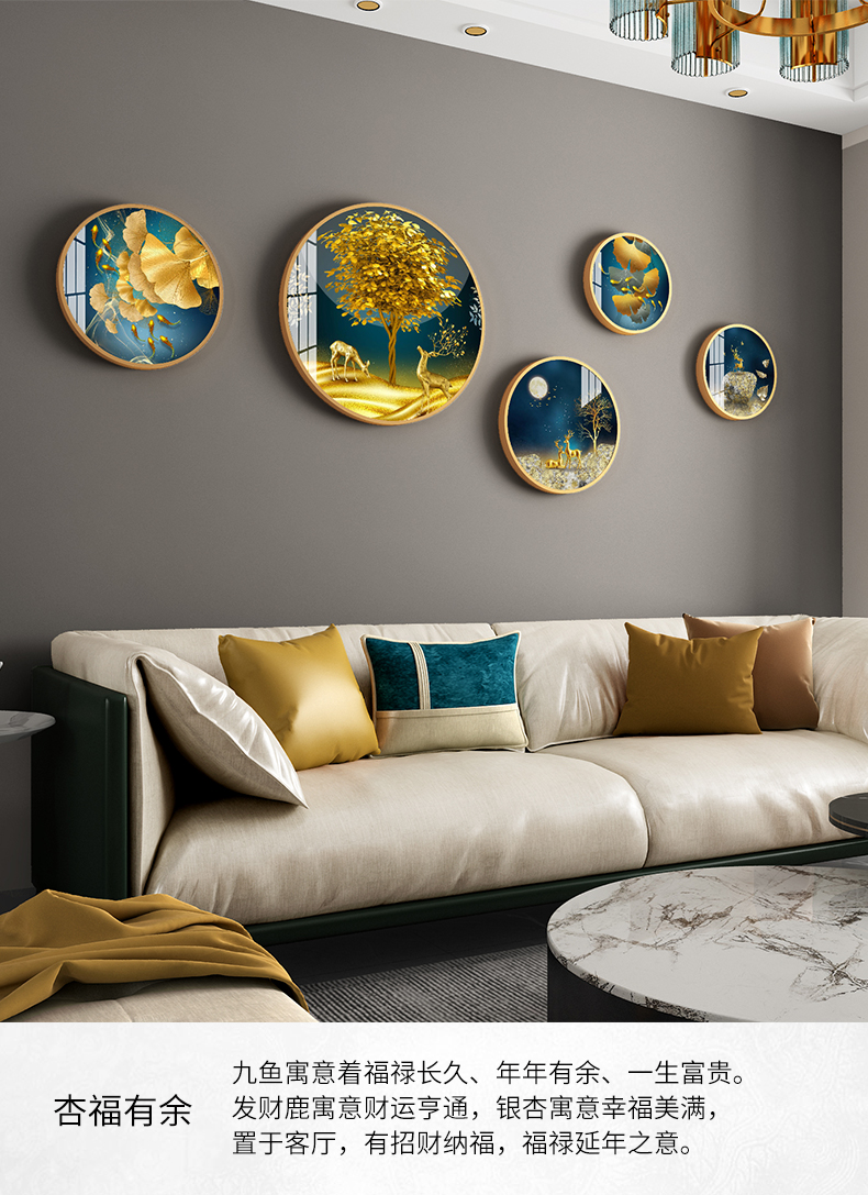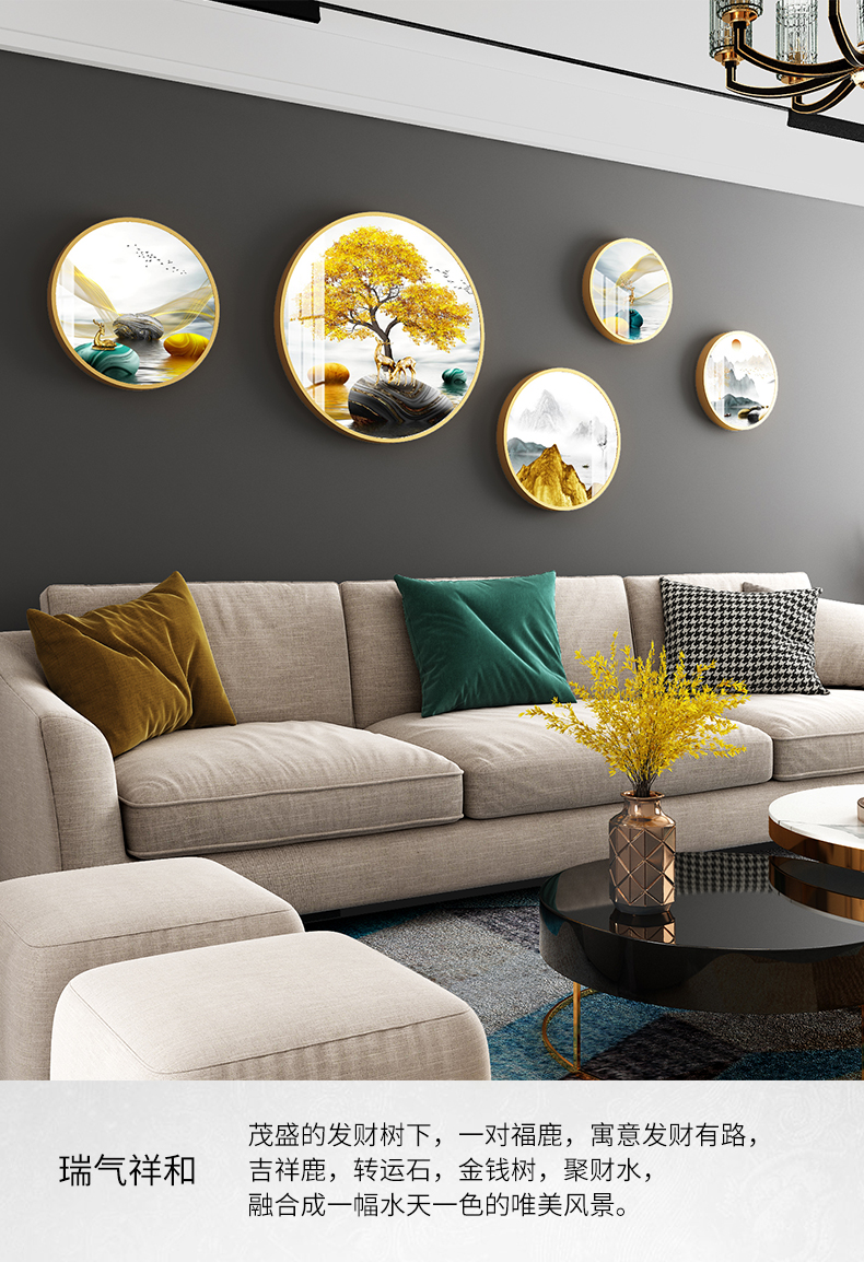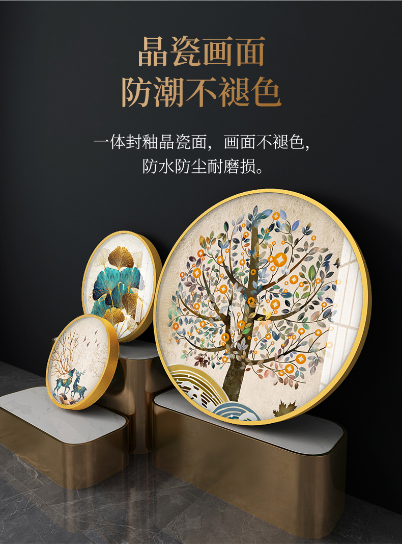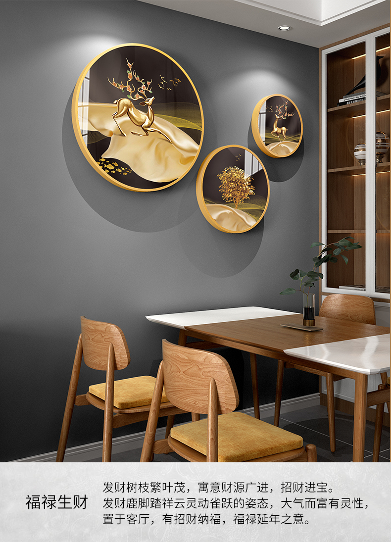 | 商品名称 | 紀恒軟らかい円形の掛け絵リビングの背景壁にソファを飾った後、壁の組み合わせの壁画レストラン歺庁の寓意の良い壁画が軽奢で現代的な「鹿」の高級な「磁画」です。 |