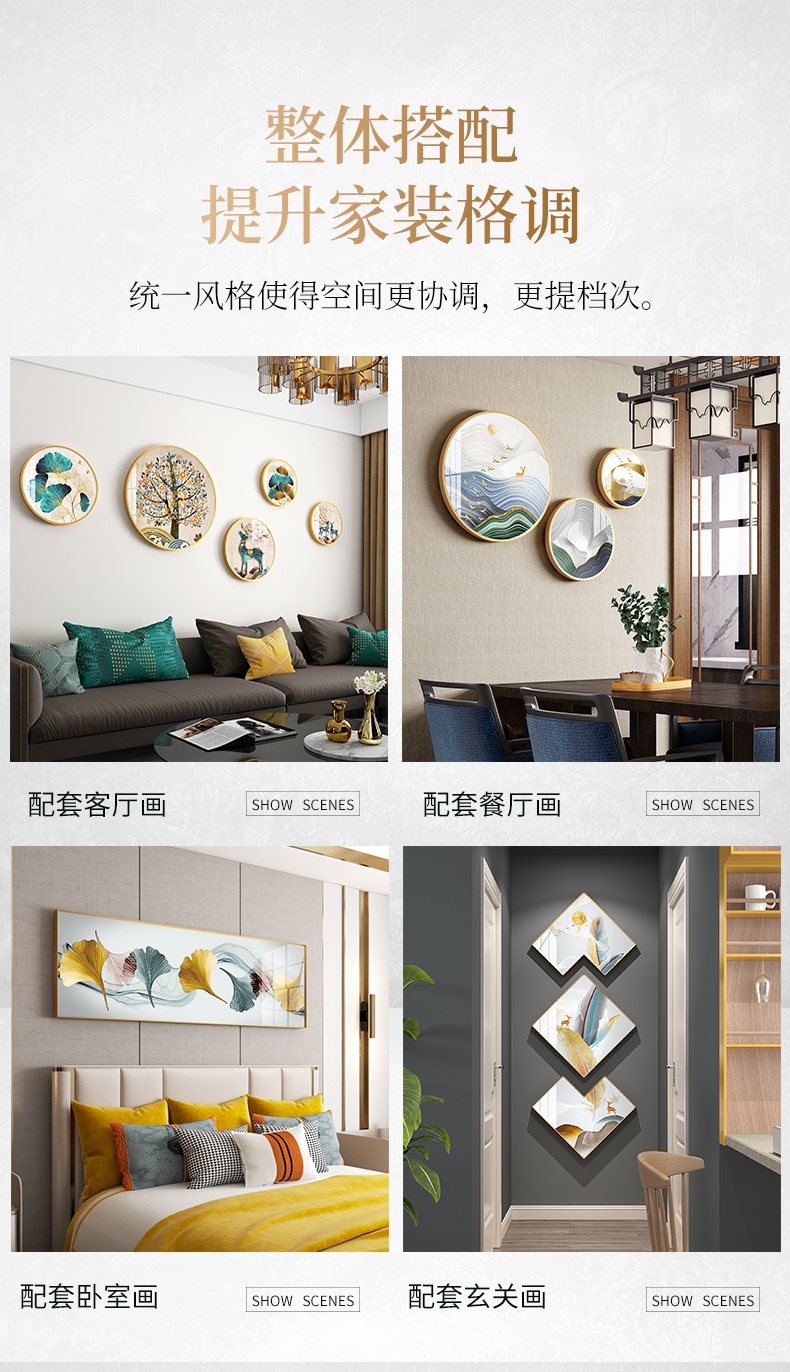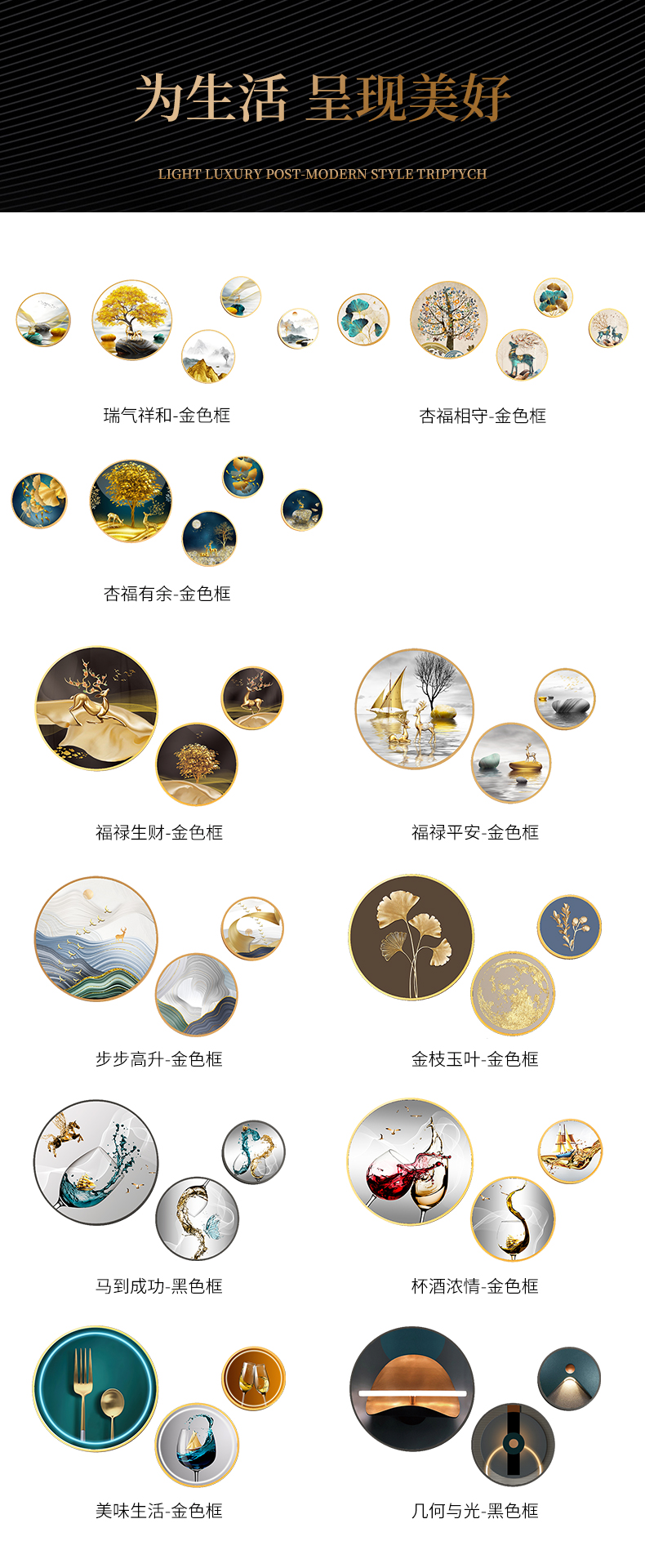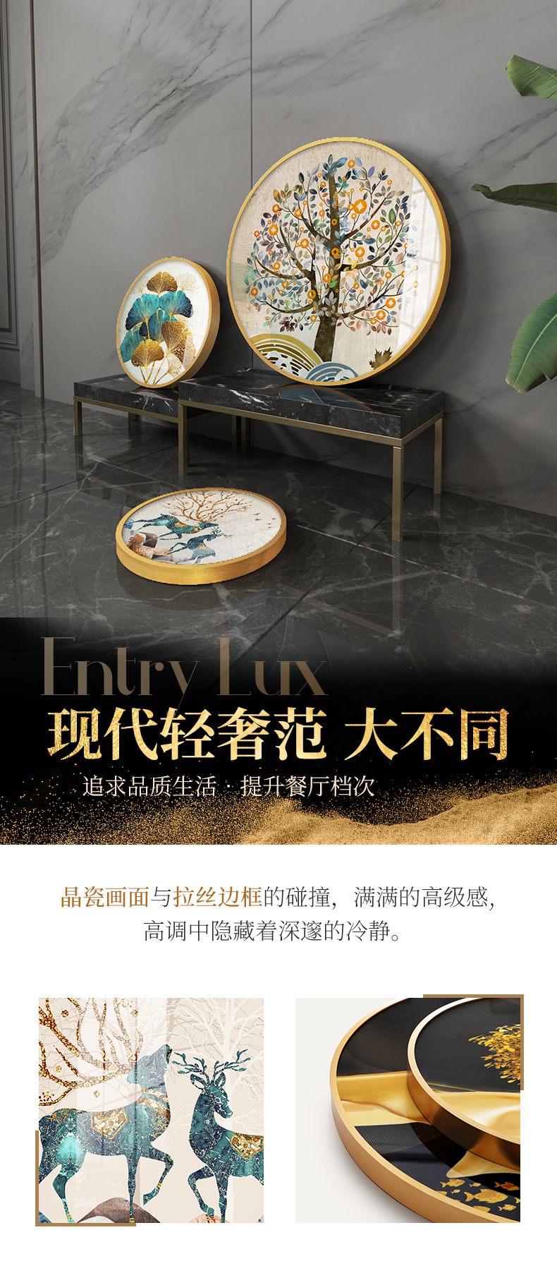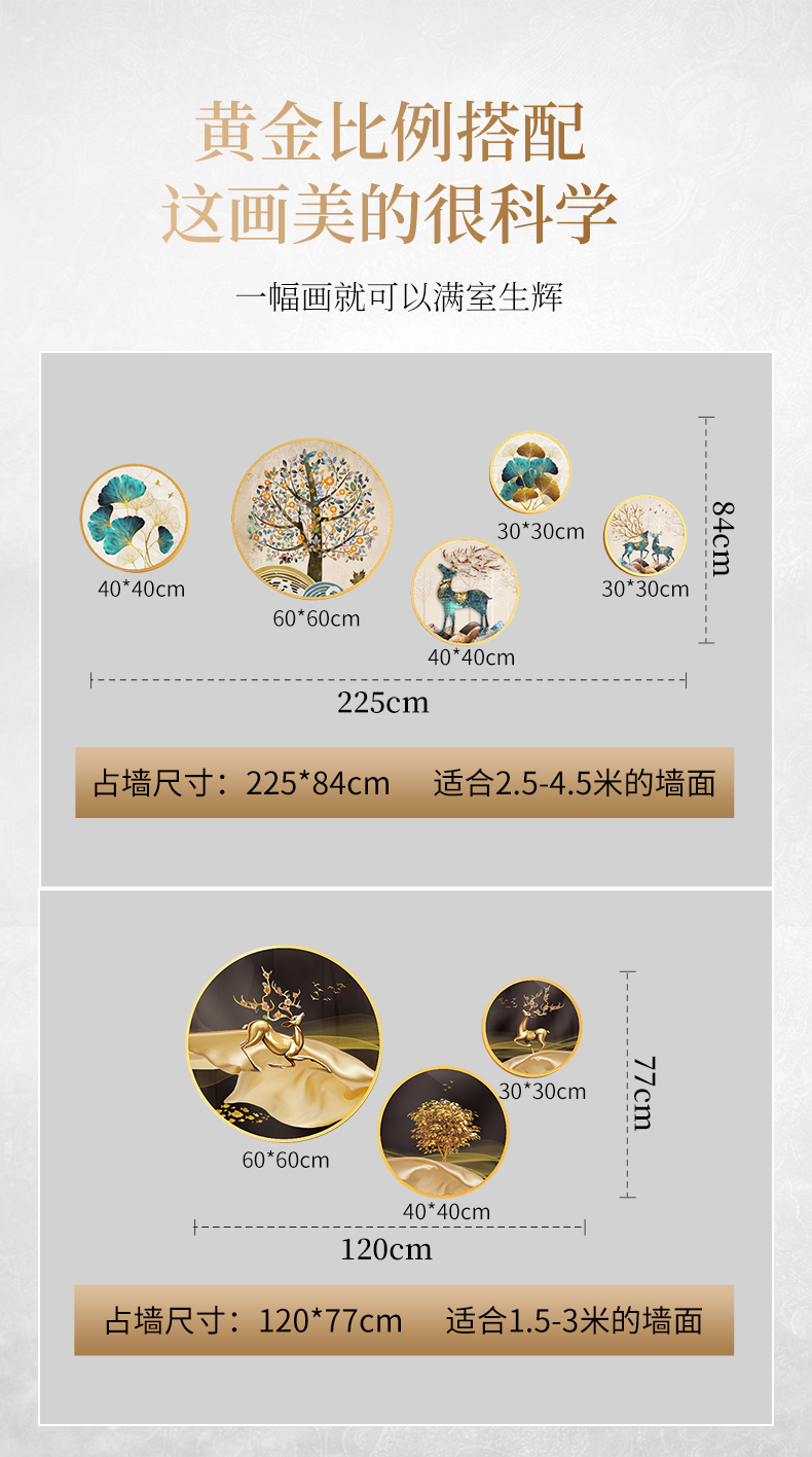 | 商品名称 | 紀恒軟らかい円形の掛け絵リビングの背景壁にソファを飾った後、壁の組み合わせの壁画レストラン歺庁の寓意の良い壁画が軽奢で現代的な「鹿」の高級な「磁画」です。 |