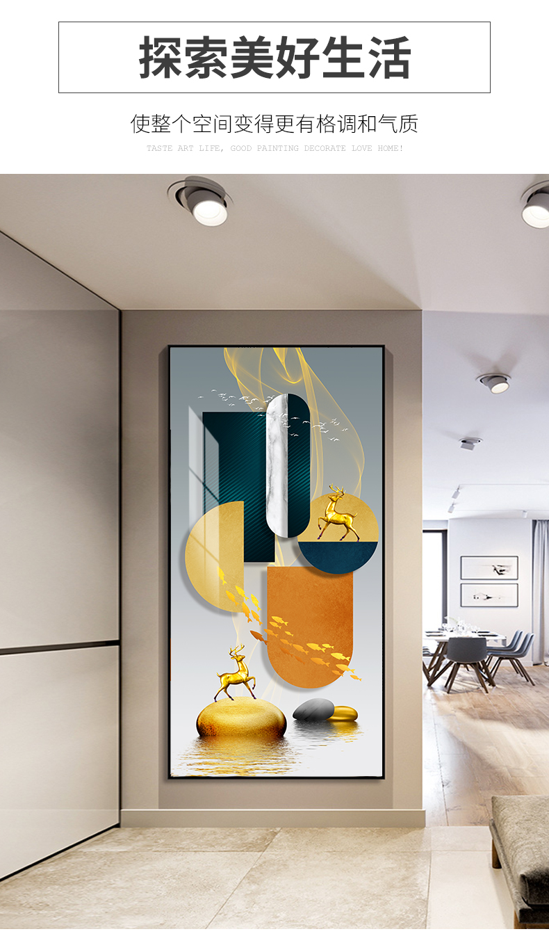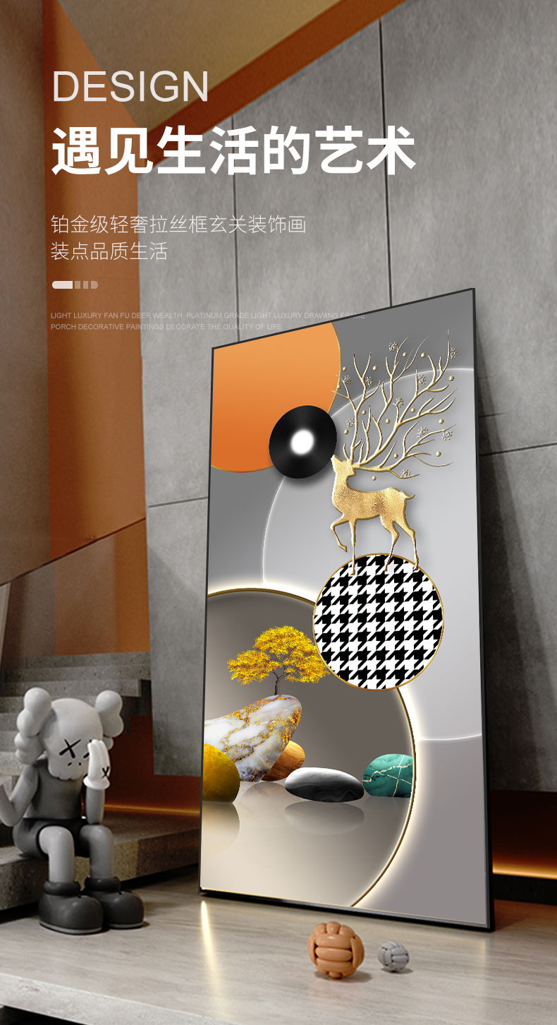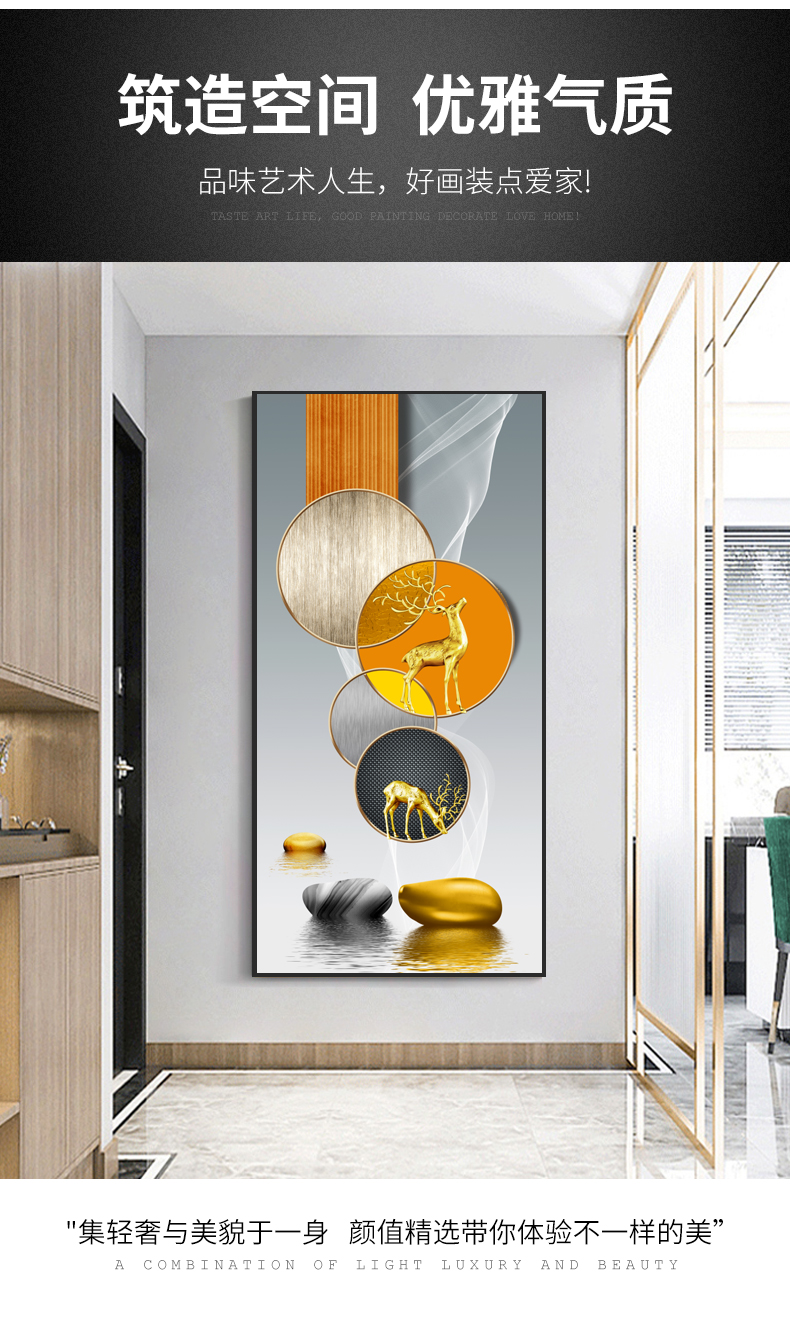 | 商品名称 | 鯨派ポティッシュ装飾画現代単纯縦型の時に来てゴアルデン石を動かします。鹿客間ホーム廊下に吊るすし絵通路壁画476-1 40*80金枠/晶磁画平面 |