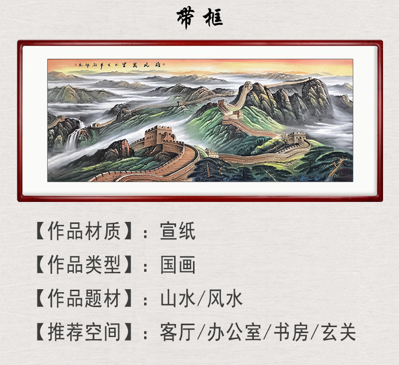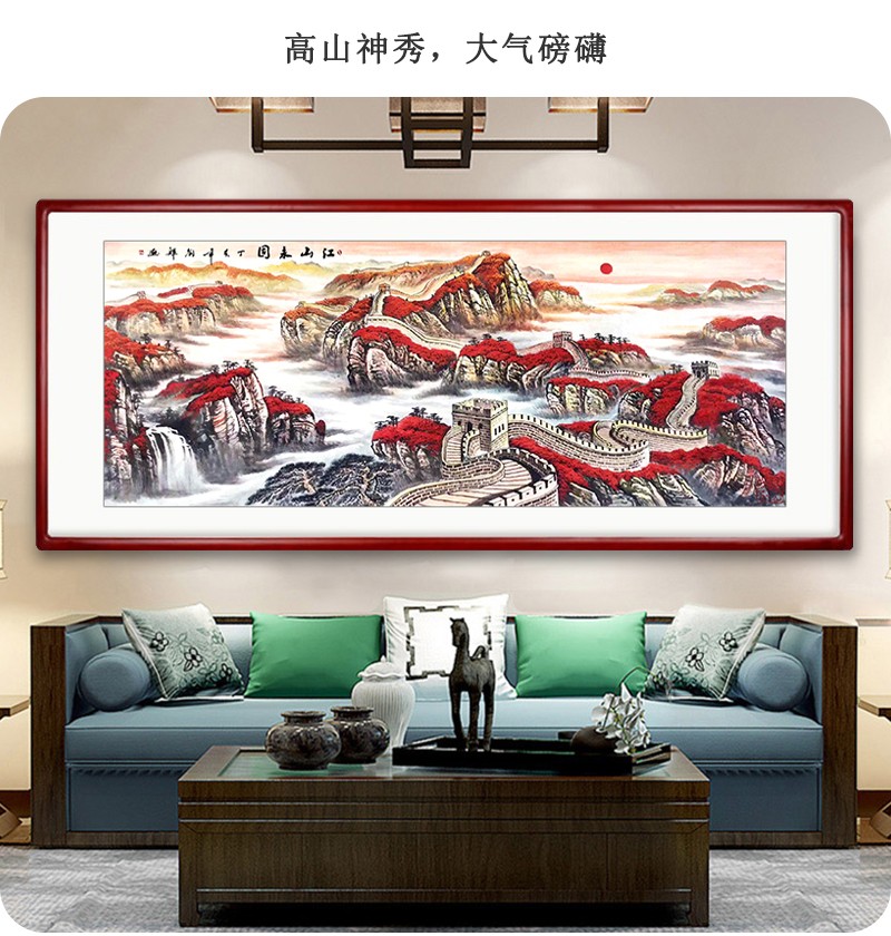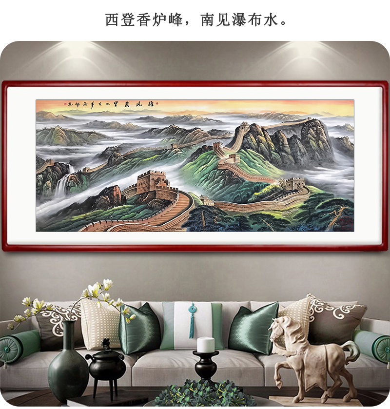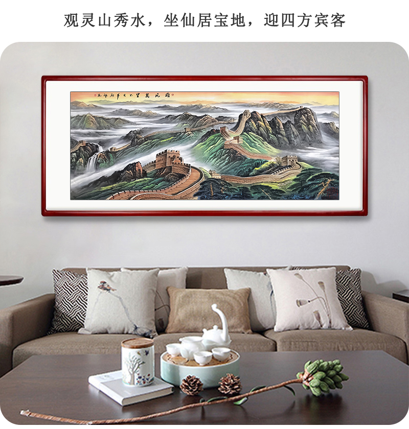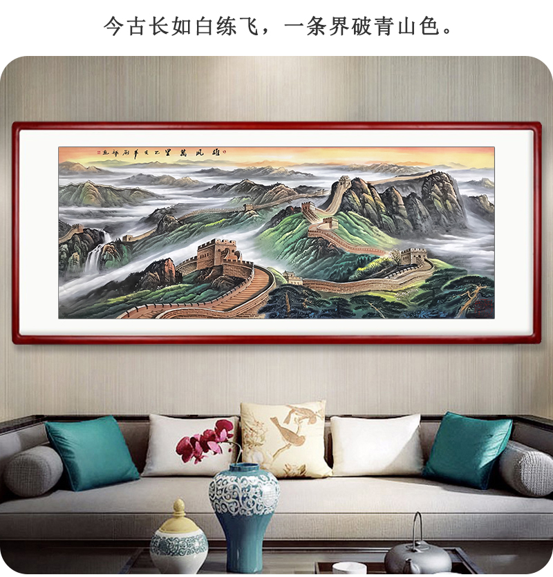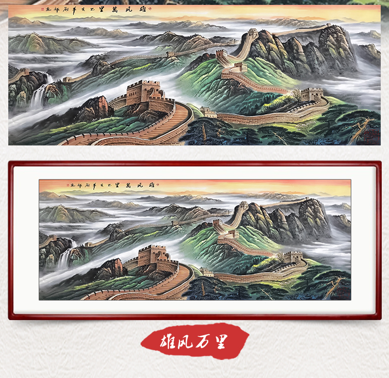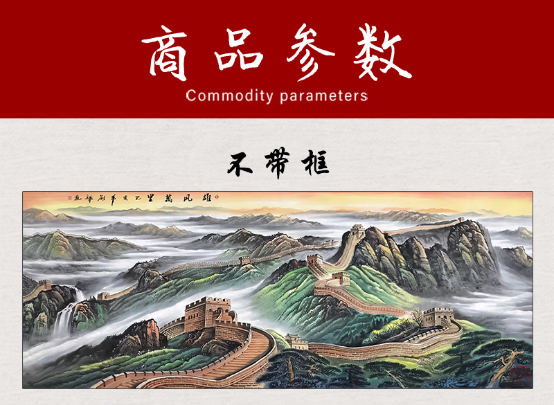 | 商品名称 | 手描き真筆原稿万里の長城の国画風景画事務室吊るすし絵新中国水墨画客間装飾画風景画の書画プレゼント風水寄山図招財帯枠雄風万里実木額縁203*83 cm |