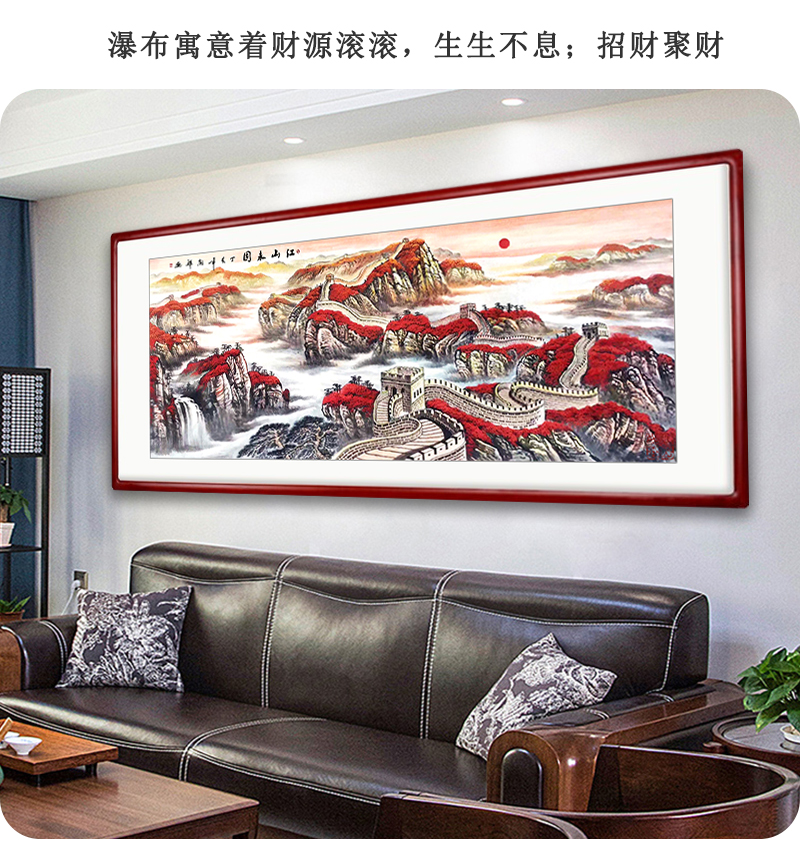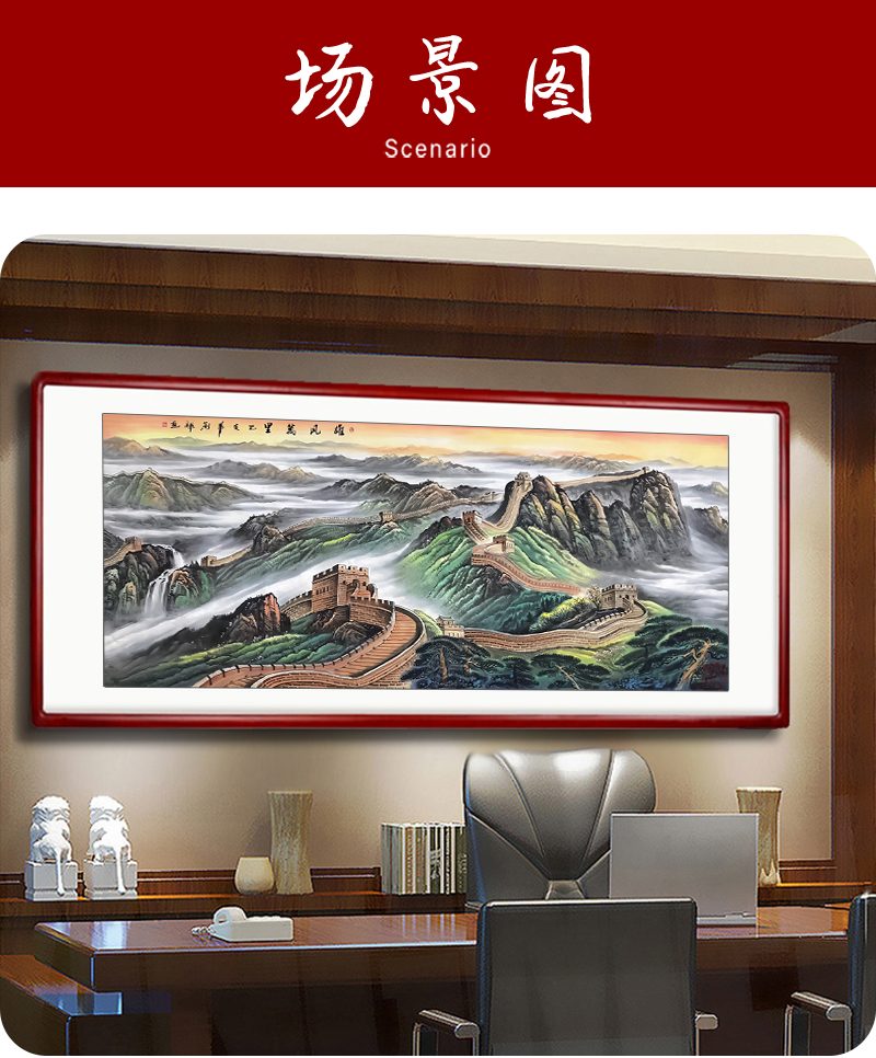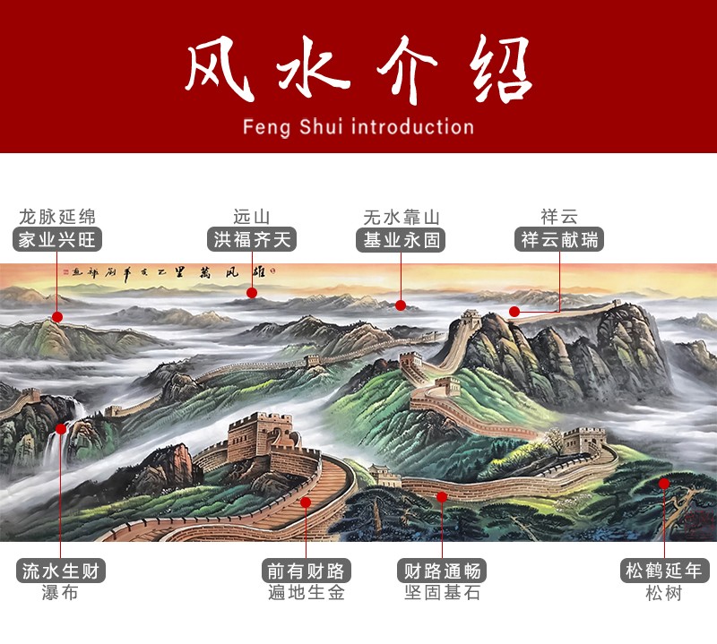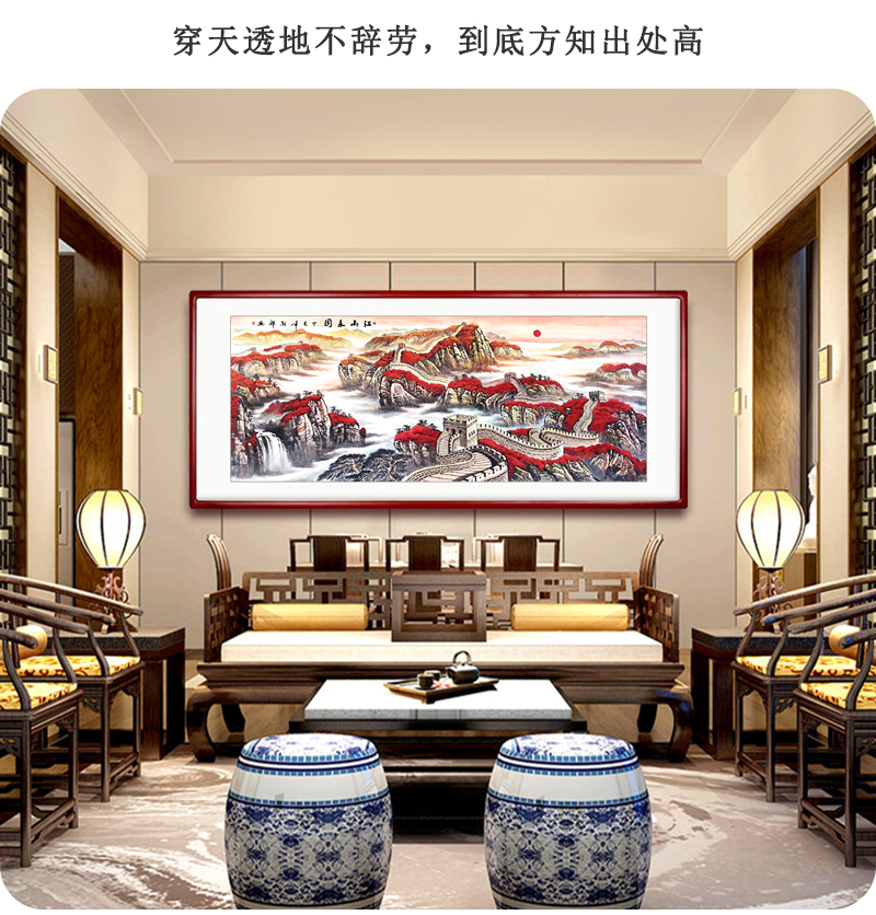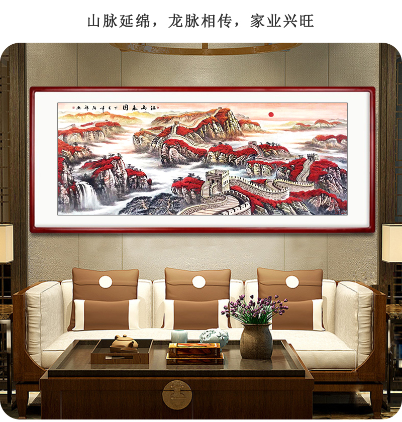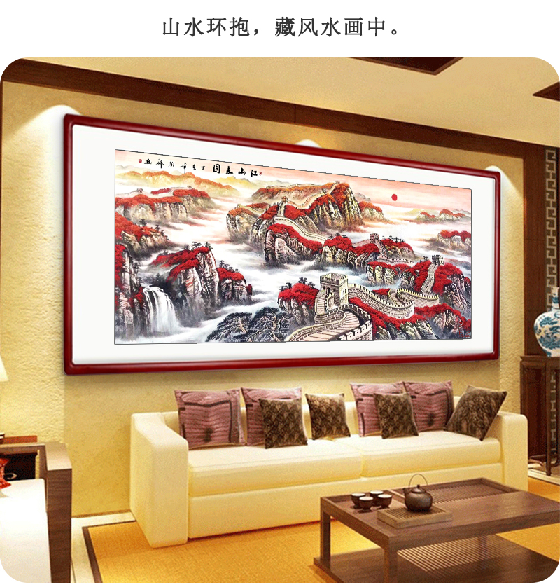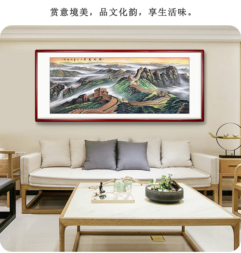 | 商品名称 | 手描き真筆原稿万里の長城の国画風景画事務室吊るすし絵新中国水墨画客間装飾画風景画の書画プレゼント風水寄山図招財帯枠雄風万里実木額縁203*83 cm |