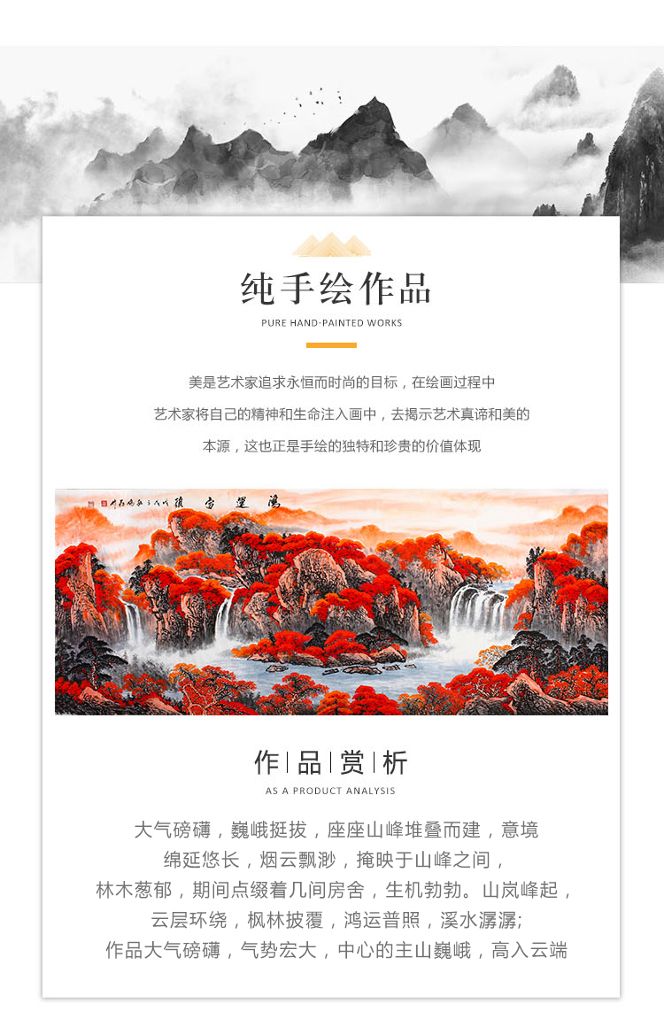 | 商品名称 | 【手描き真跡】顔堂手描き真跡国画事務室横断幕風景画鴻運当頭リビング装飾画実木装表装壁画有枠吊り下げ絵プレゼント字画すでに装表装鴻運当頭実木画枠+有機ガラス215*85 cm |