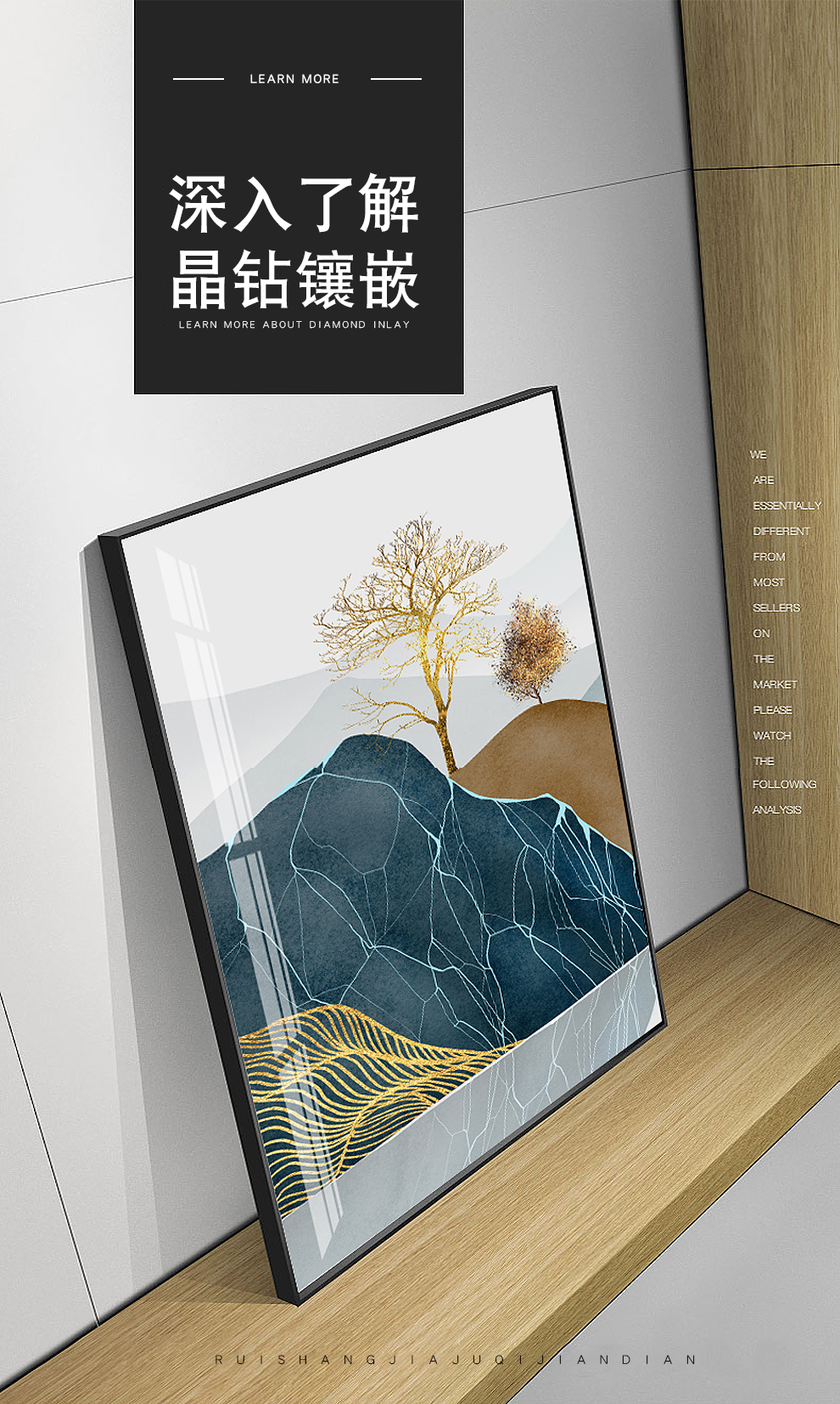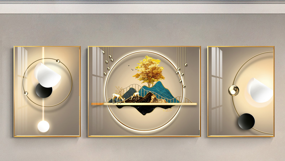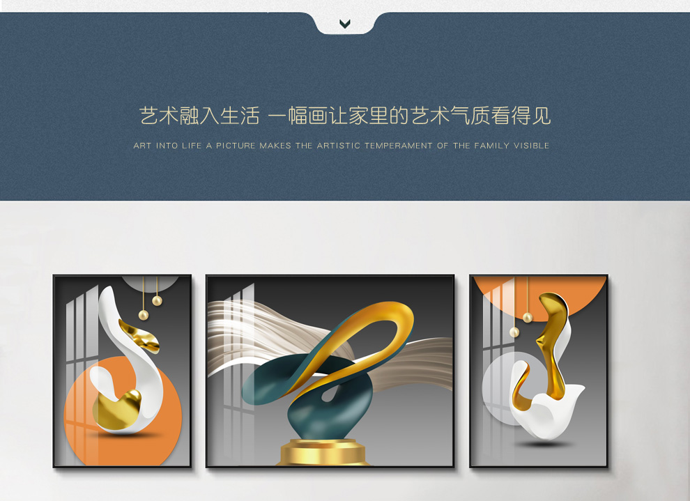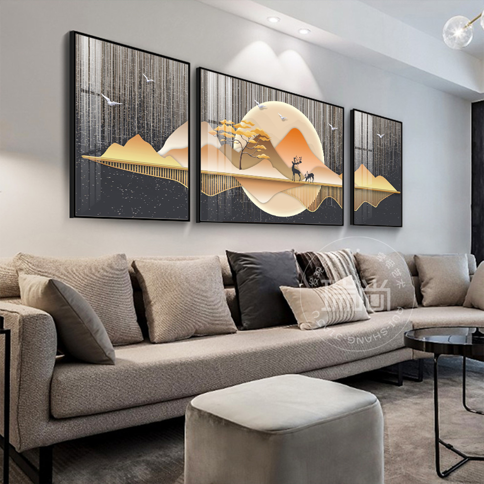 | 商品名称 | 瑞尚軽奢客间装飾画大気抽象ソファ背景壁吊り下げ絵現代単純ハイエンド別荘三連画抽象空間A中套(左右50*70+中間100*70)結晶磁器画黒枠 |