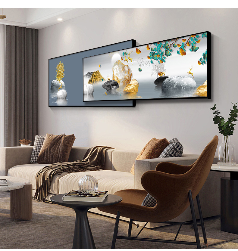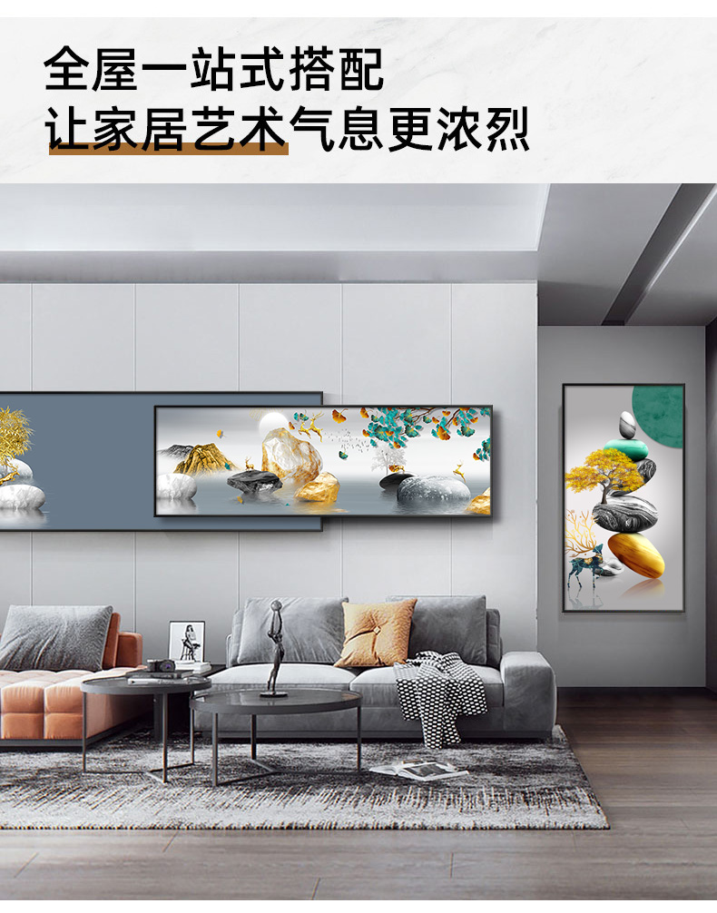 | 商品名称 | 放庁座敷装饰画现代单纯ソファー背景画新中式时来运転双层重叠晶瓷画新居主卧室床頭吊げ絵创造性礼物送朋友石来生才-001号画芯/黑色铝合金框40*100大+30*100小=総长150/晶瓷画 |