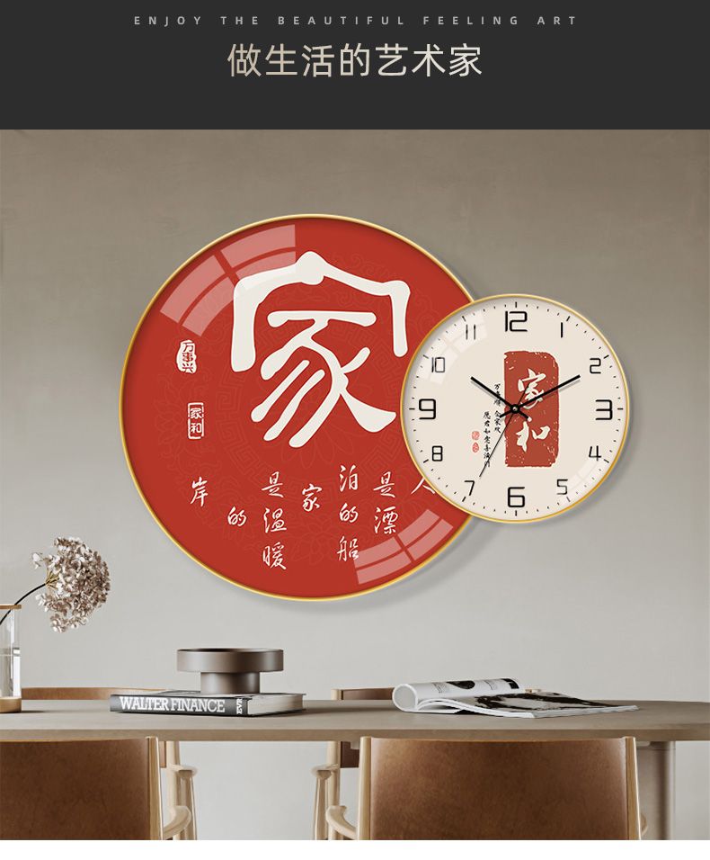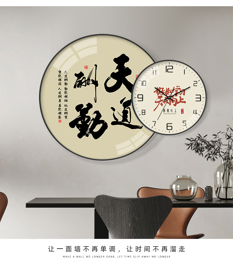 深墨香莱斯特兰装饰画重叠时计吊吊,画书房办公室ダイニングルーム时计个性创造性励志天道酬勤新中式莱斯特兰画轻奢壁壁画BE 207【百福平安】阿米尼乌姆合金拳克斯包辺典雅黒色(直径30时计+50画)占壁70*50 cm