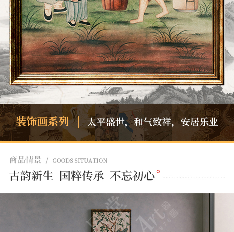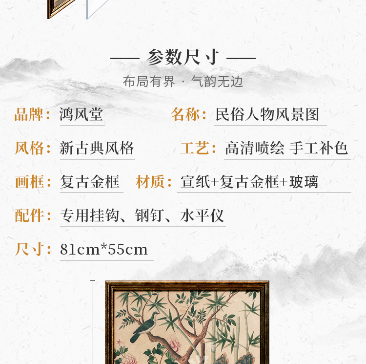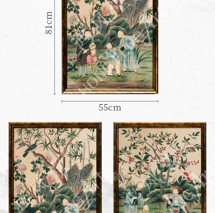 | 商品名称 | 鴻風堂仿古吊るし画リビング装飾画レストランポチ書斎新中式民俗人物風景図A組 |