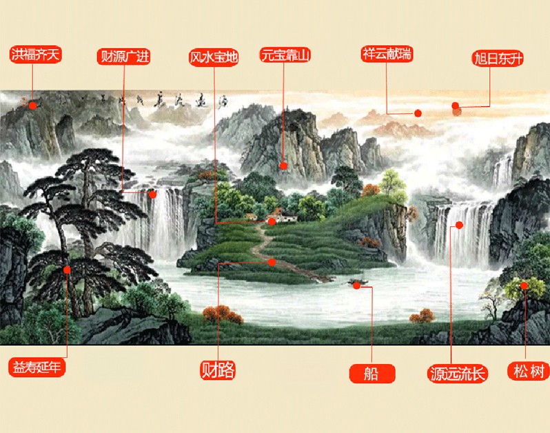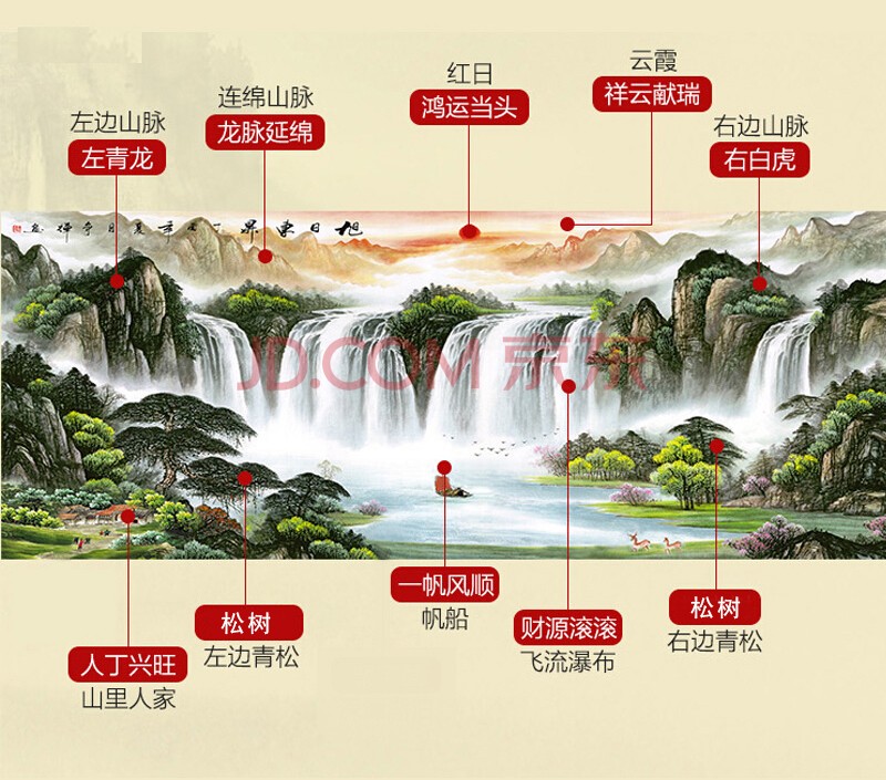 | 商品名称 | 風景画リビング装飾画事務室吊り下げ絵招財旭日東昇国画聚宝盆風水靠山図ソファ背景壁鴻運当頭壁画中式招財有枠水墨画a款旭日東昇83*163 cm(2.5 m左右壁面に適合) |