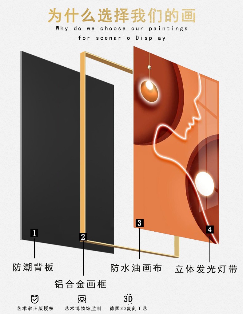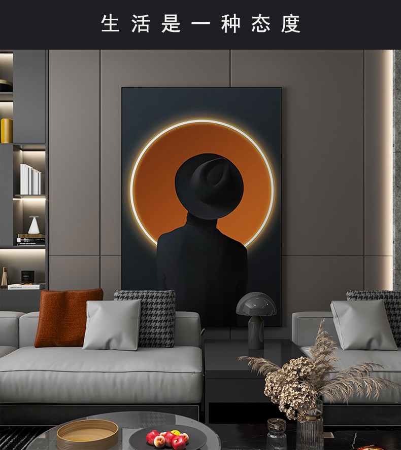 乾仁康客间装饰画现代轻奢波奇吊下絵北欧LED灯発光人物壁画静默F 50*80 cm(LED灯画+直挿+知能リモコン)【图价格ブランド报价】-