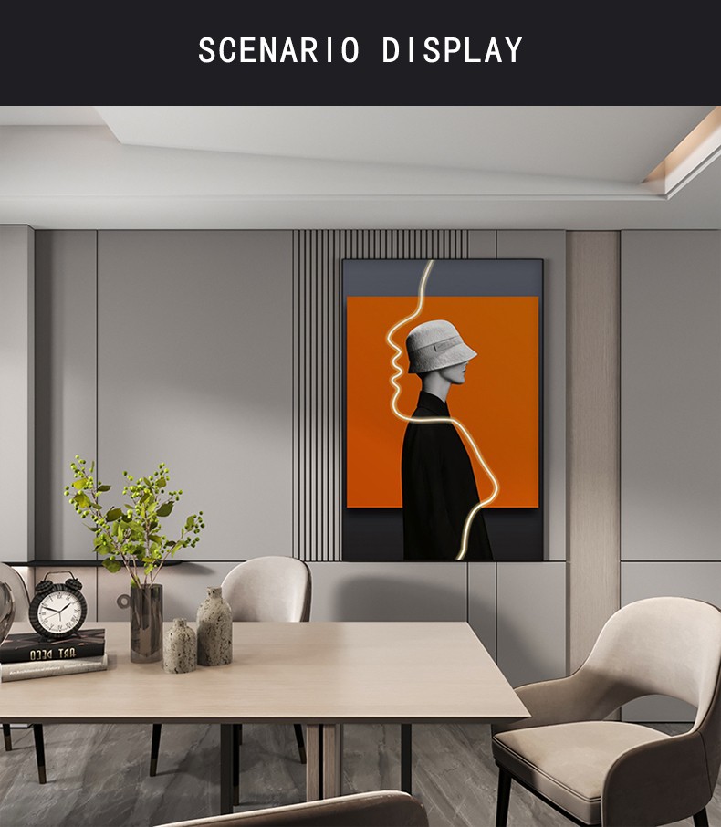 乾仁康客間装飾画現代軽奢波奇吊り上げ絵北欧LED灯発光人物壁画静黙F 50*80 cm(LED灯画+直挿+知能リモコン)