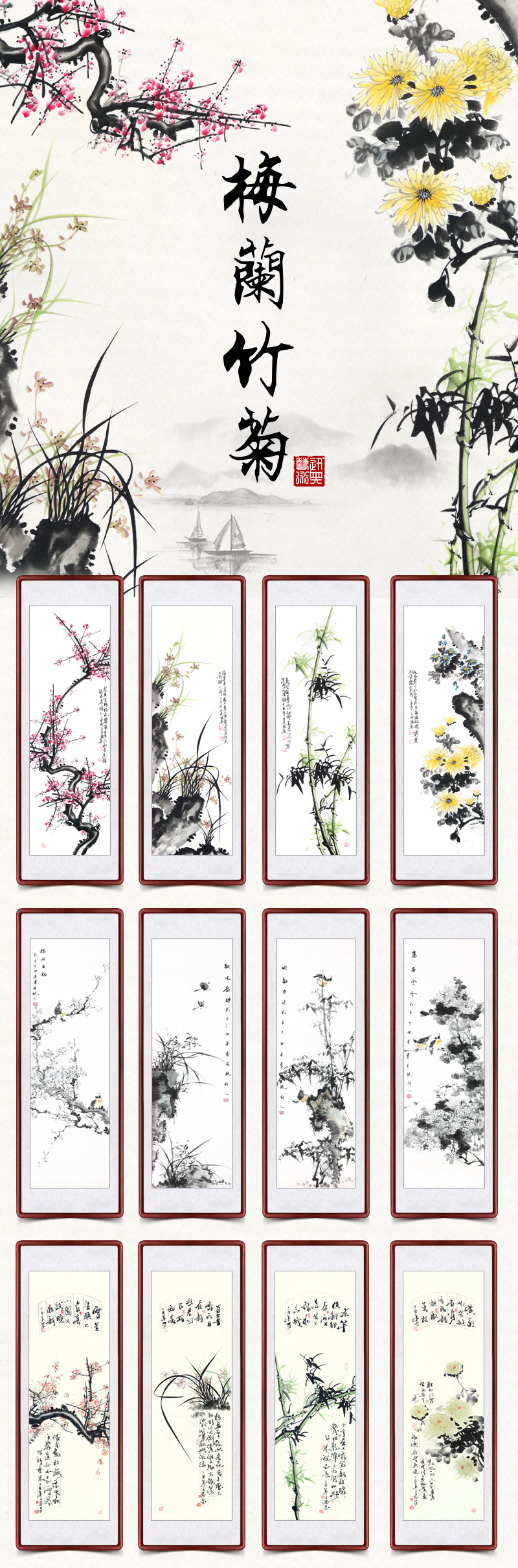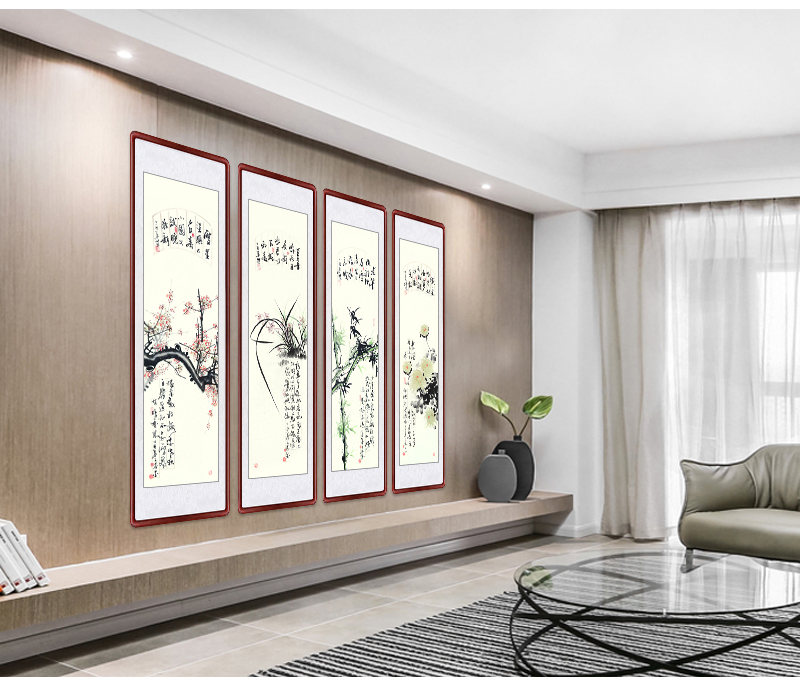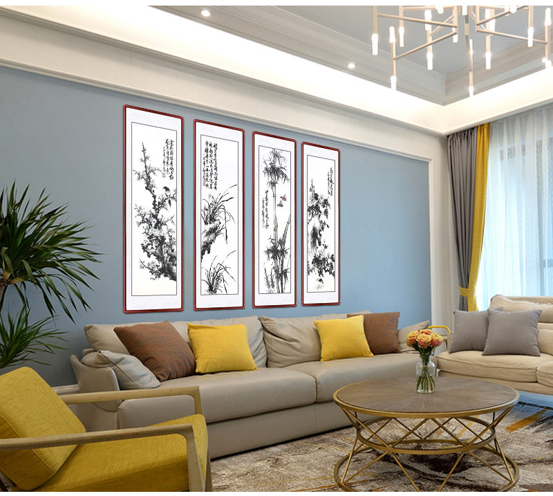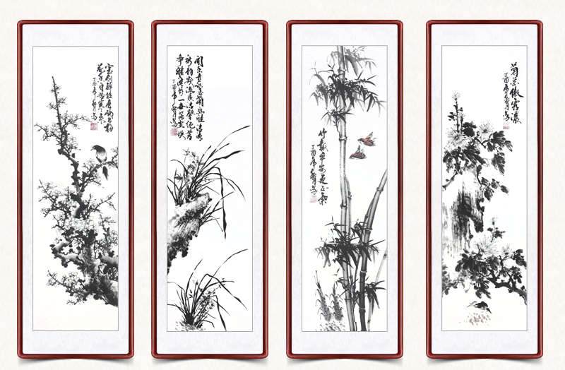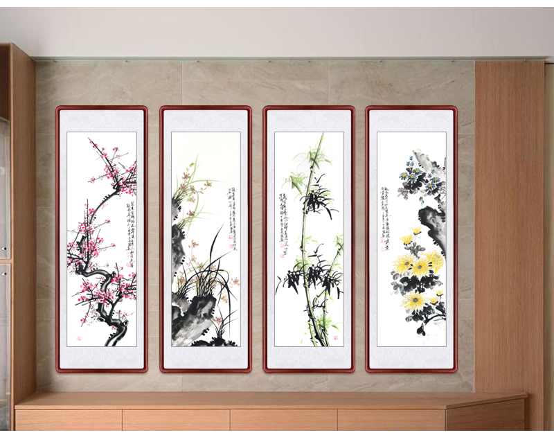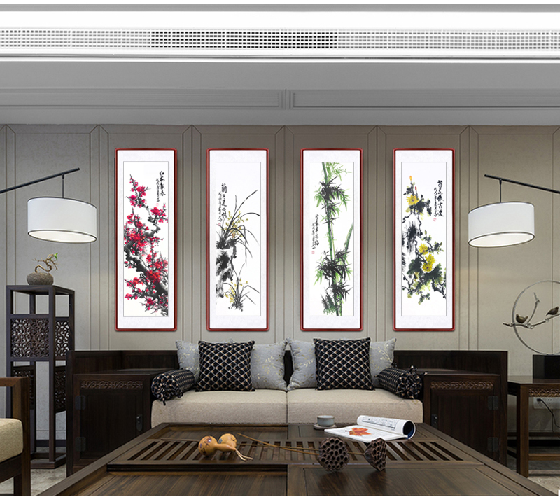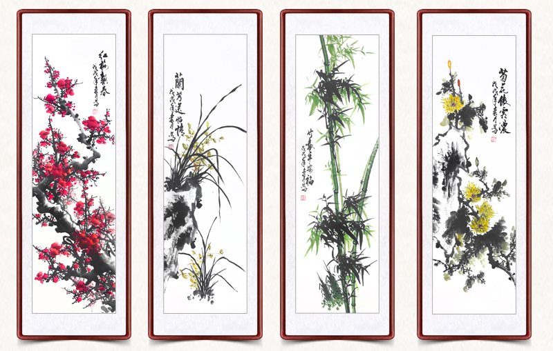 | 商品名称 | 迅典座敷装饰画梅兰竹菊吊るし絵四条屏国画ソファ背景壁菊花竹梅四连幅纯手绘真迹ソファ背景壁字画风景壁画壁画梅兰竹菊【D款】実木镜枠135*45 cm |