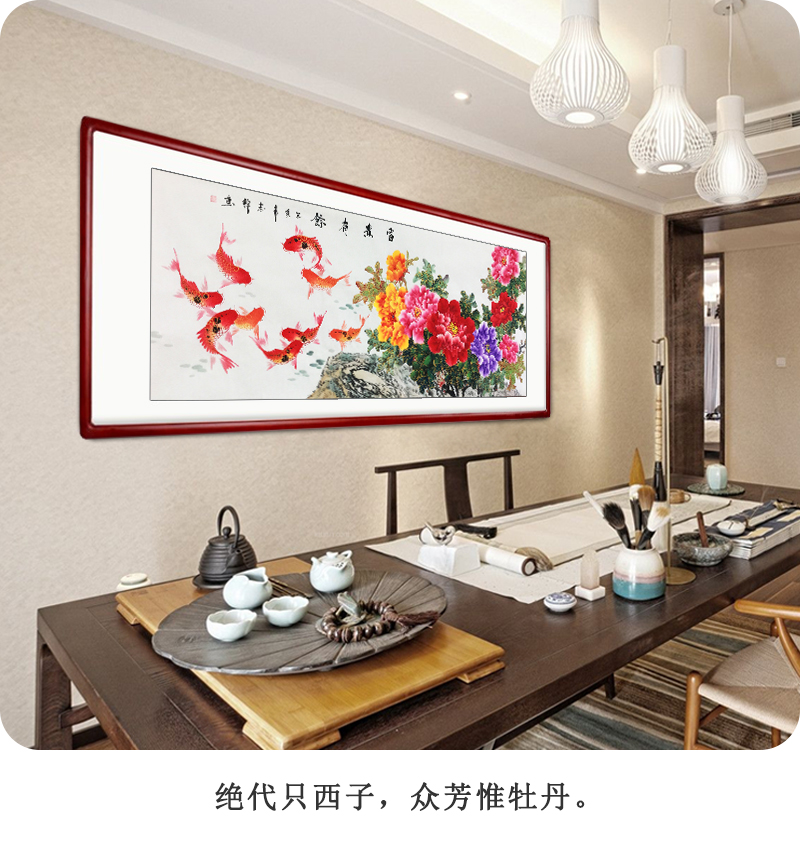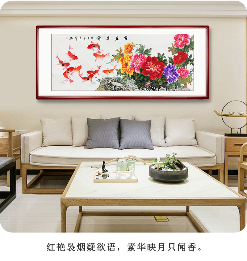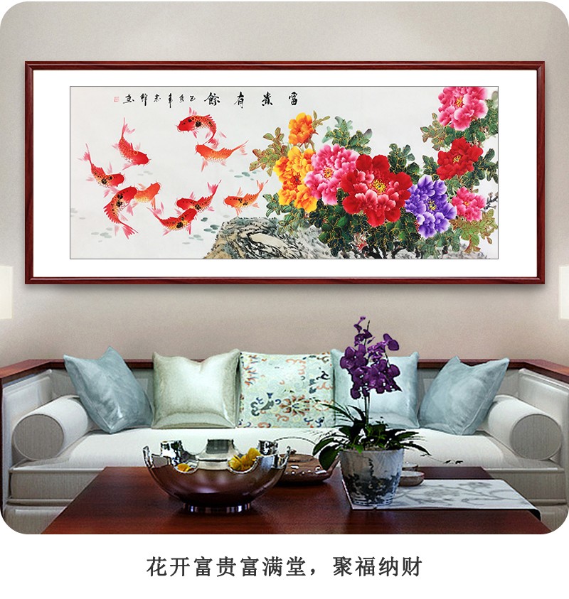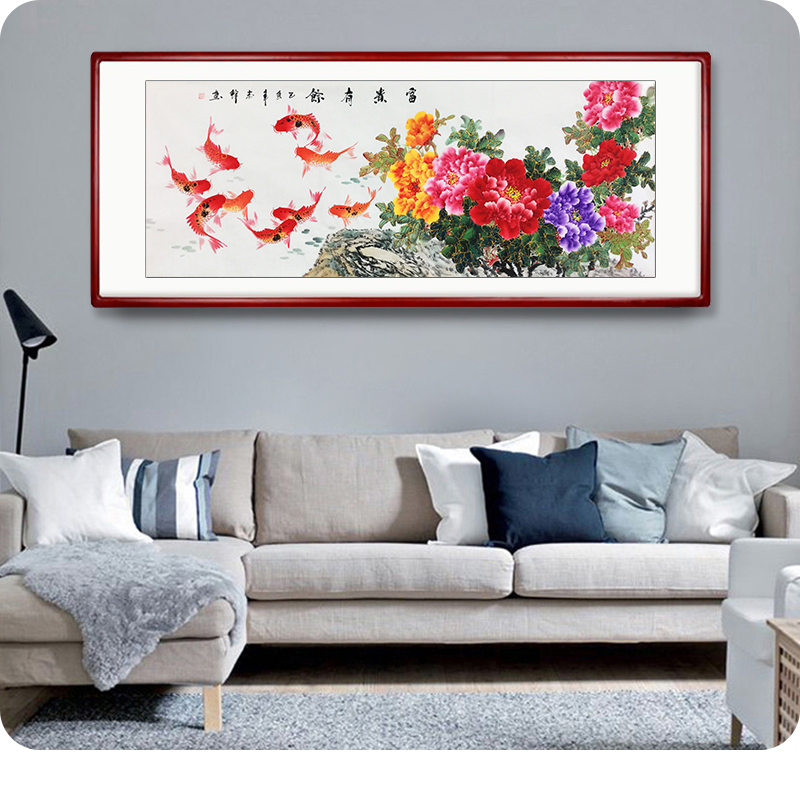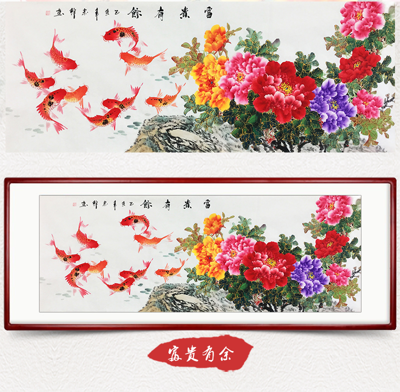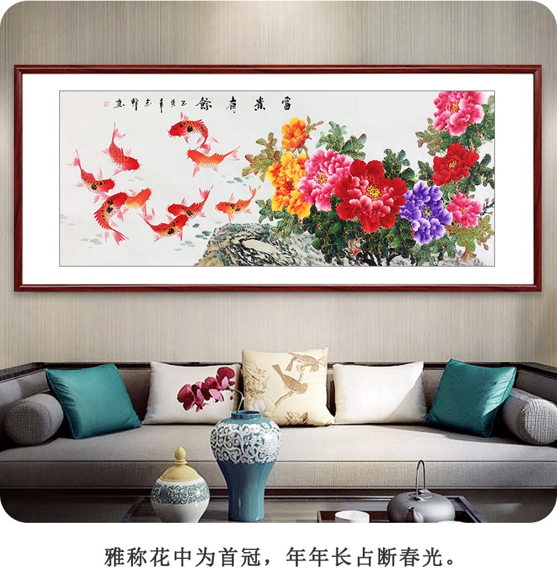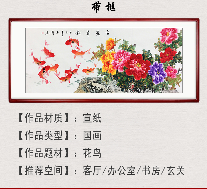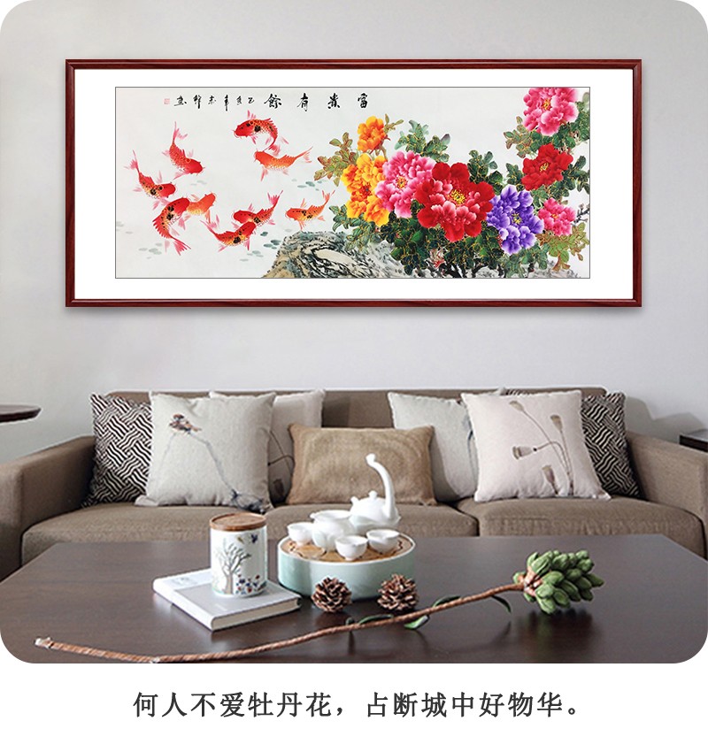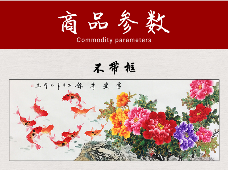 | 商品名称 | 悠弦国画牡丹纯手绘花开富贵风水招财吊挂け絵リビング装饰画吉祥壁画真迹字画ソファ背景壁画水墨画中式招财九鱼图富贵有余角红木色実木画枠275*120センチメートル加画膜 |